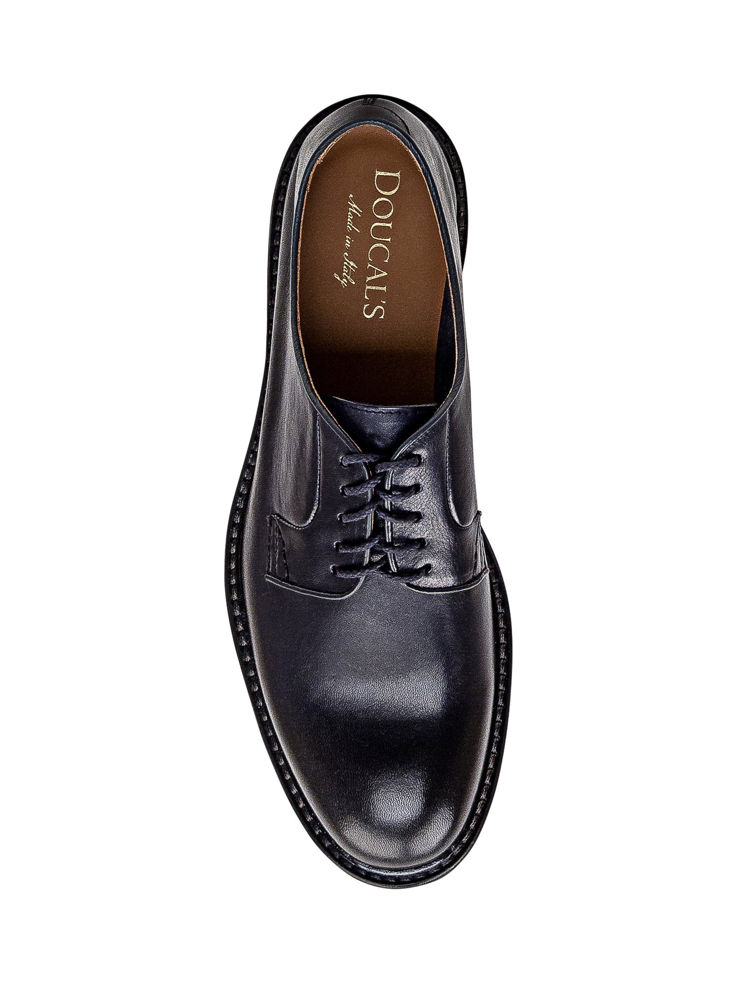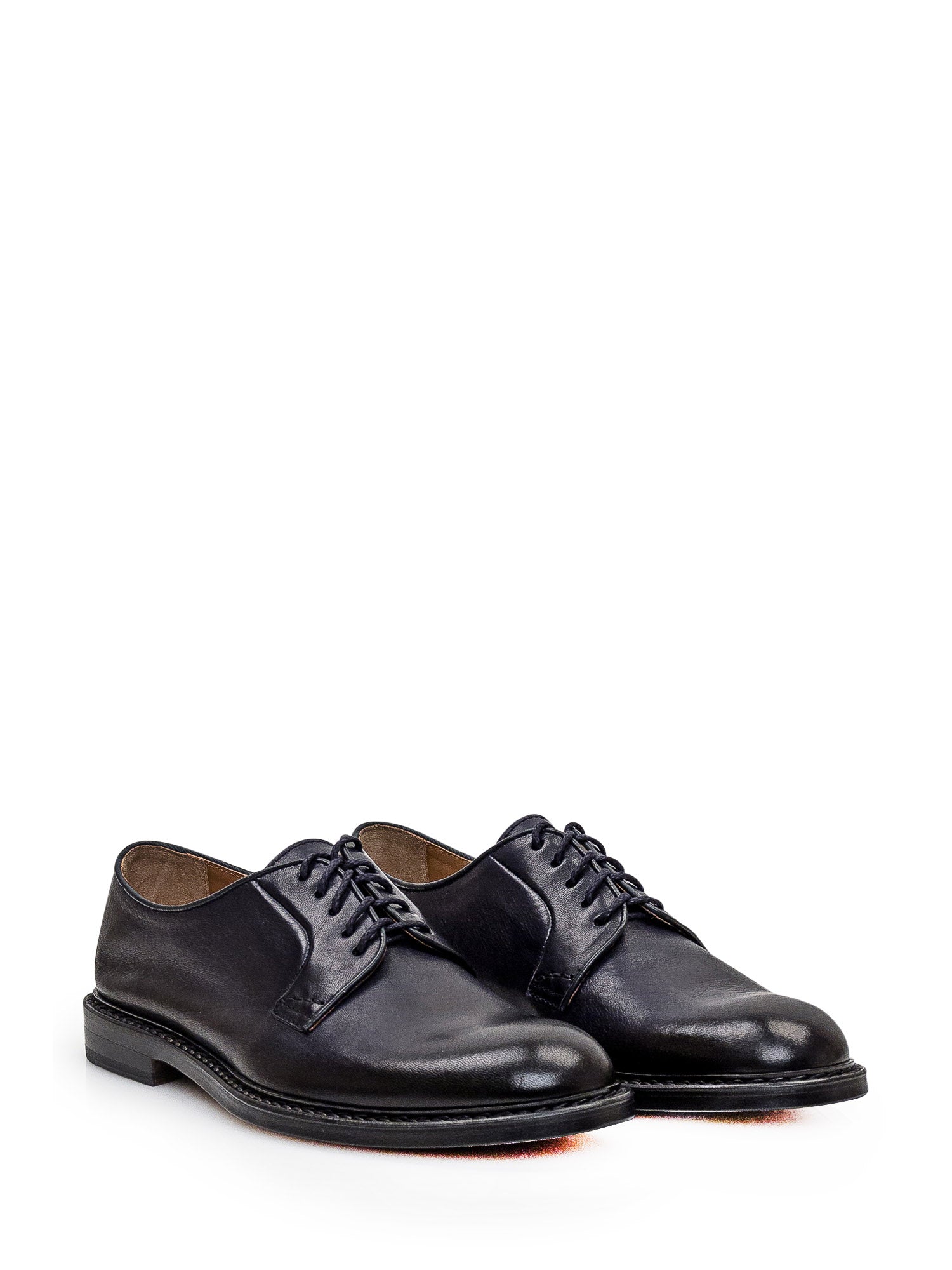 Stringata blu in pelle. Chiusura con lacci. Logo dorato sulla suola interna.
