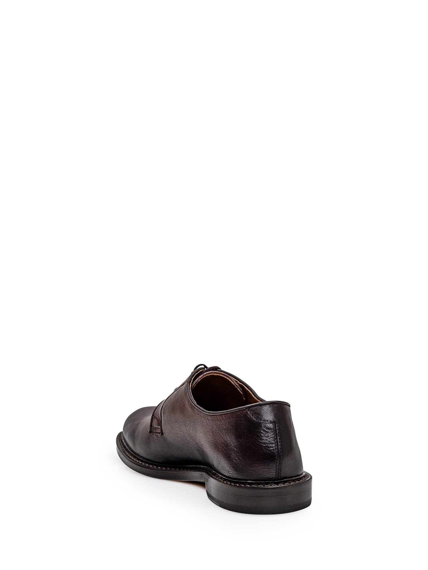Stringata marrone in pelle. Chiusura con lacci. Suola interna con logo dorato.