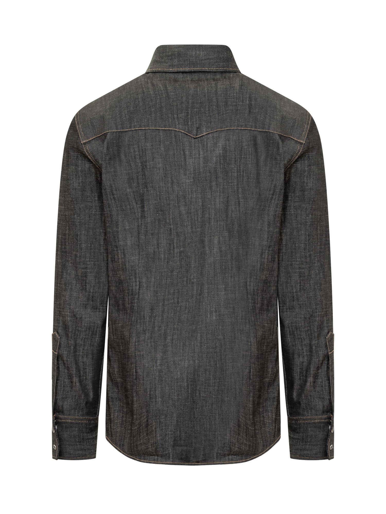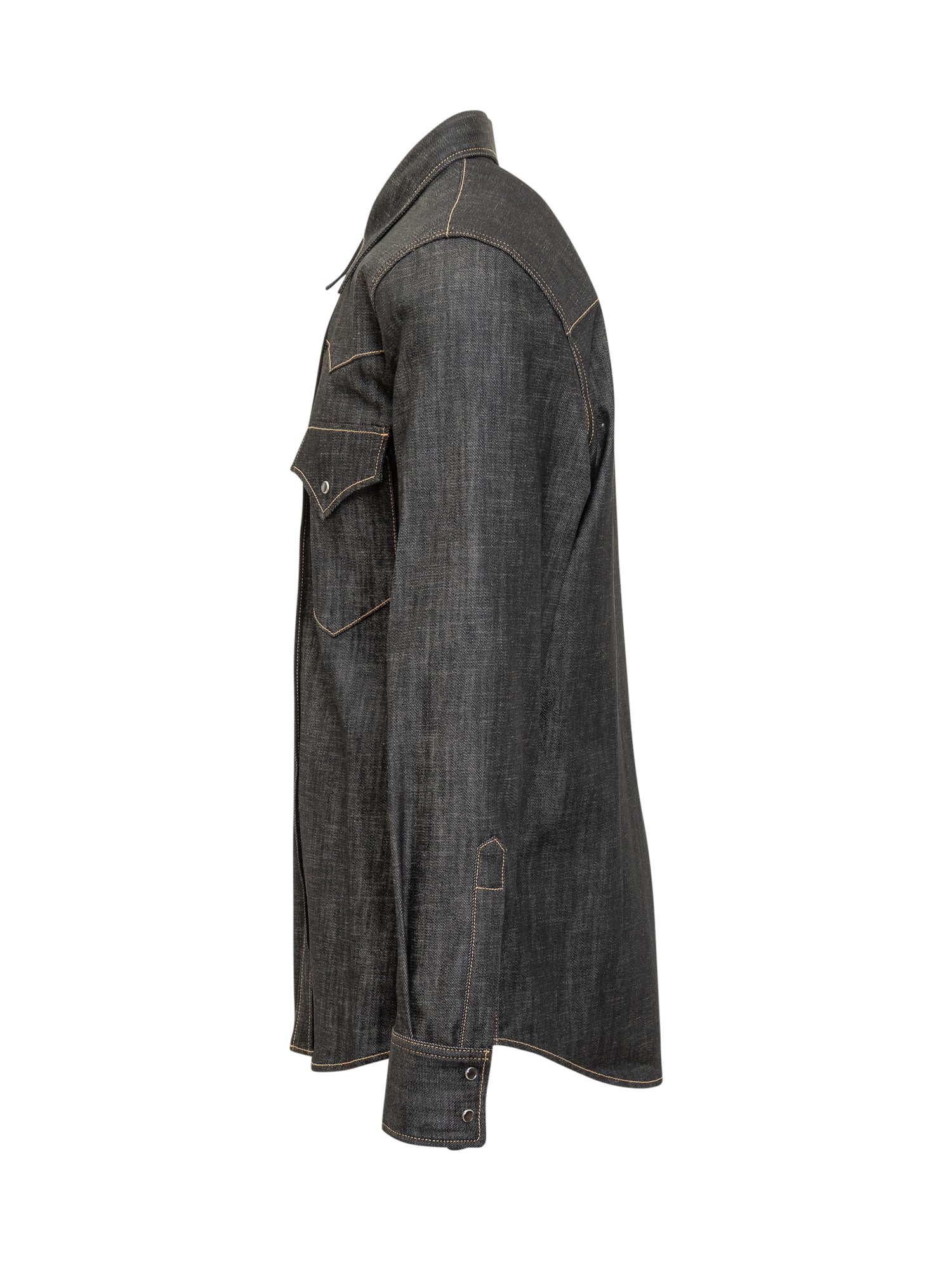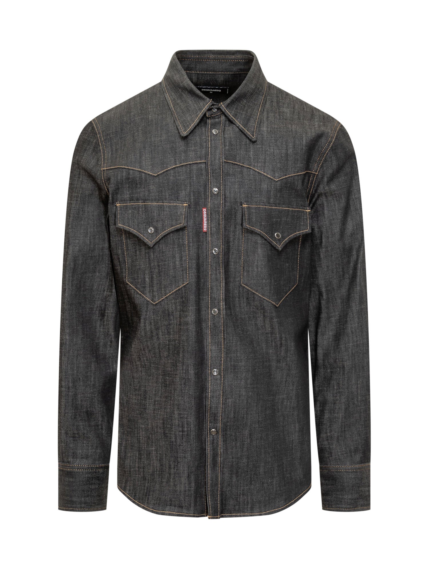 Camicia western Dsquared2 in denim scuro con cuciture a contrasto. Due tasche con patta e bottoni a pressione.