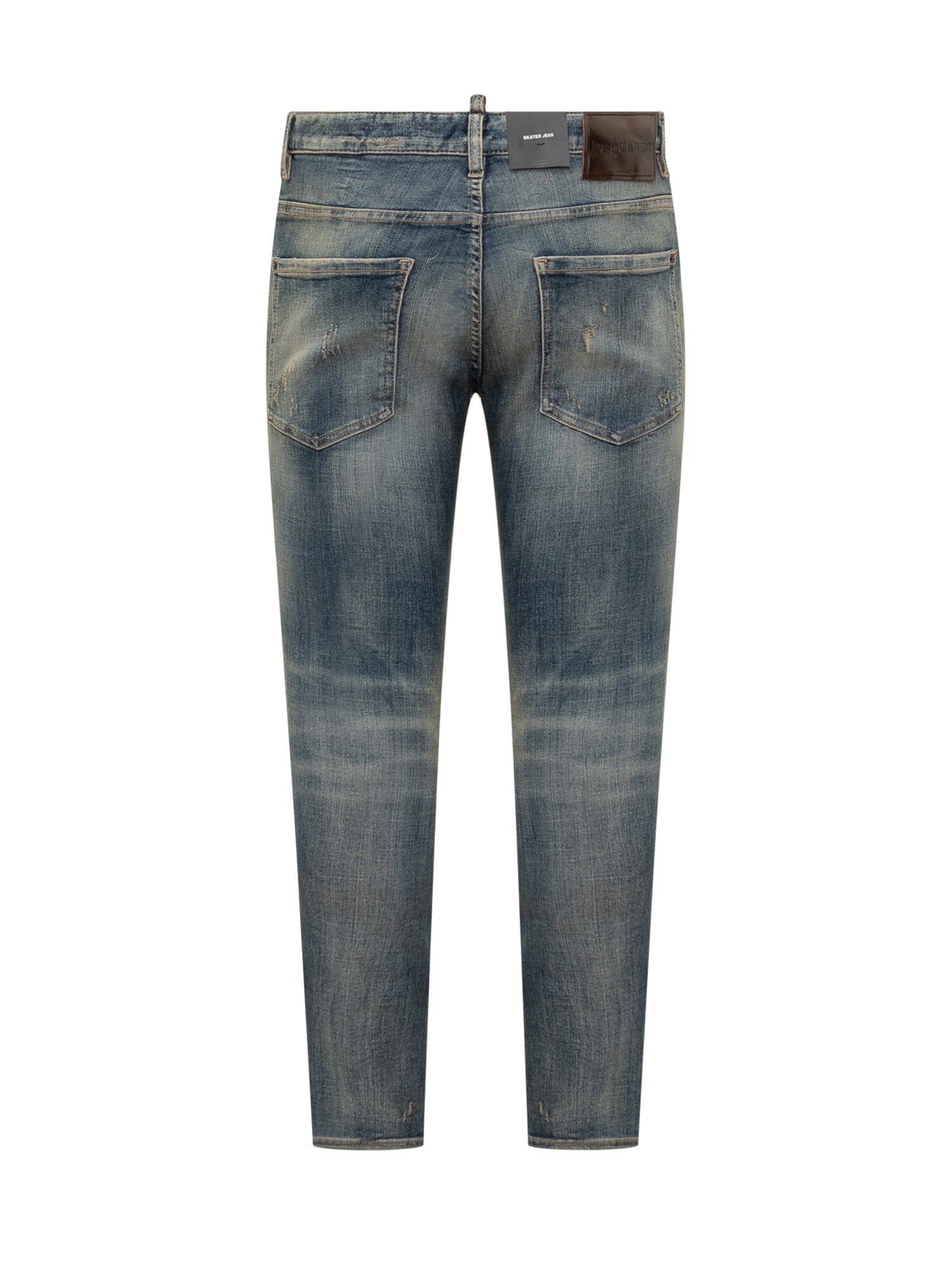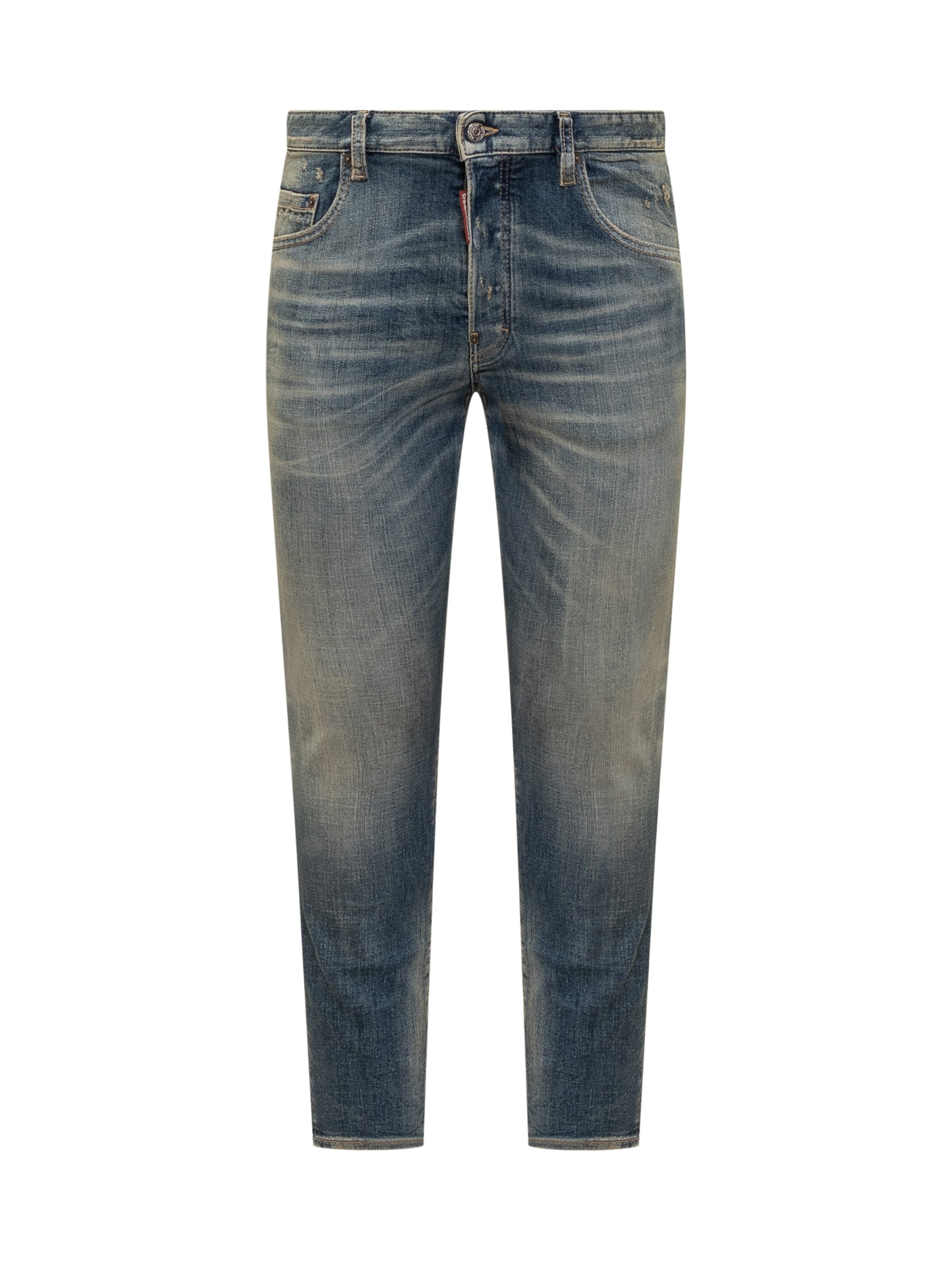 Jeans Dsquared2 slim fit in denim blu con effetto delavato e dettagli vissuti.