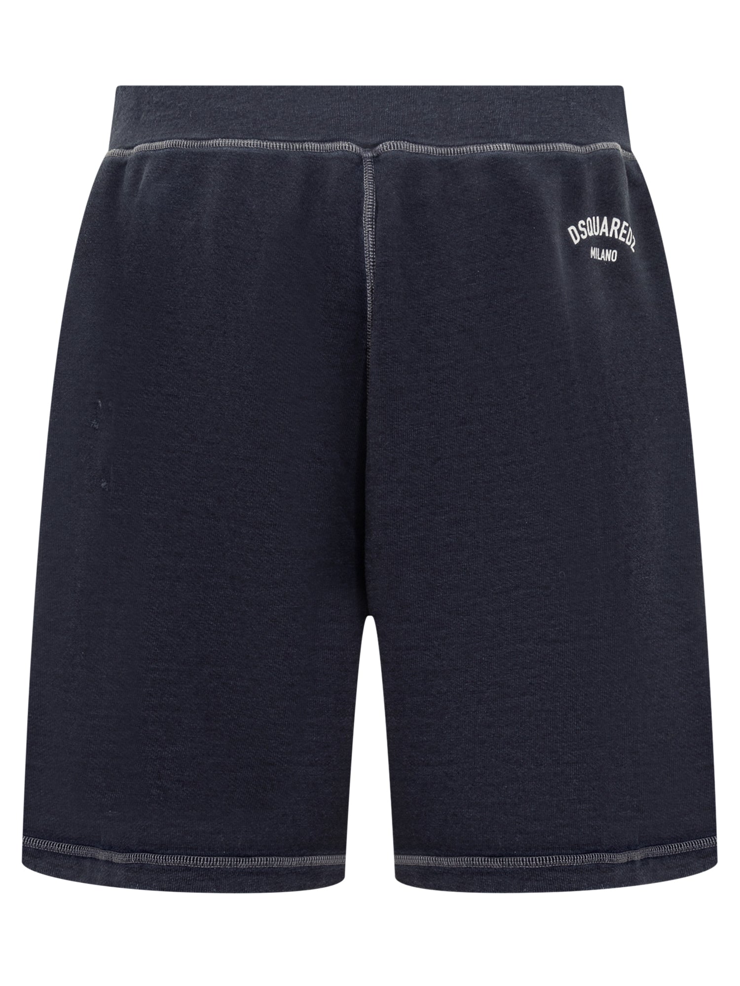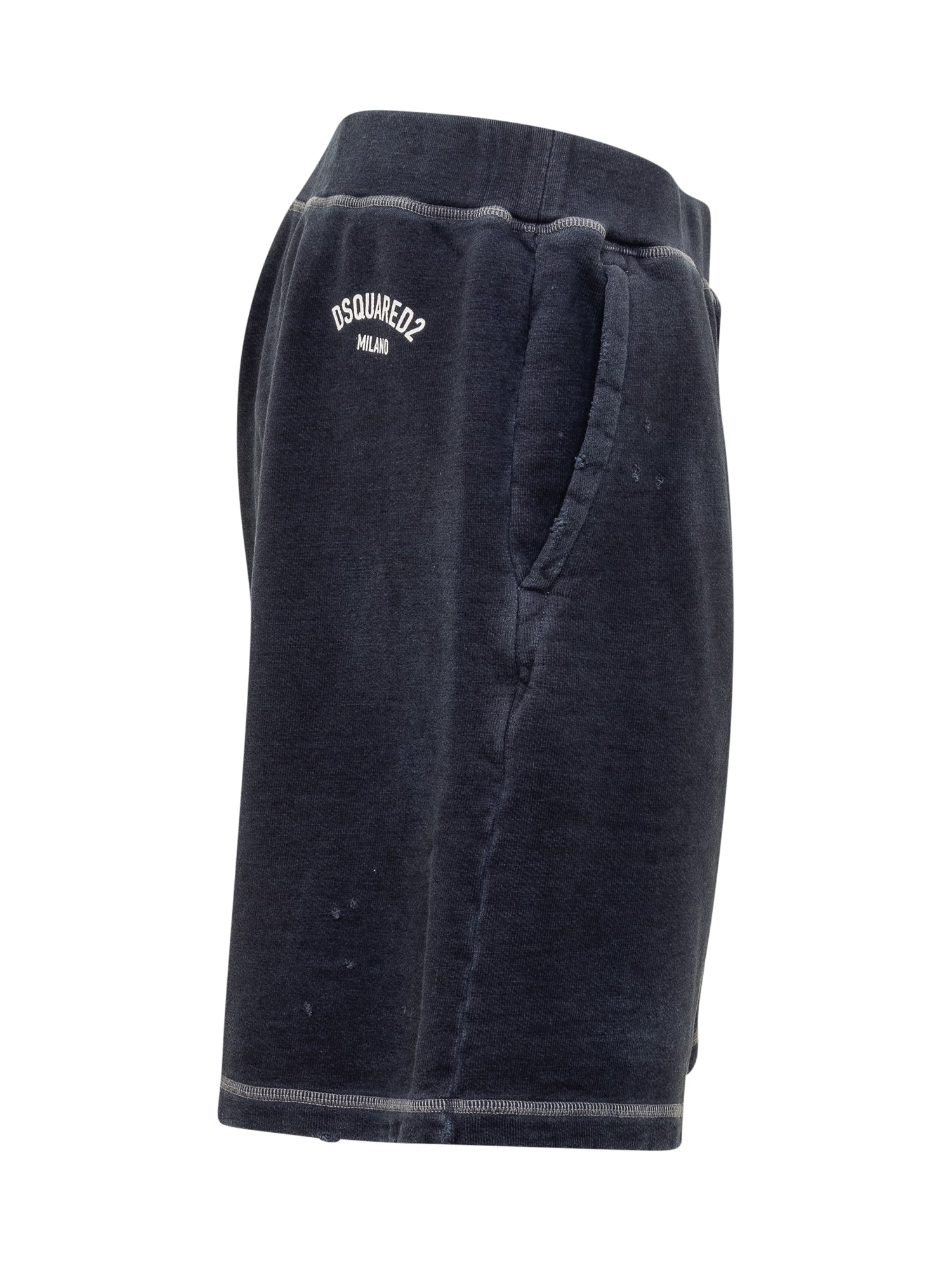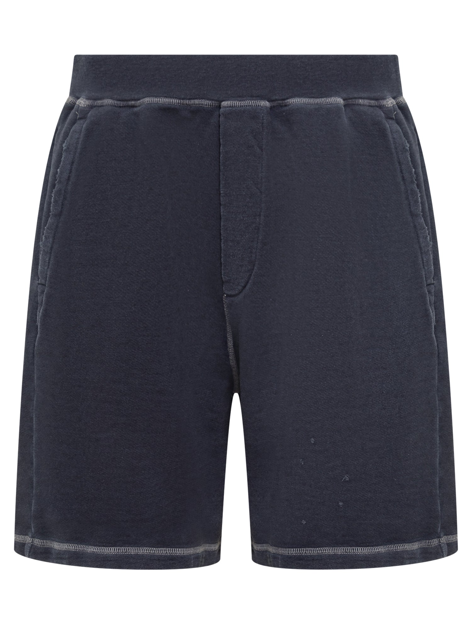 Shorts in cotone. Vita elasticizzata. Due tasche laterali. Logo stampato sul retro. Effetto rovinato all-over.
