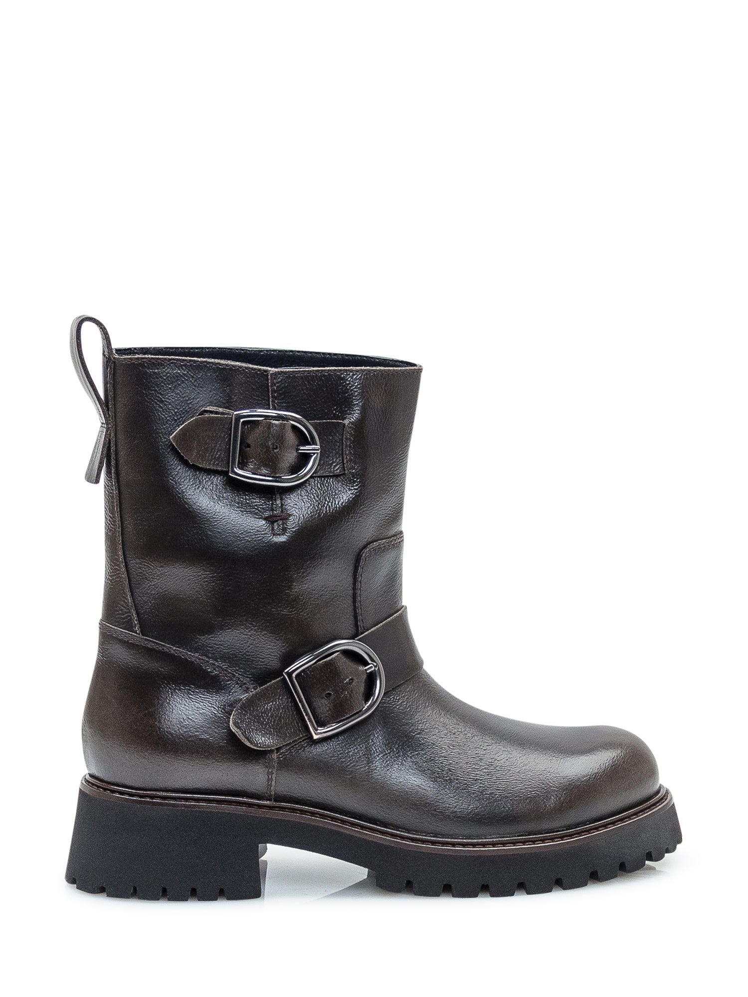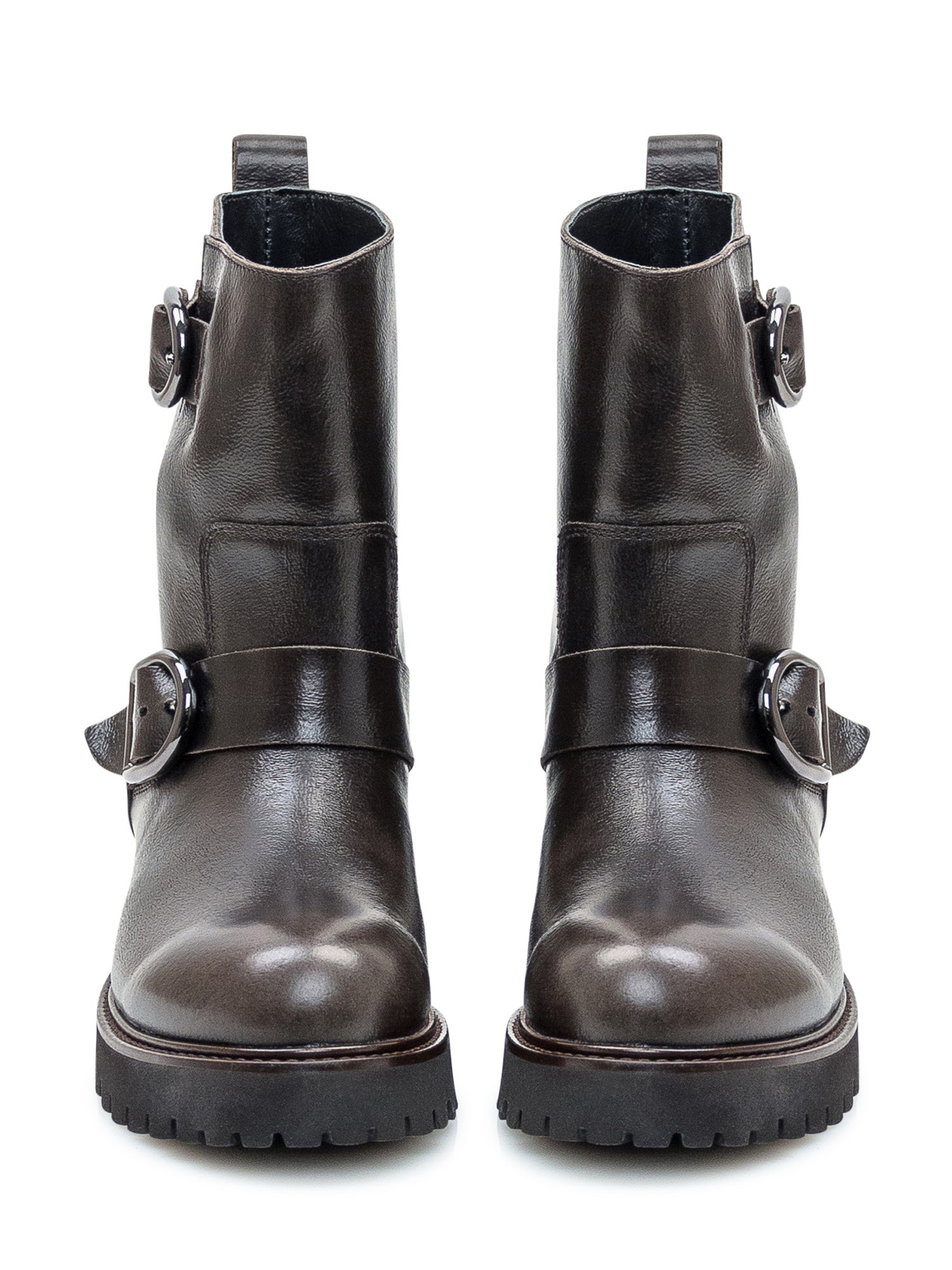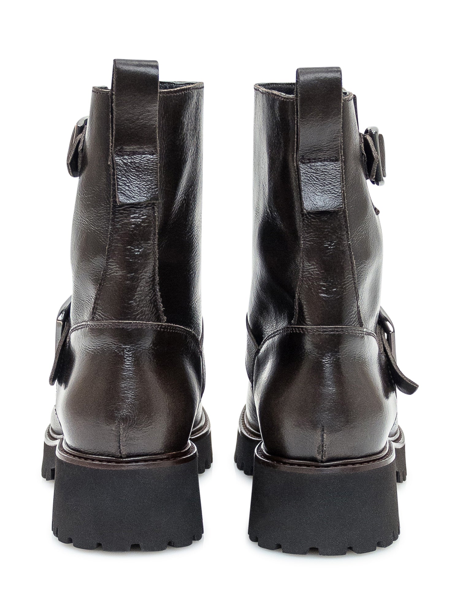 Biker boots Duca Nero in pelle marrone scuro con doppia fibbia regolabile e suola carrarmato.