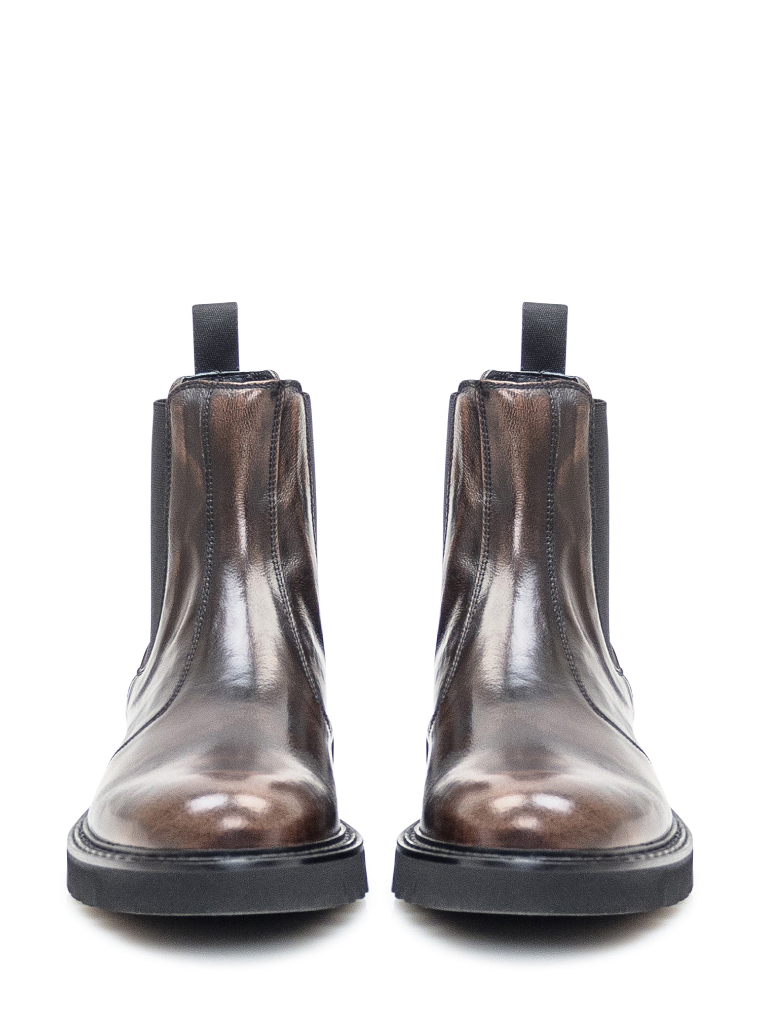 Chelsea boots Duca Nero in pelle marrone lucida, con inserti elastici laterali e suola carrarmato.