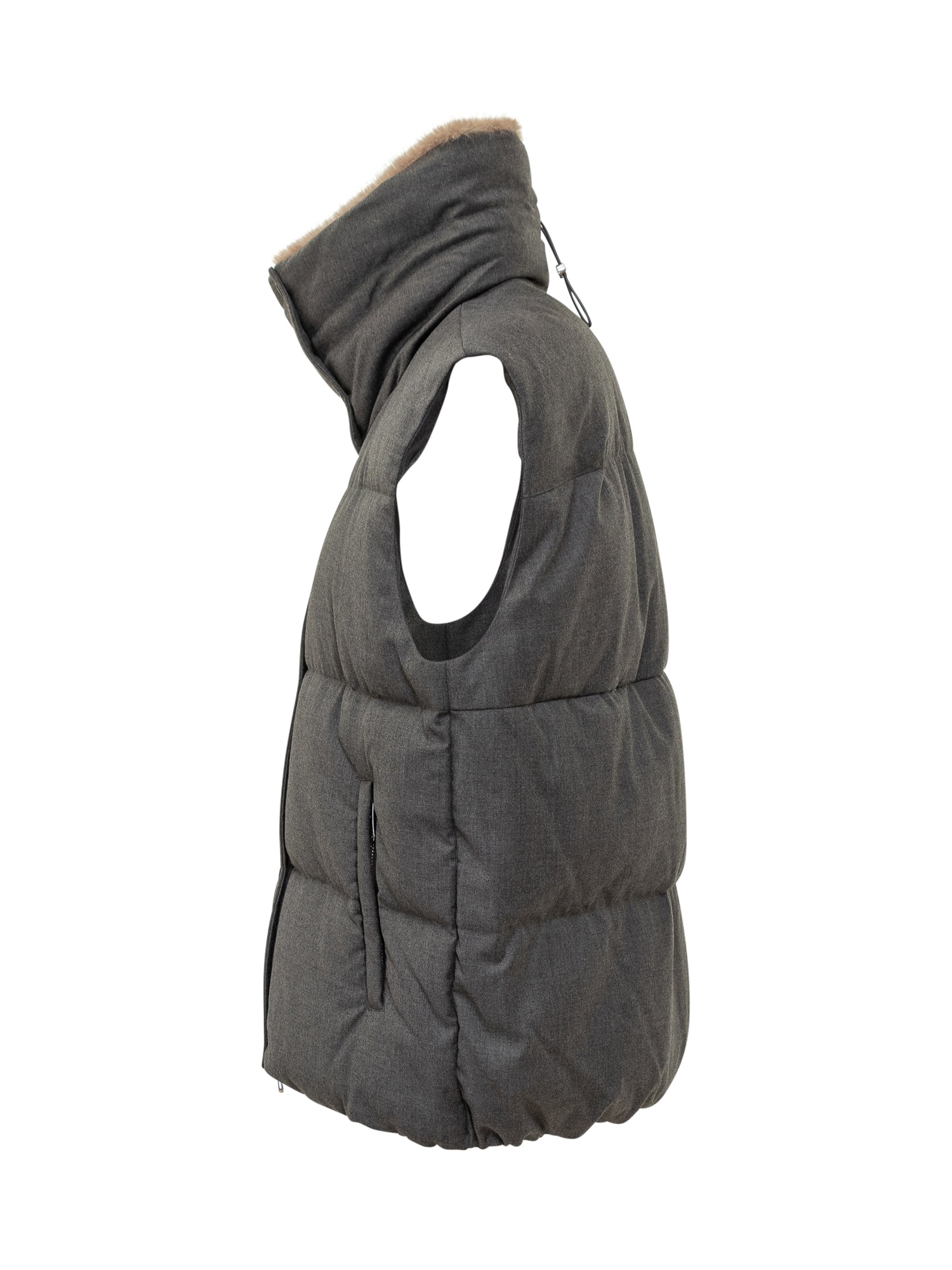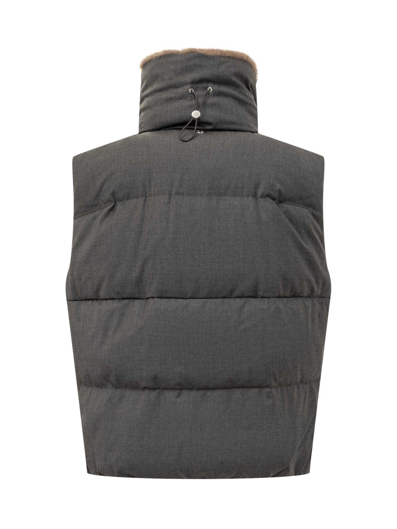 Gilet imbottito Duno in tessuto grigio con interno in pelliccia a contrasto.