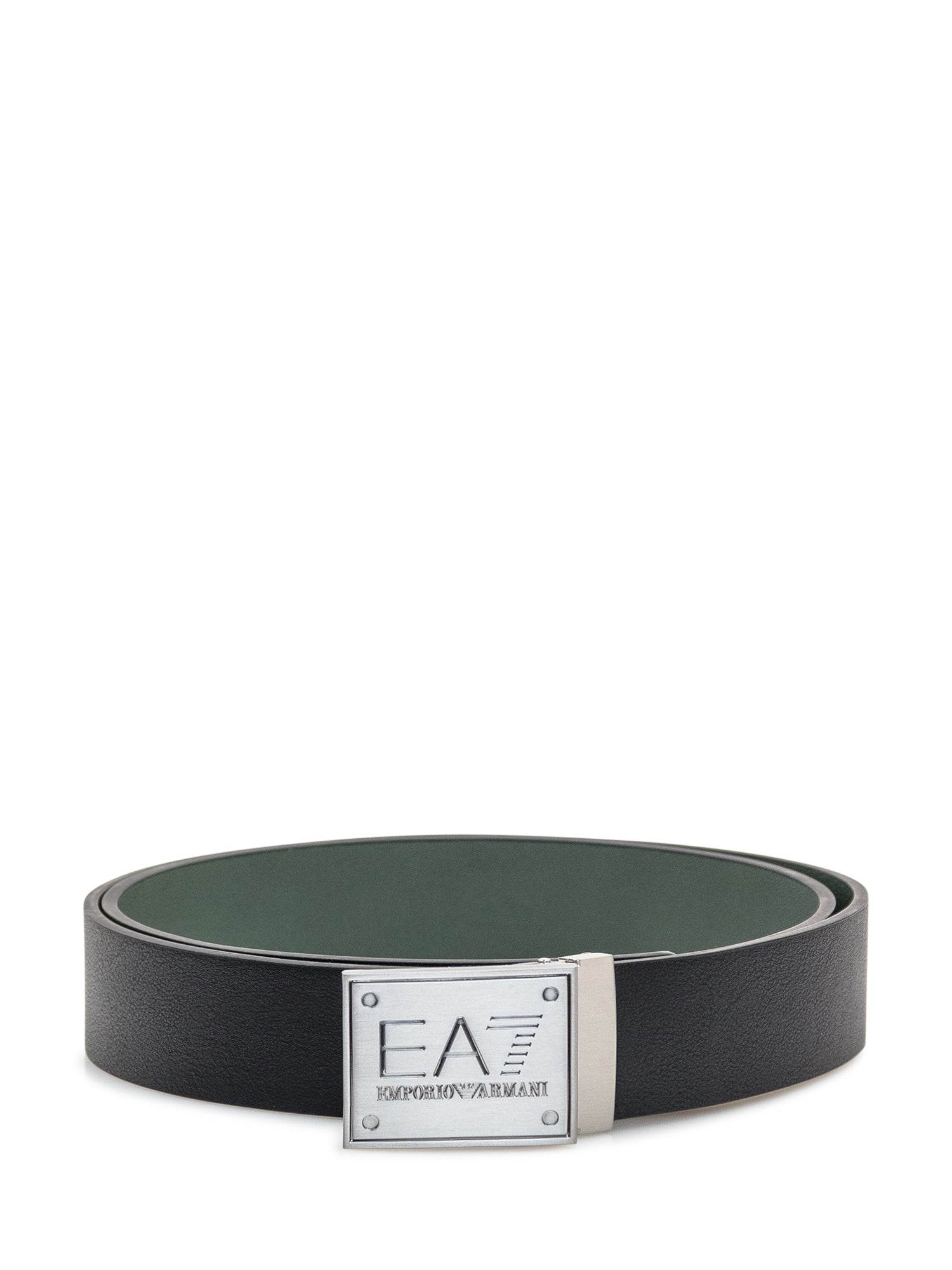 Cintura regolabile nera. Fibia in metallo con logo.