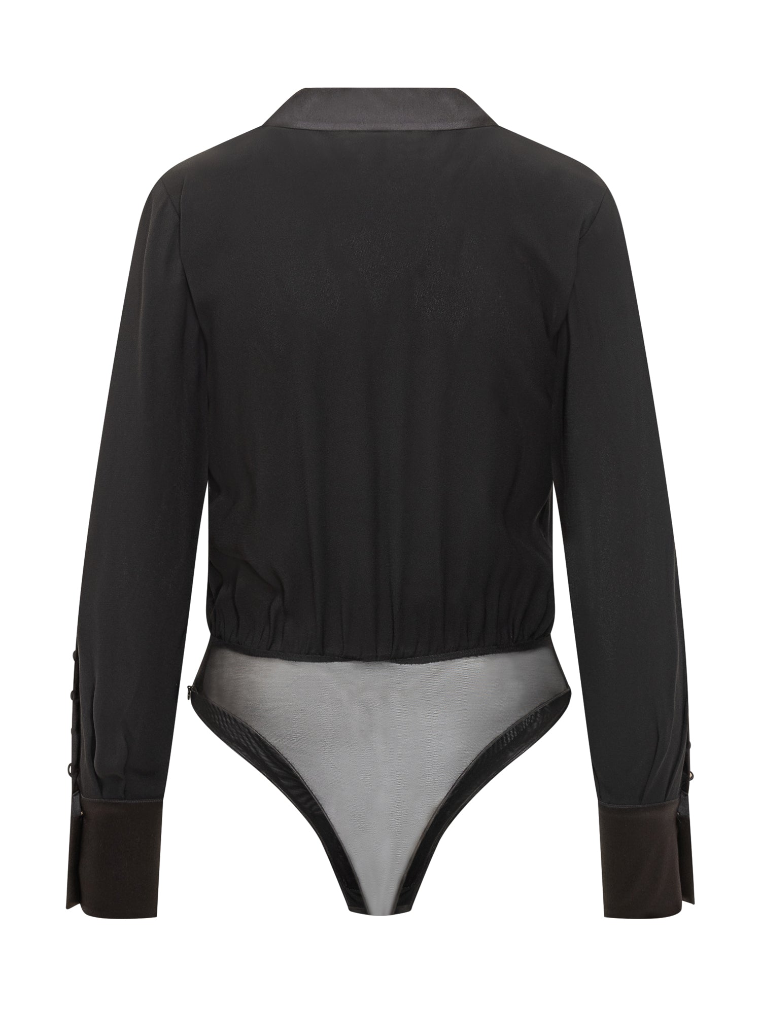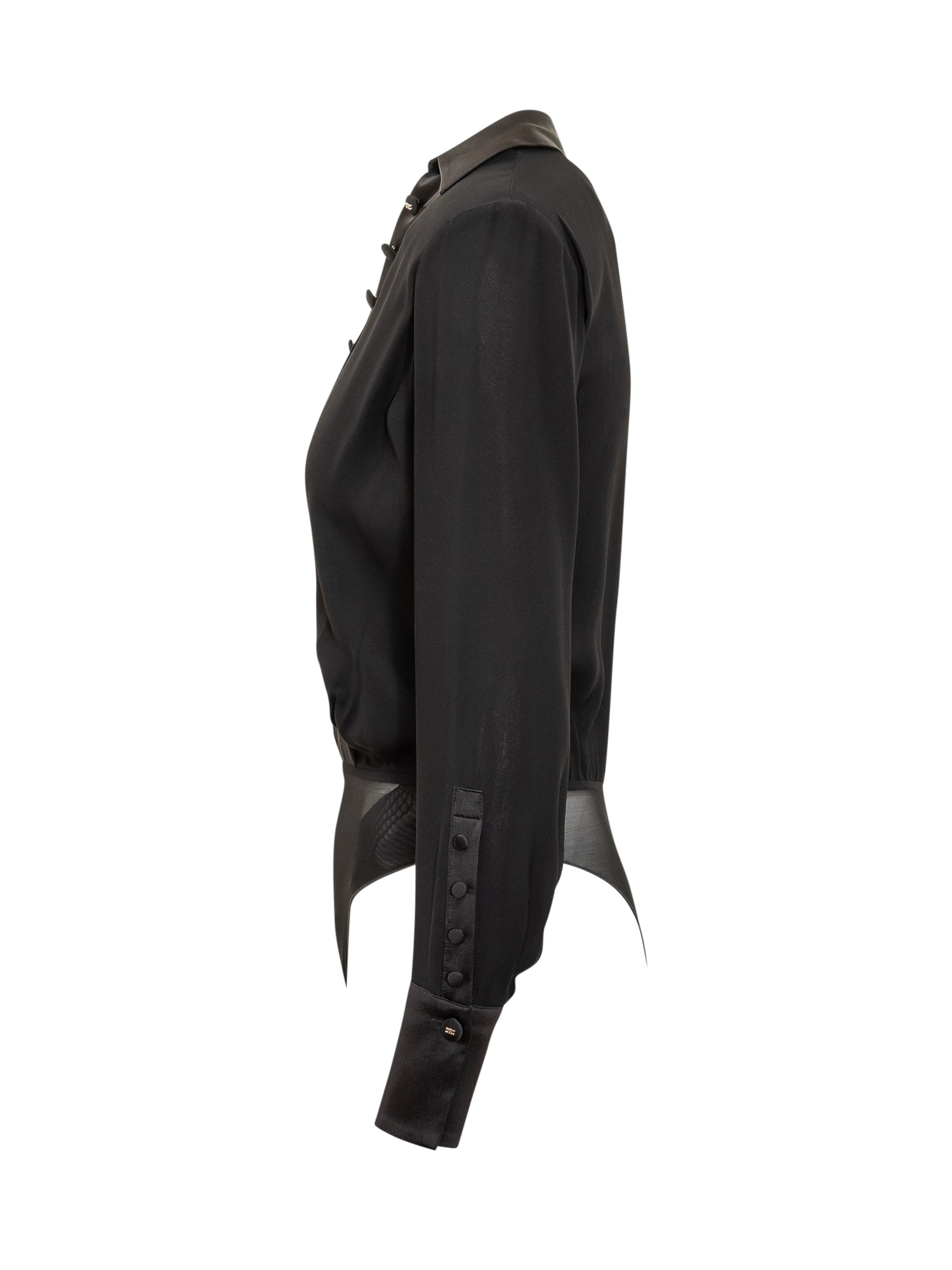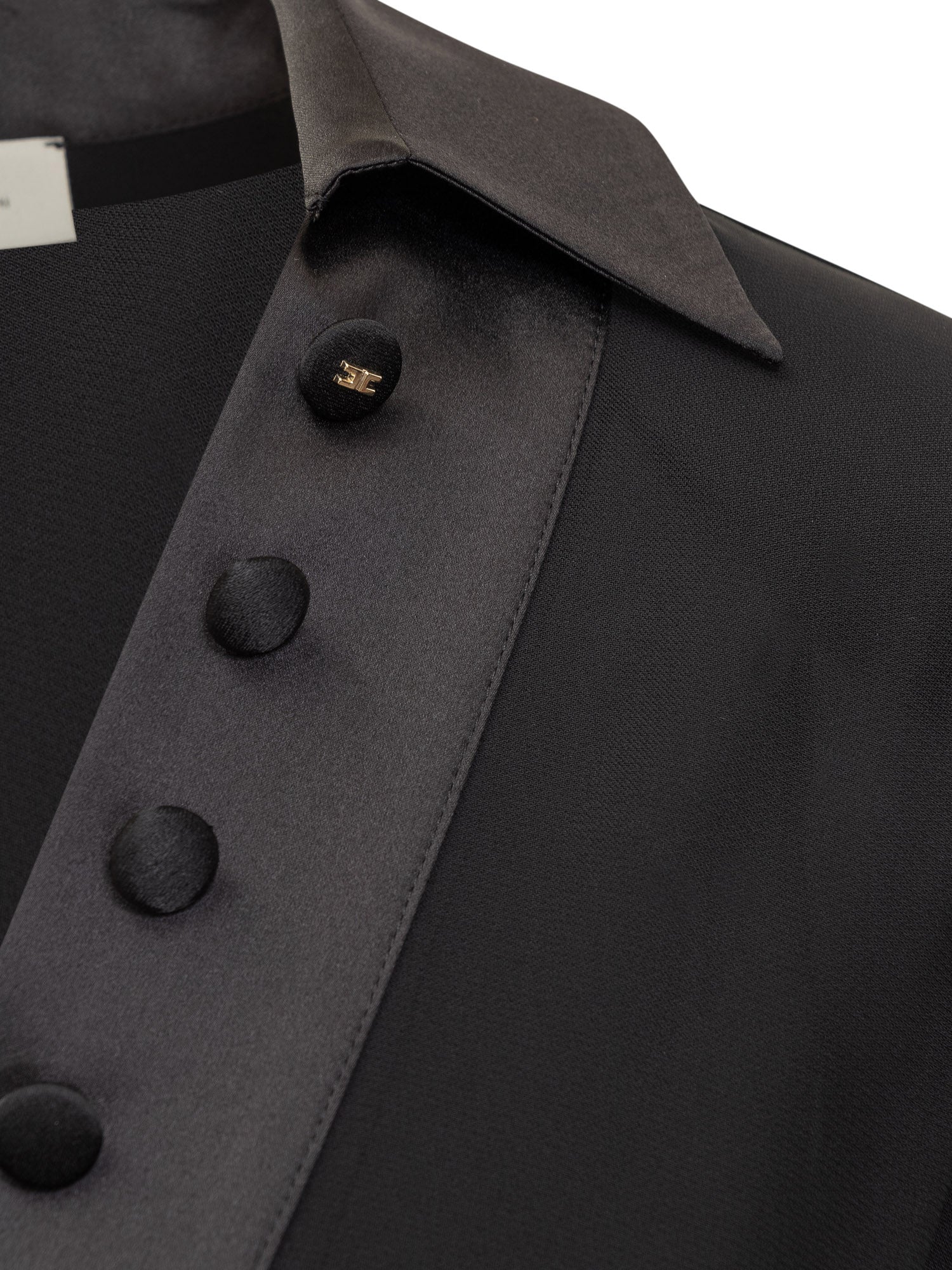 Body camicia Elisabetta Franchi nero con dettagli in raso e bottoni decorativi.