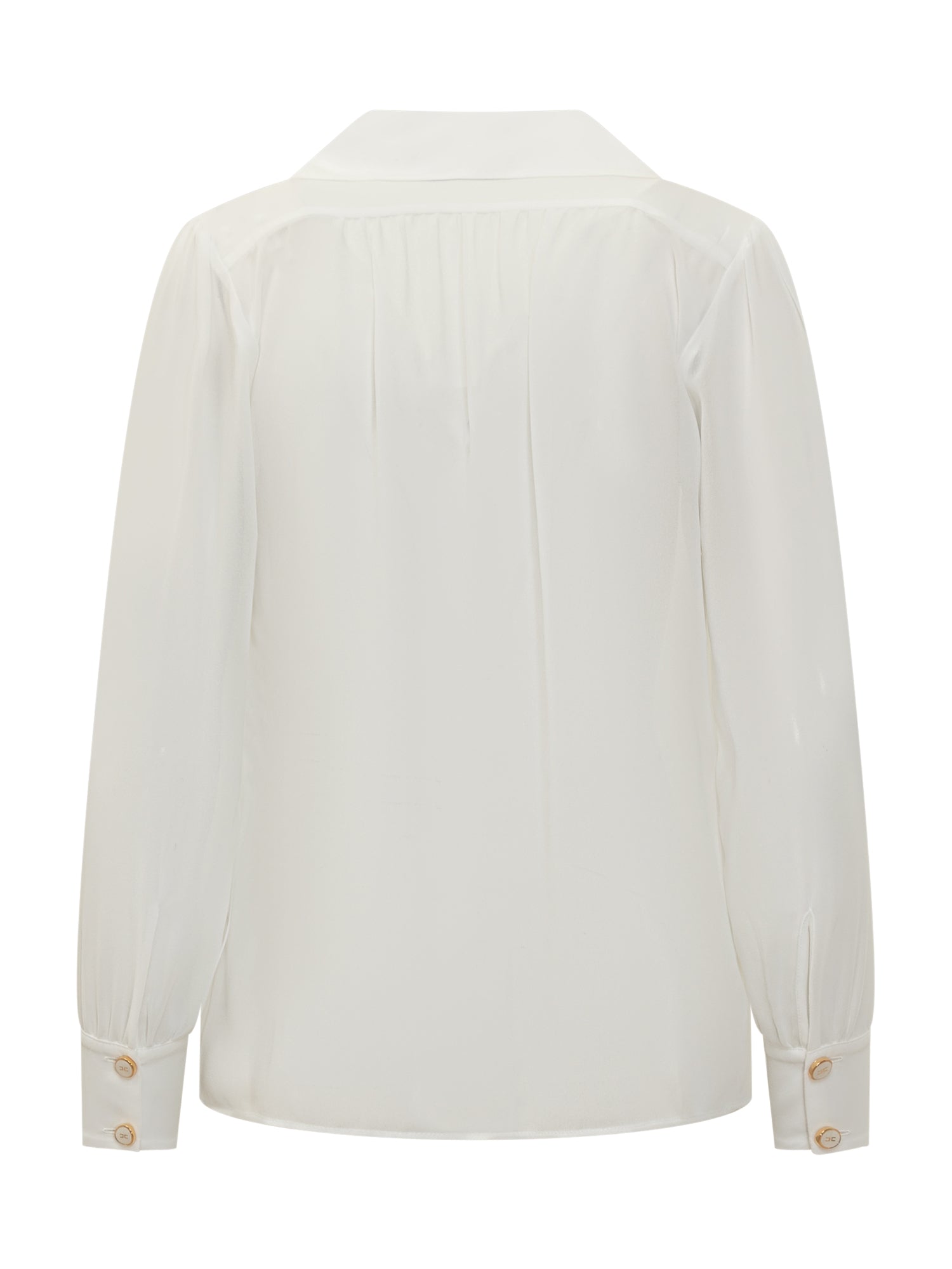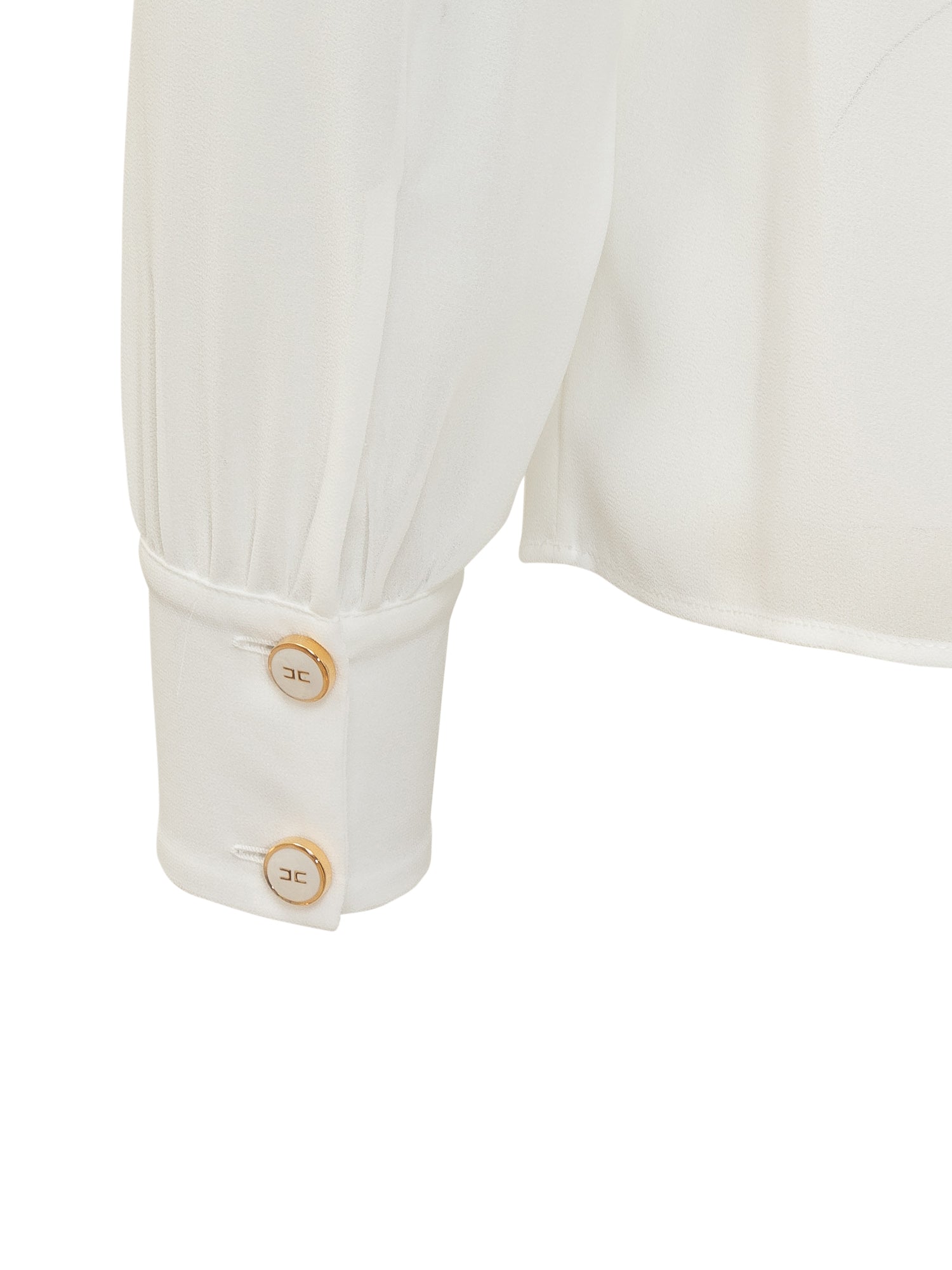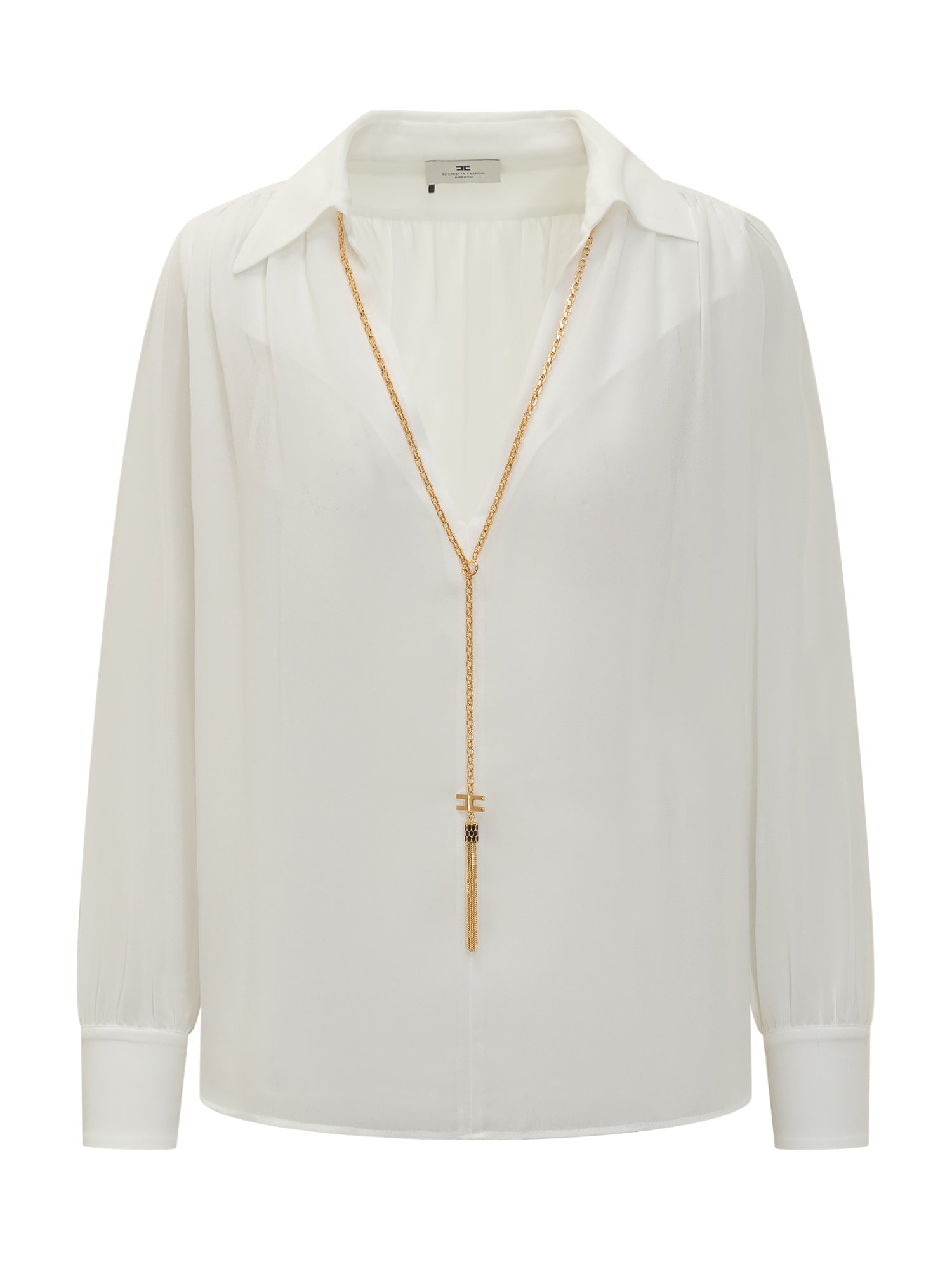 Camicia Elisabetta Franchi in tessuto bianco leggero con scollo a V e collana dorata integrata con pendente logo.