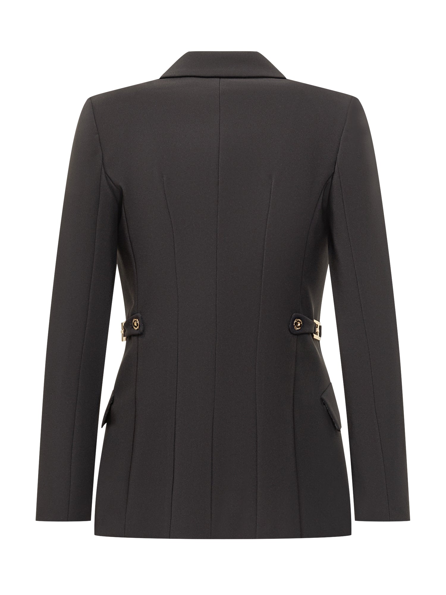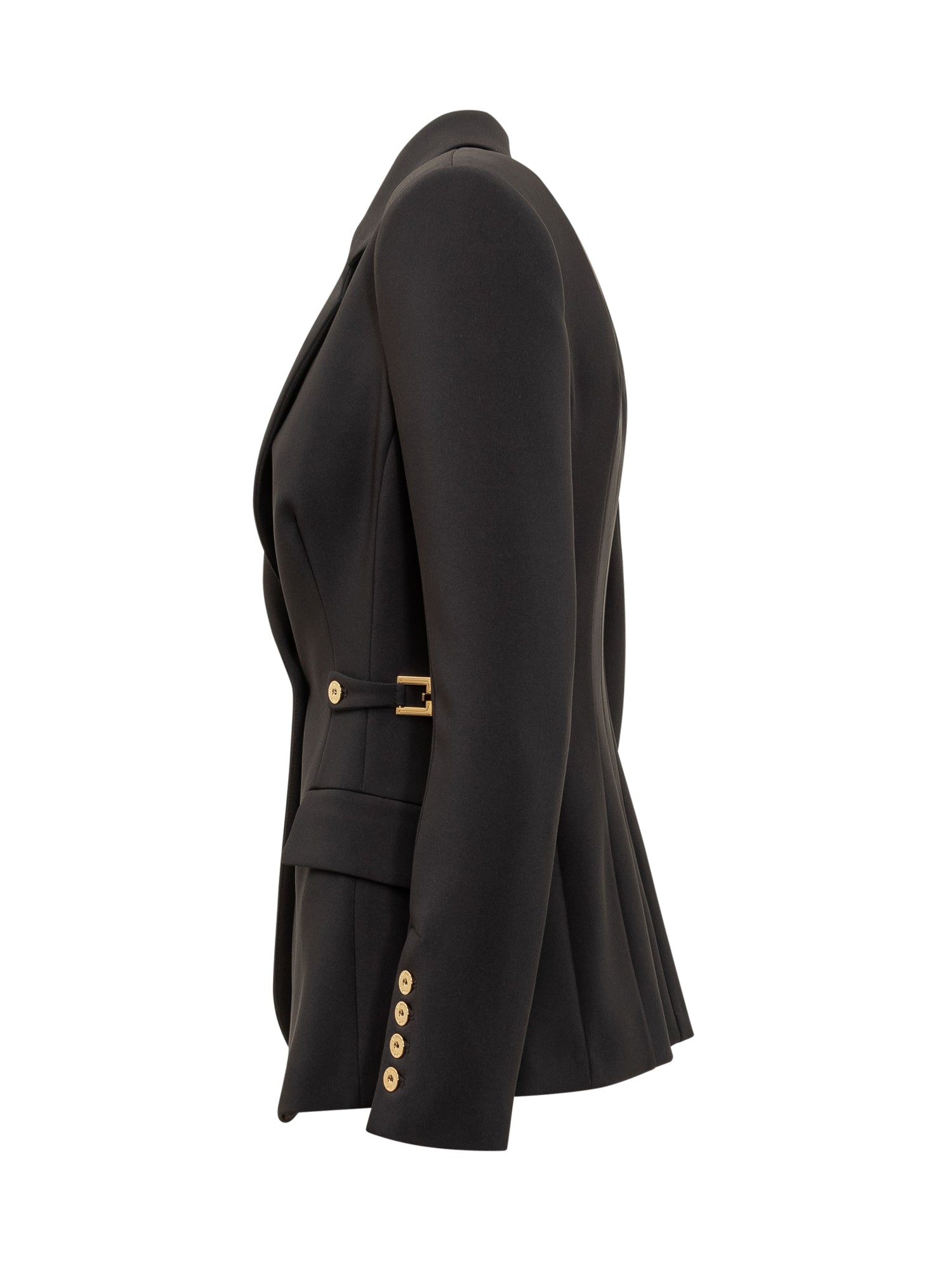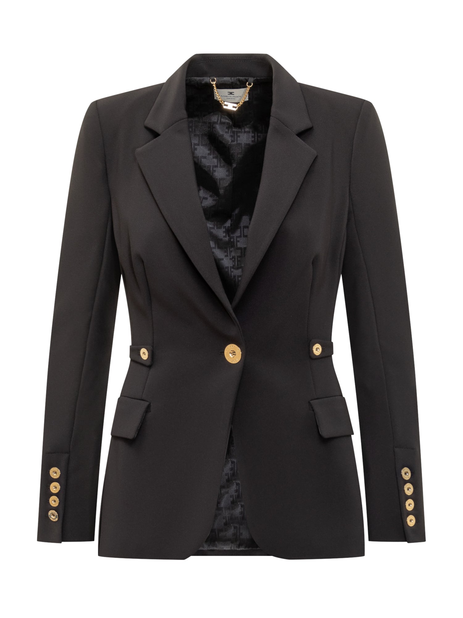 Giacca Elisabetta Franchi in tessuto strutturato con bottoni dorati e catena interna logata.