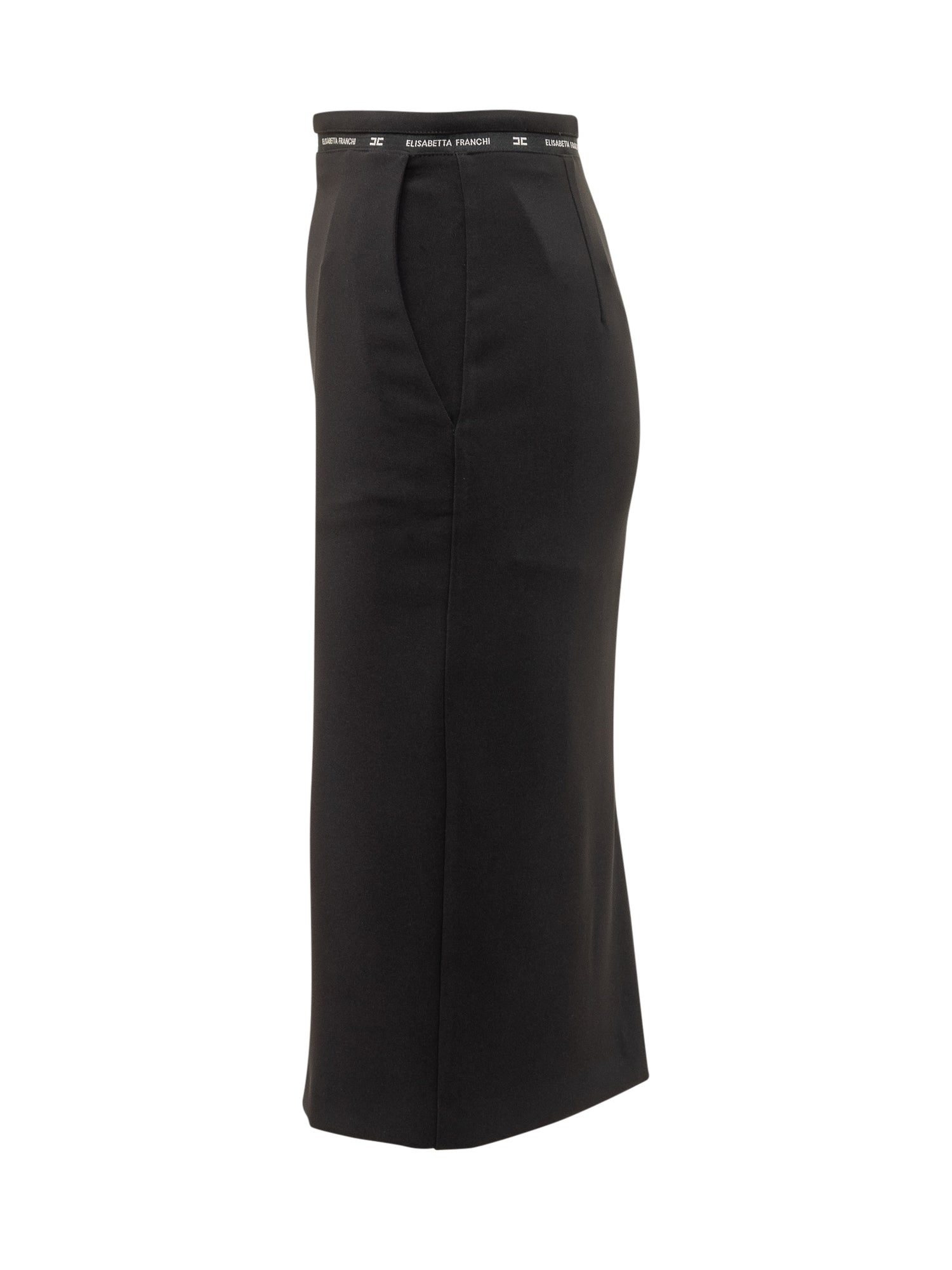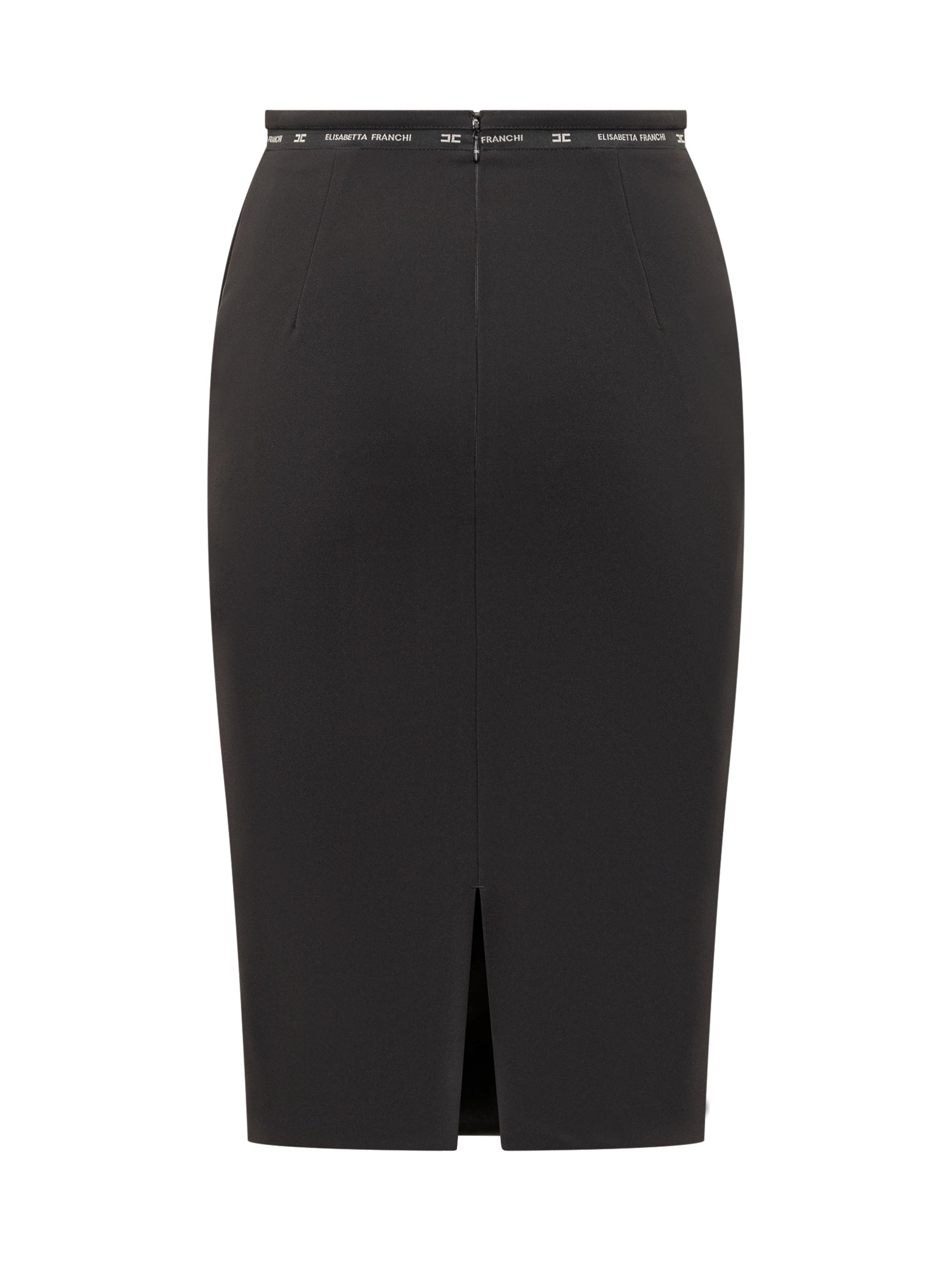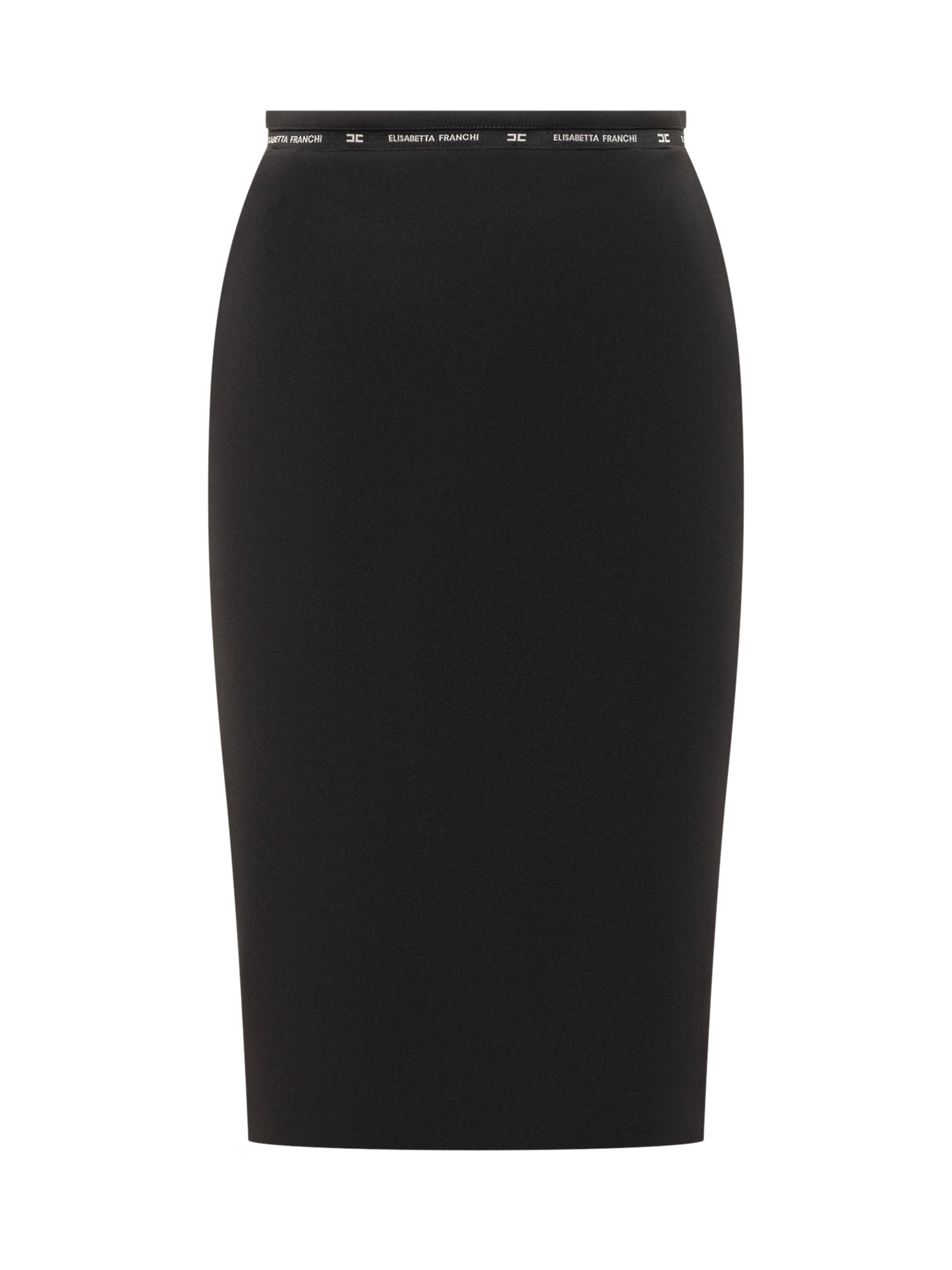 Gonna tubino nera Elisabetta Franchi in tessuto stretch con elastico in vita logato.