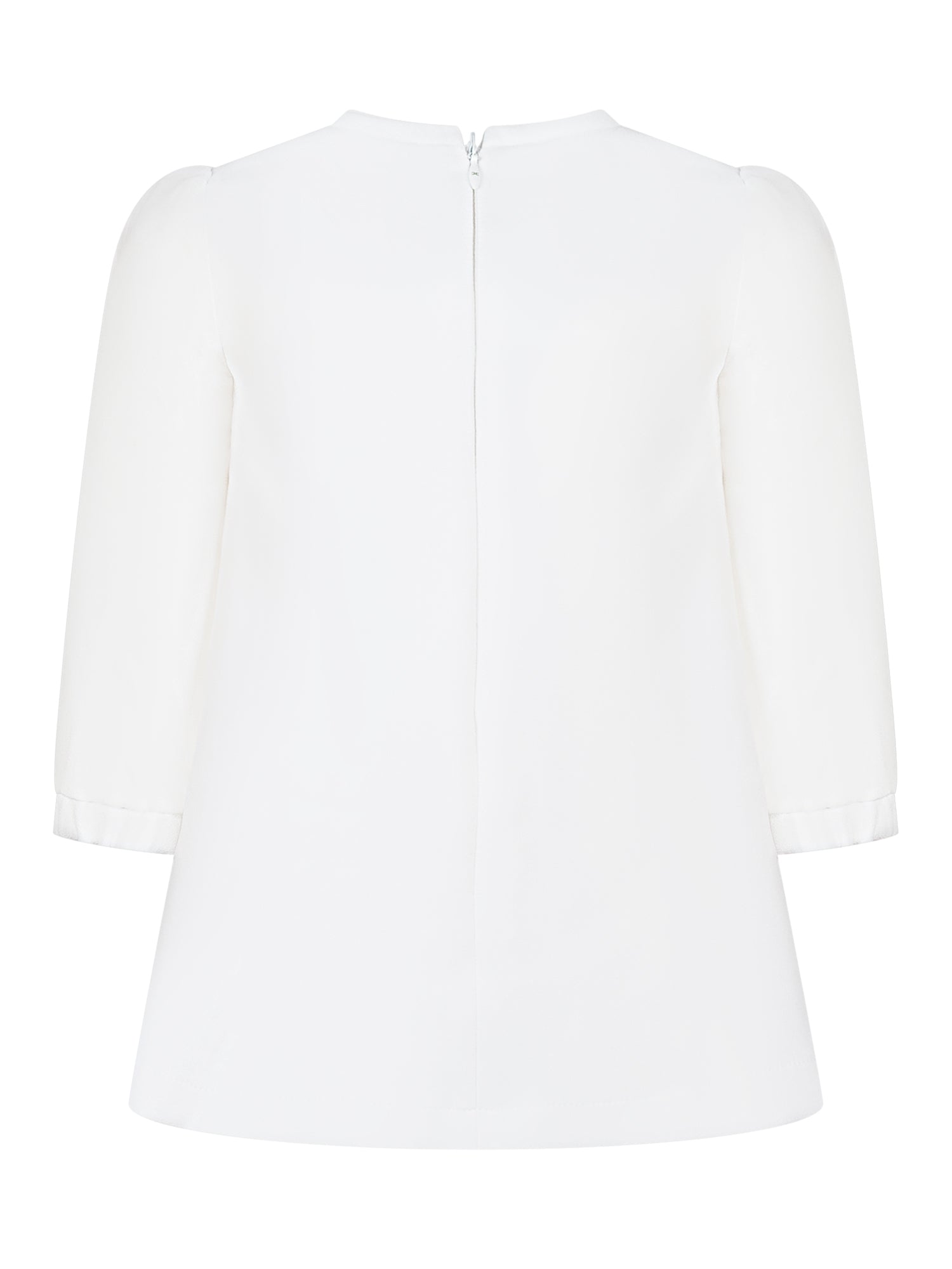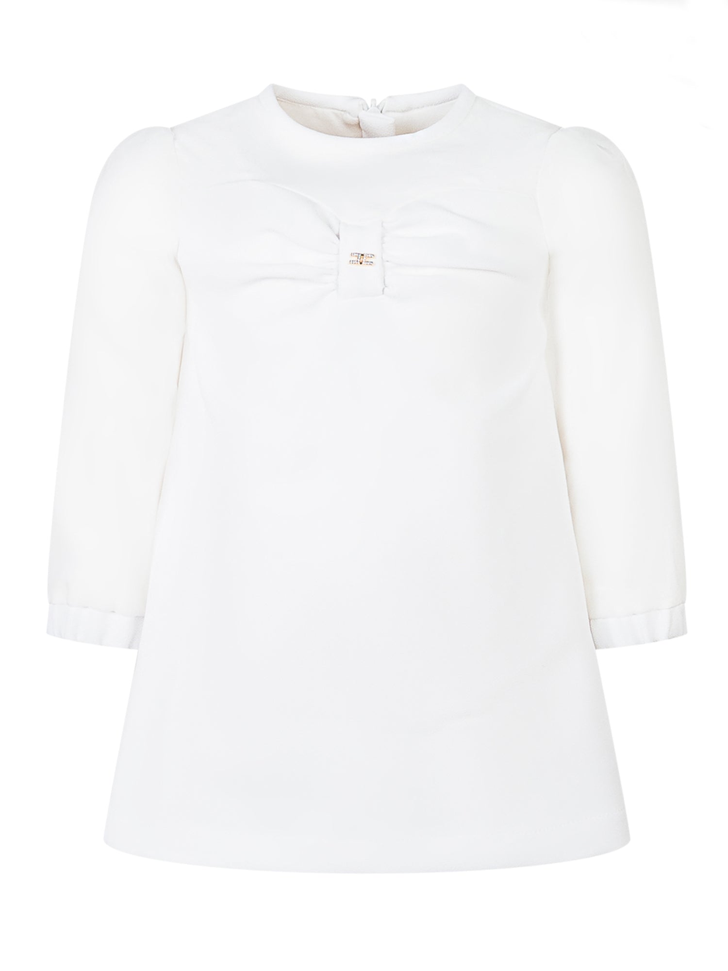 Abito bianco Elisabetta Franchi Kids con maniche lunghe e fiocco frontale arricchito da logo dorato.