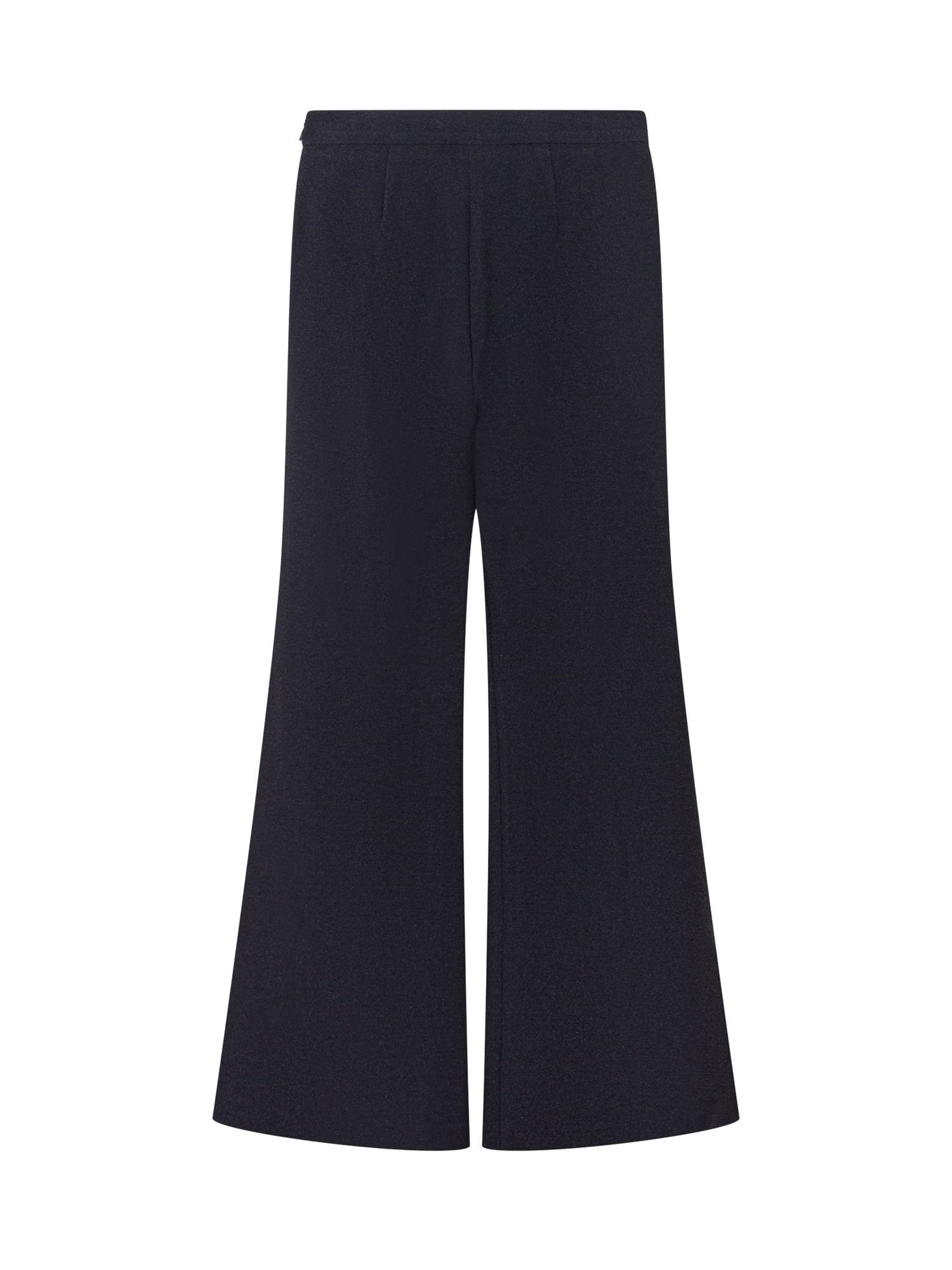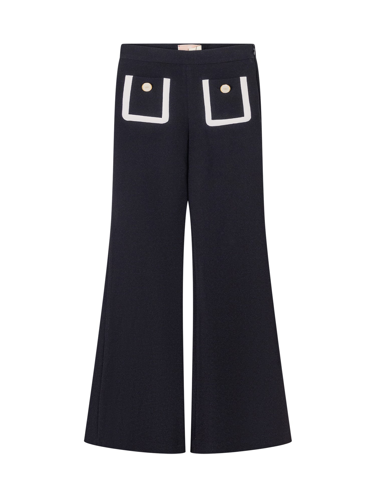 Pantaloni Elisabetta Franchi Kids in blu scuro con taglio svasato. Tasche frontali decorate con profili bianchi e bottoni dorati.