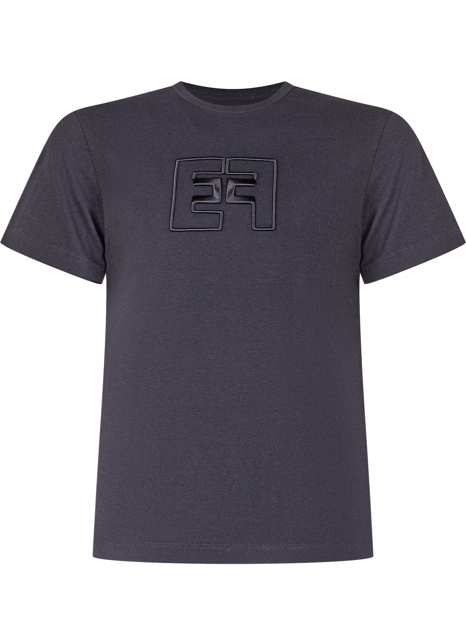 T-shirt Elisabetta Franchi Kids in cotone nero, impreziosita dal logo frontale in rilievo tono su tono.