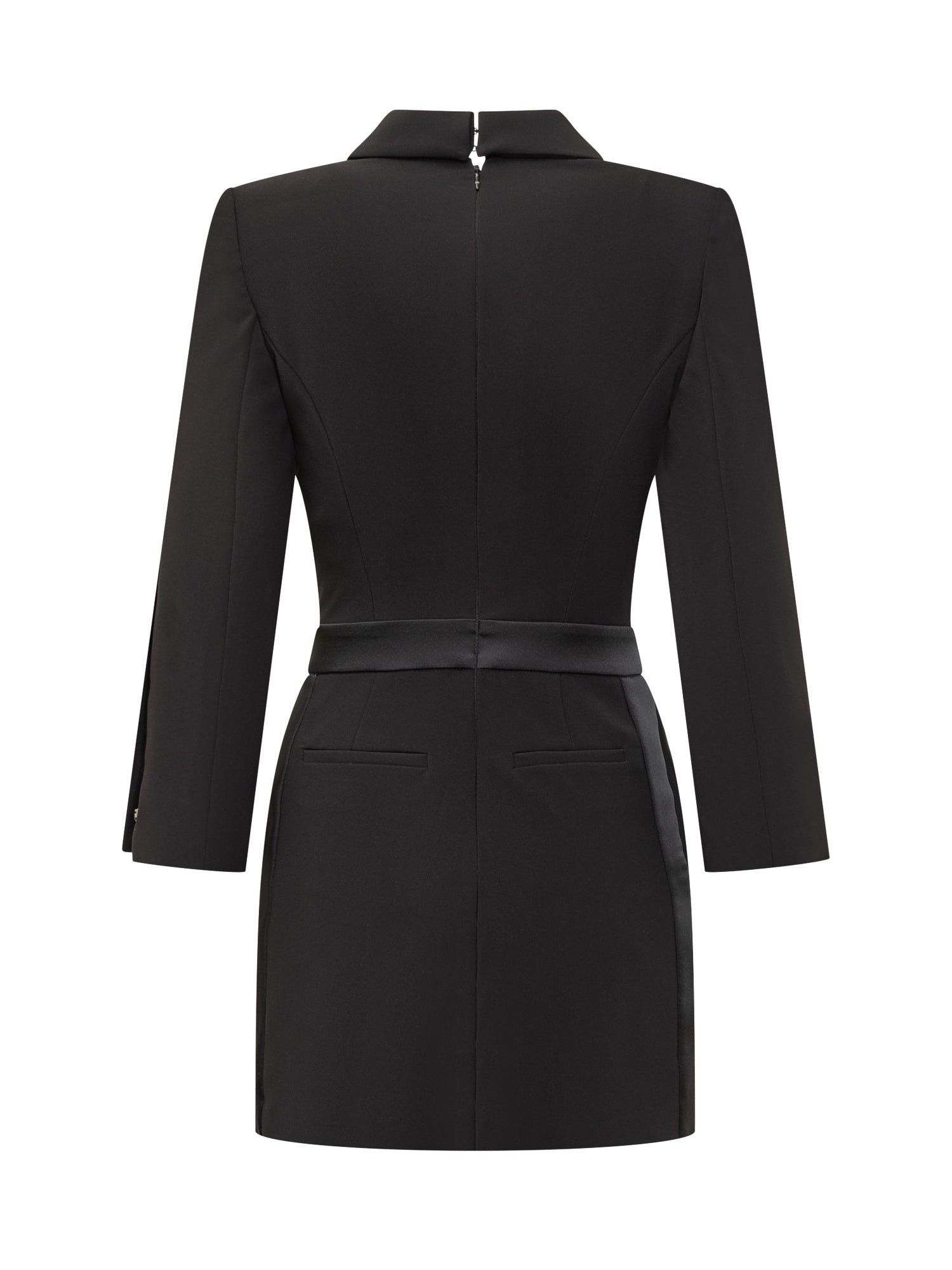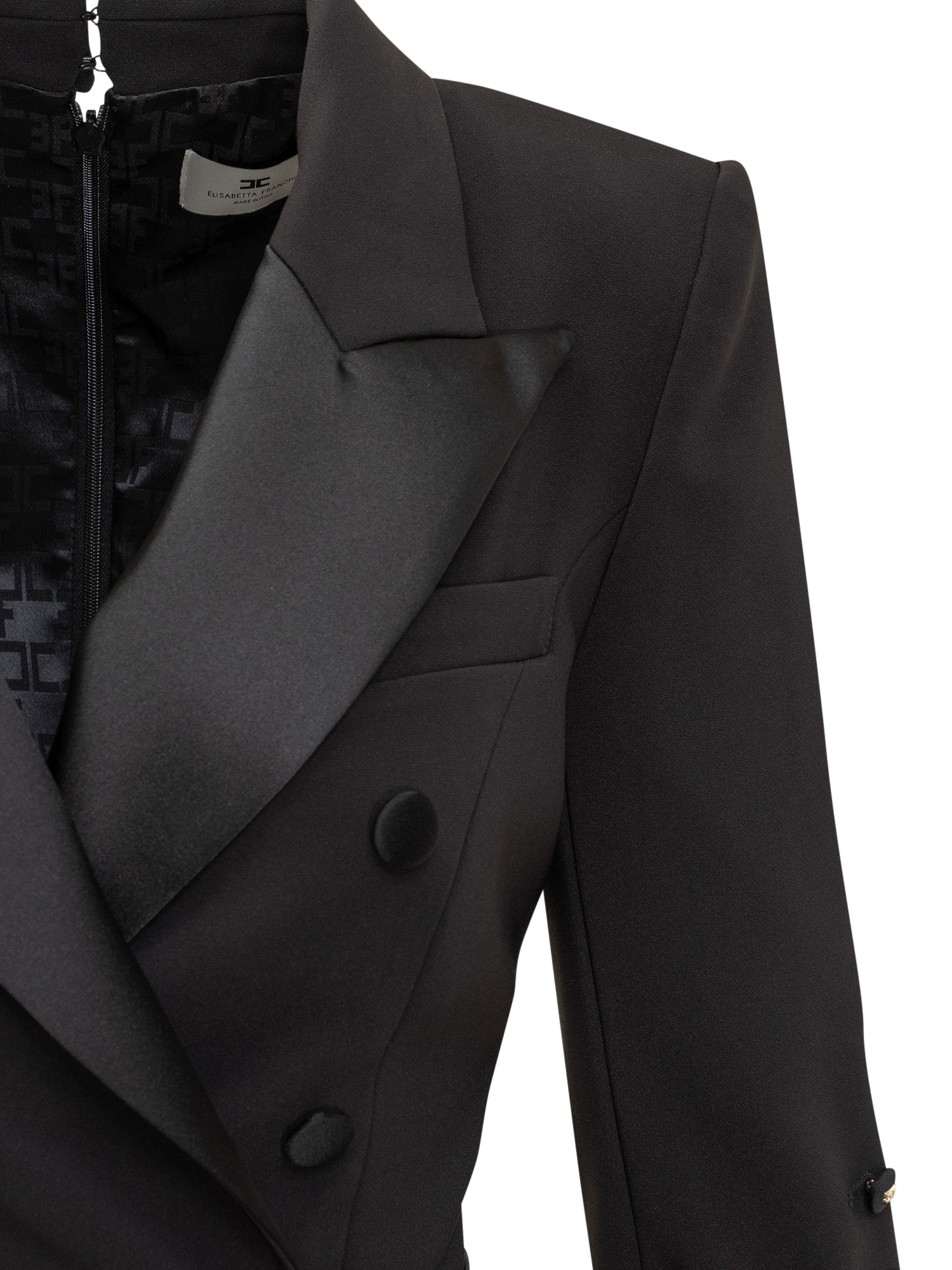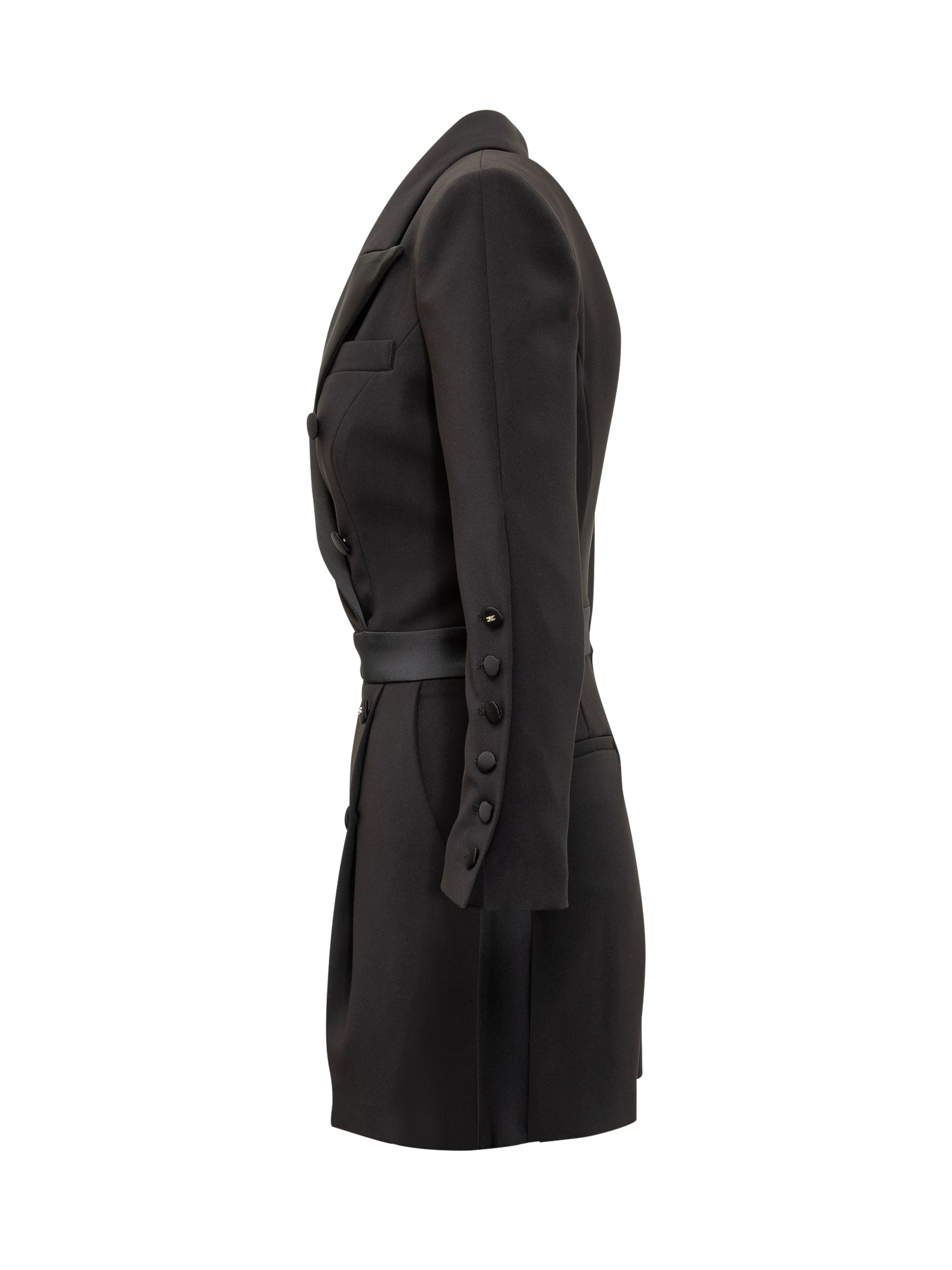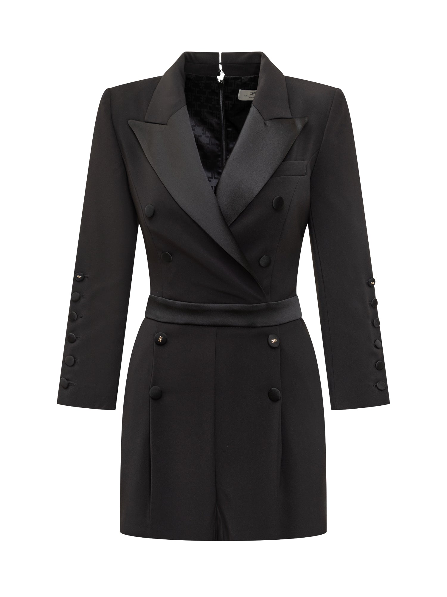 Tuta blazer Elisabetta Franchi in stile doppiopetto con revers satinati, cintura in vita e maniche con bottoni.