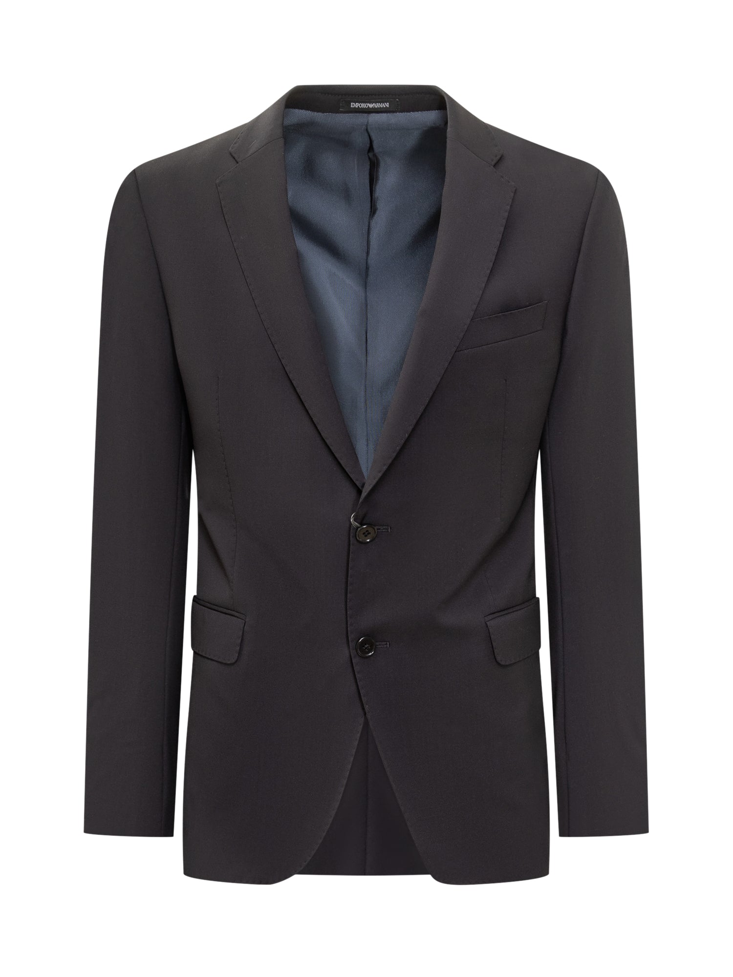 Elegante blazer monopetto nero firmato Emporio Armani, realizzato in lana vergine. Presenta chiusura a due bottoni, rever classico, tasche con patta e taschino sul petto. Linea slim per un look sofisticato e moderno.