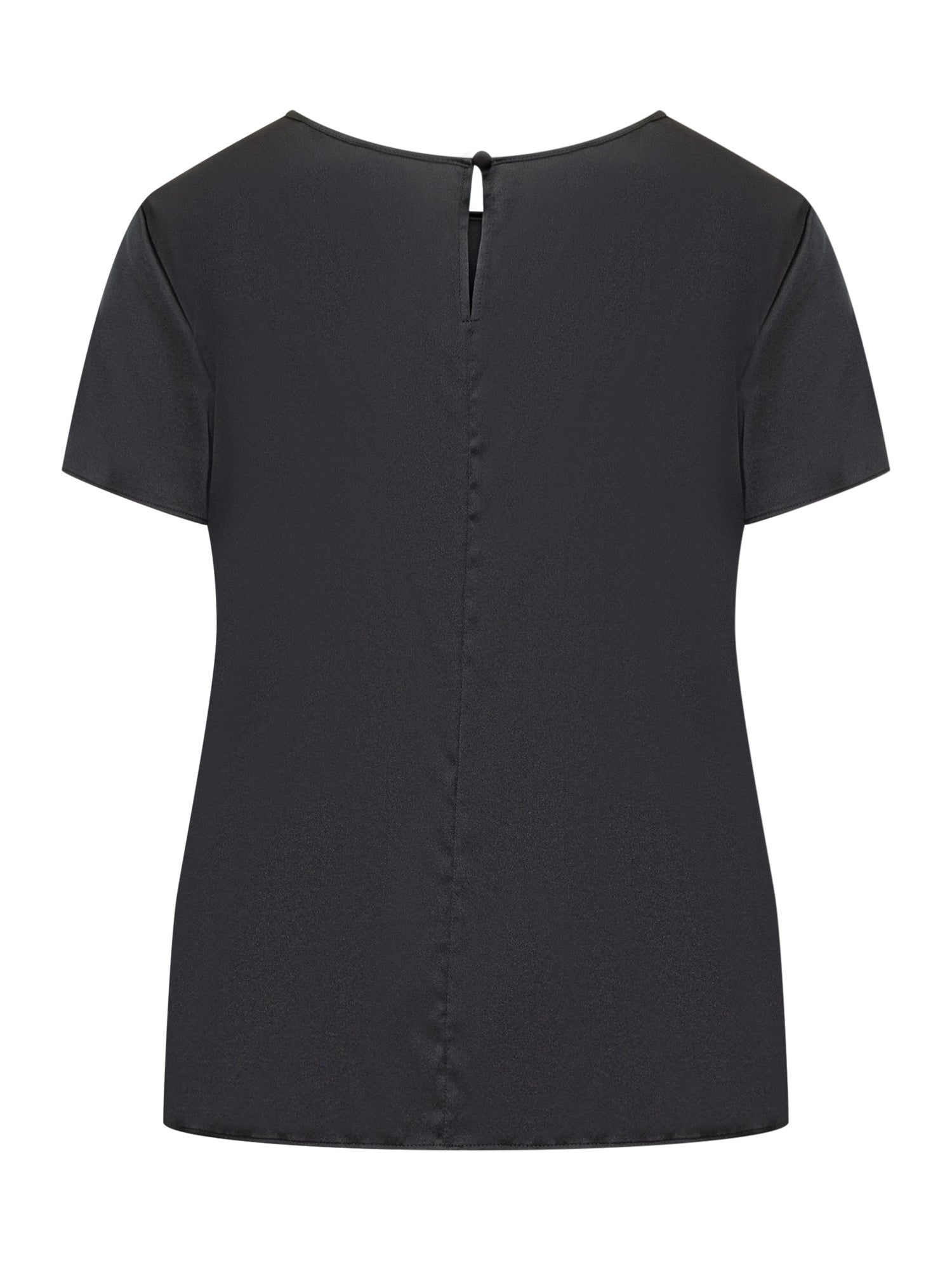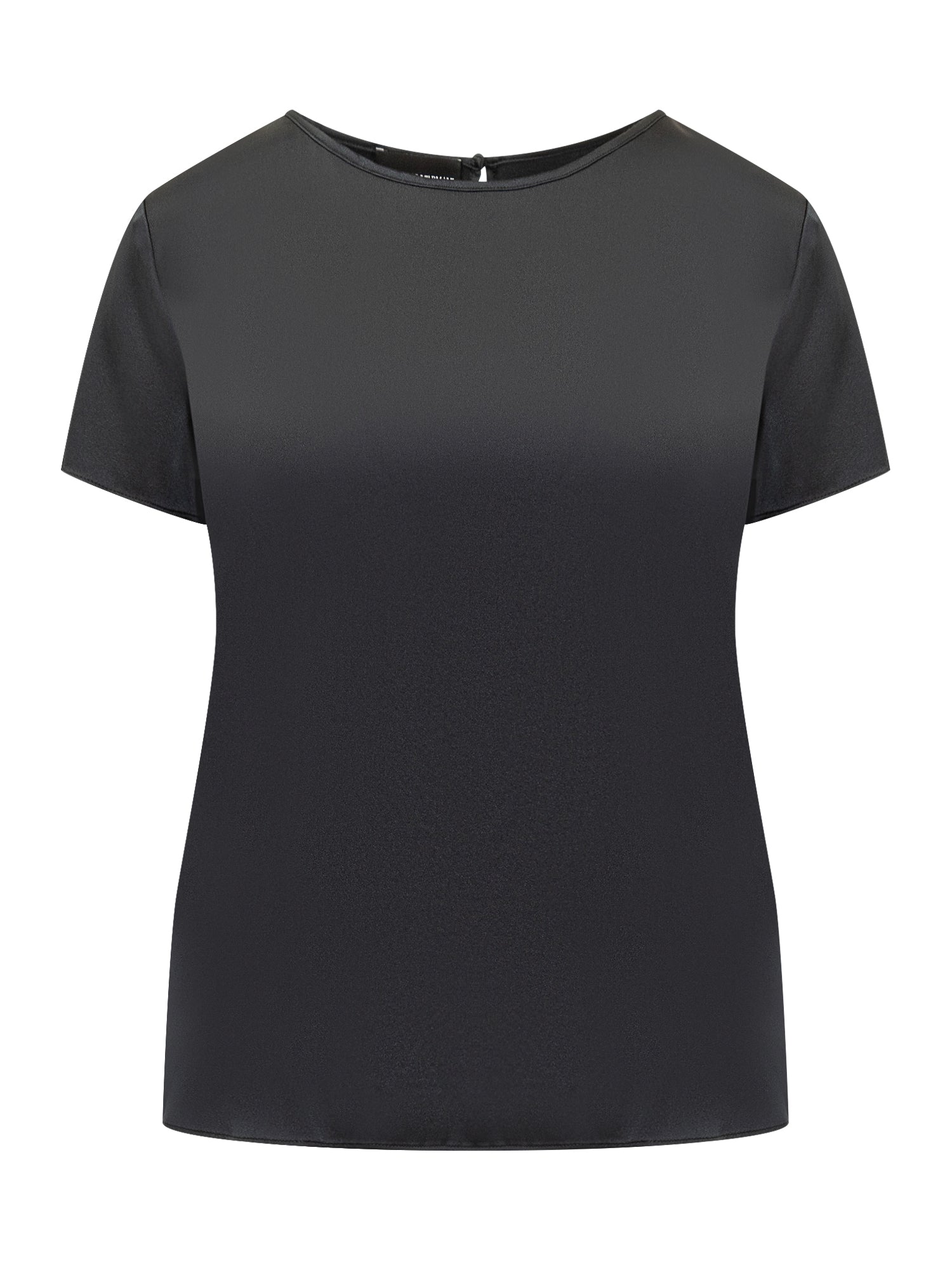 Top a maniche corte in seta. Girocollo. Chiusura con bottone sul retro.