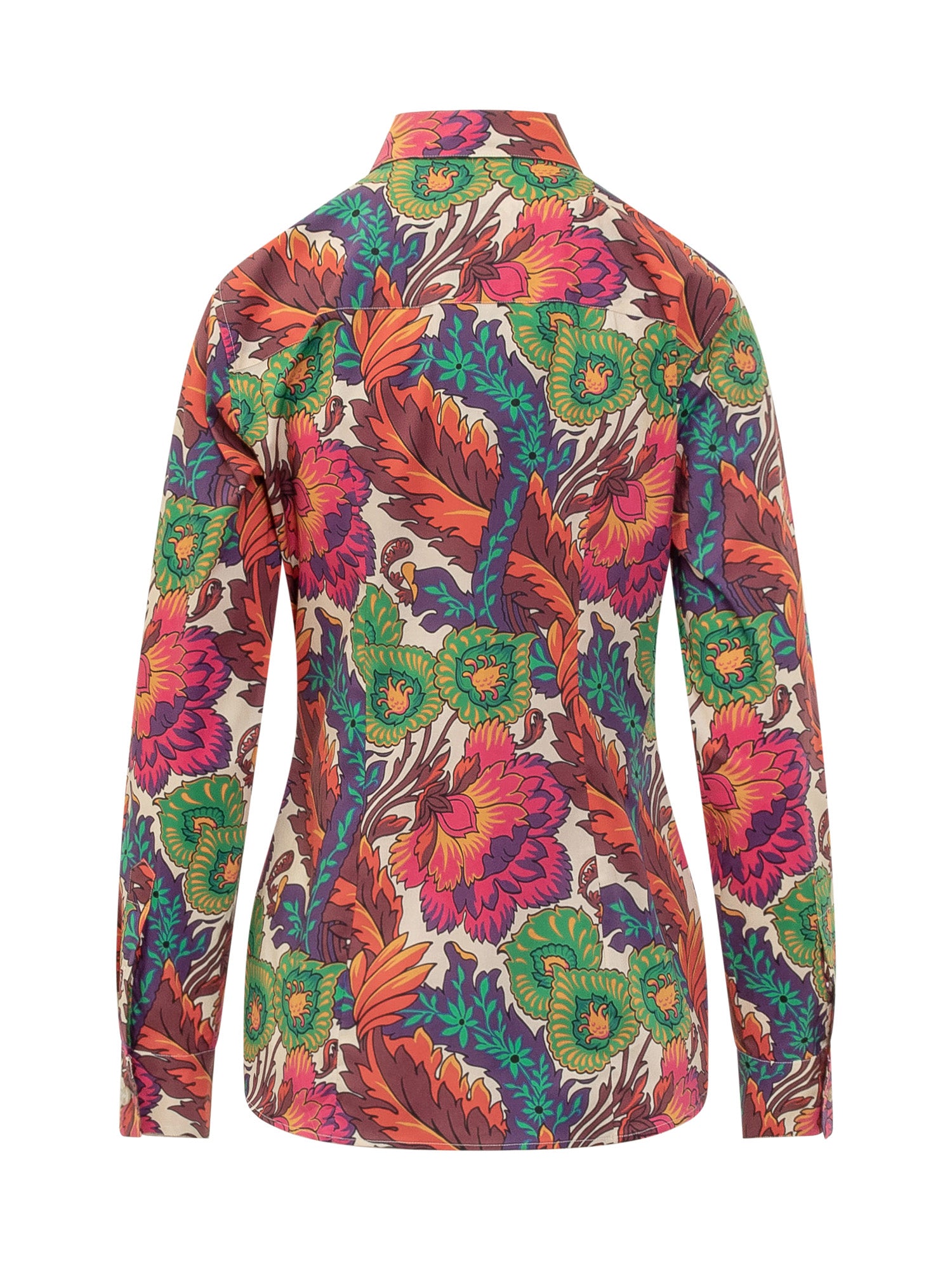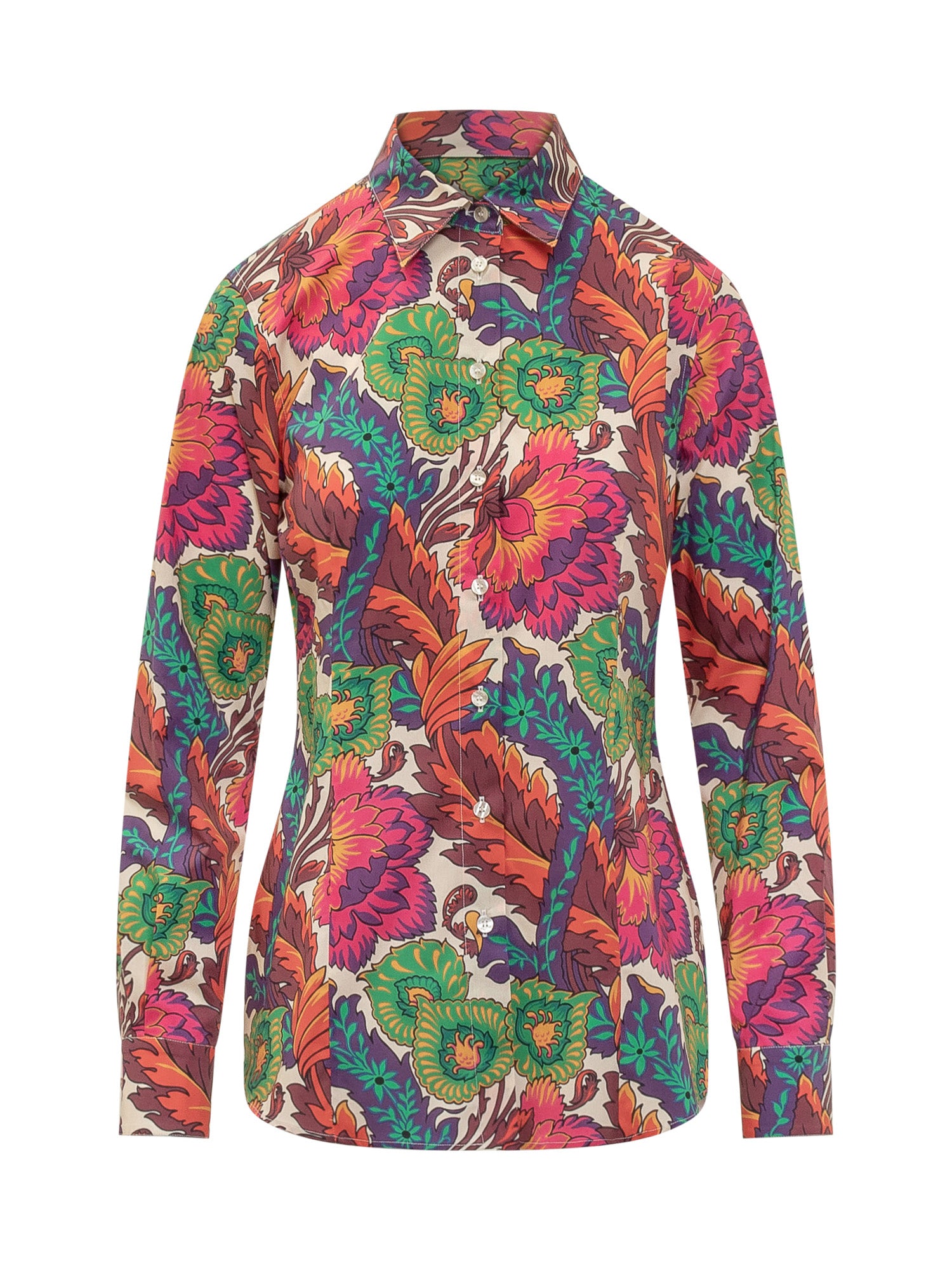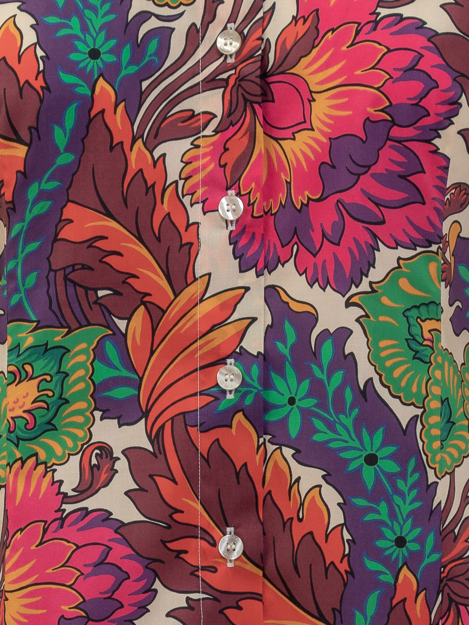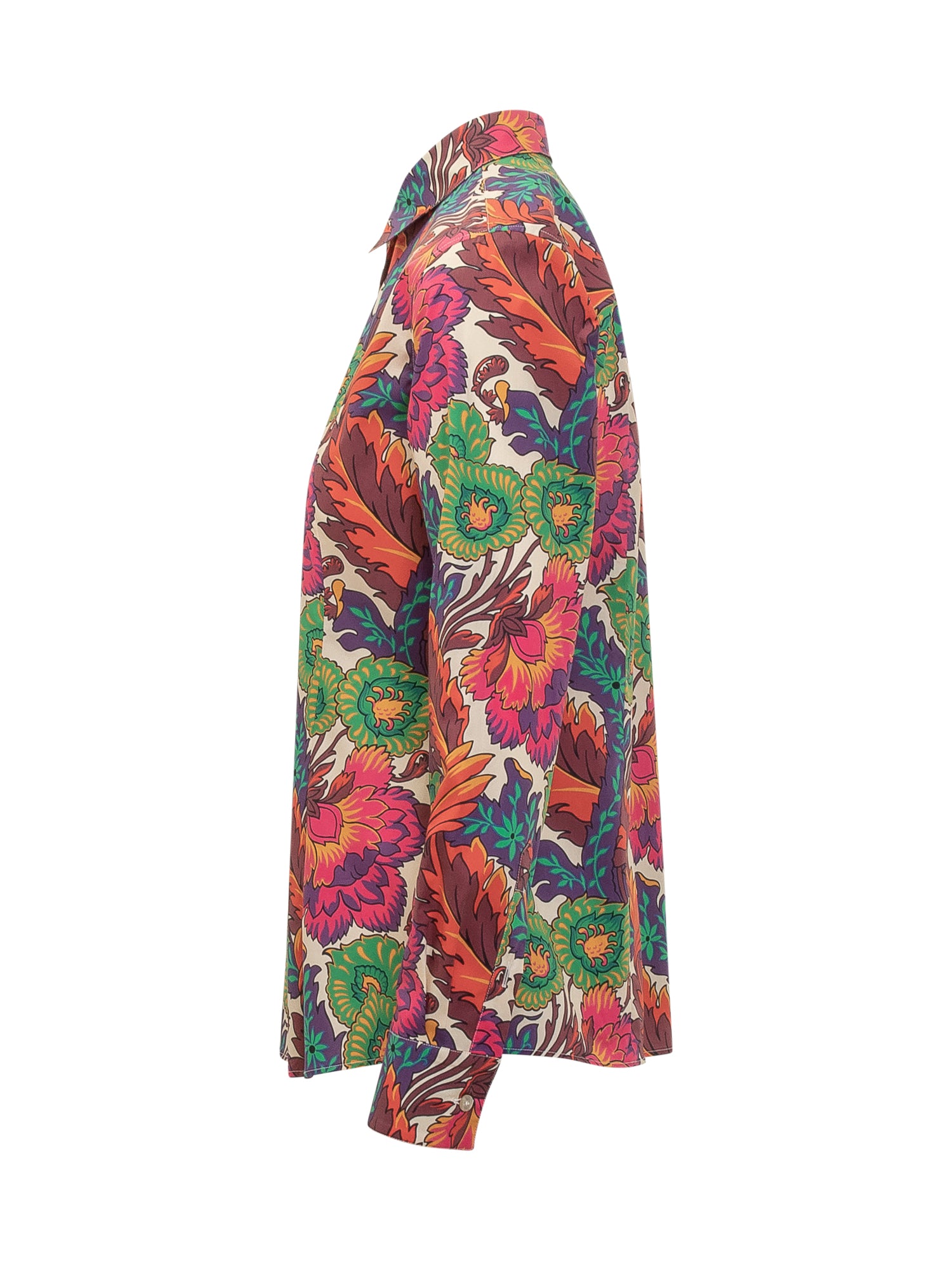 Camicia multicolore con stampa floreale. Maniche lunghe. Chiusura con bottoni. Colletto a punta.