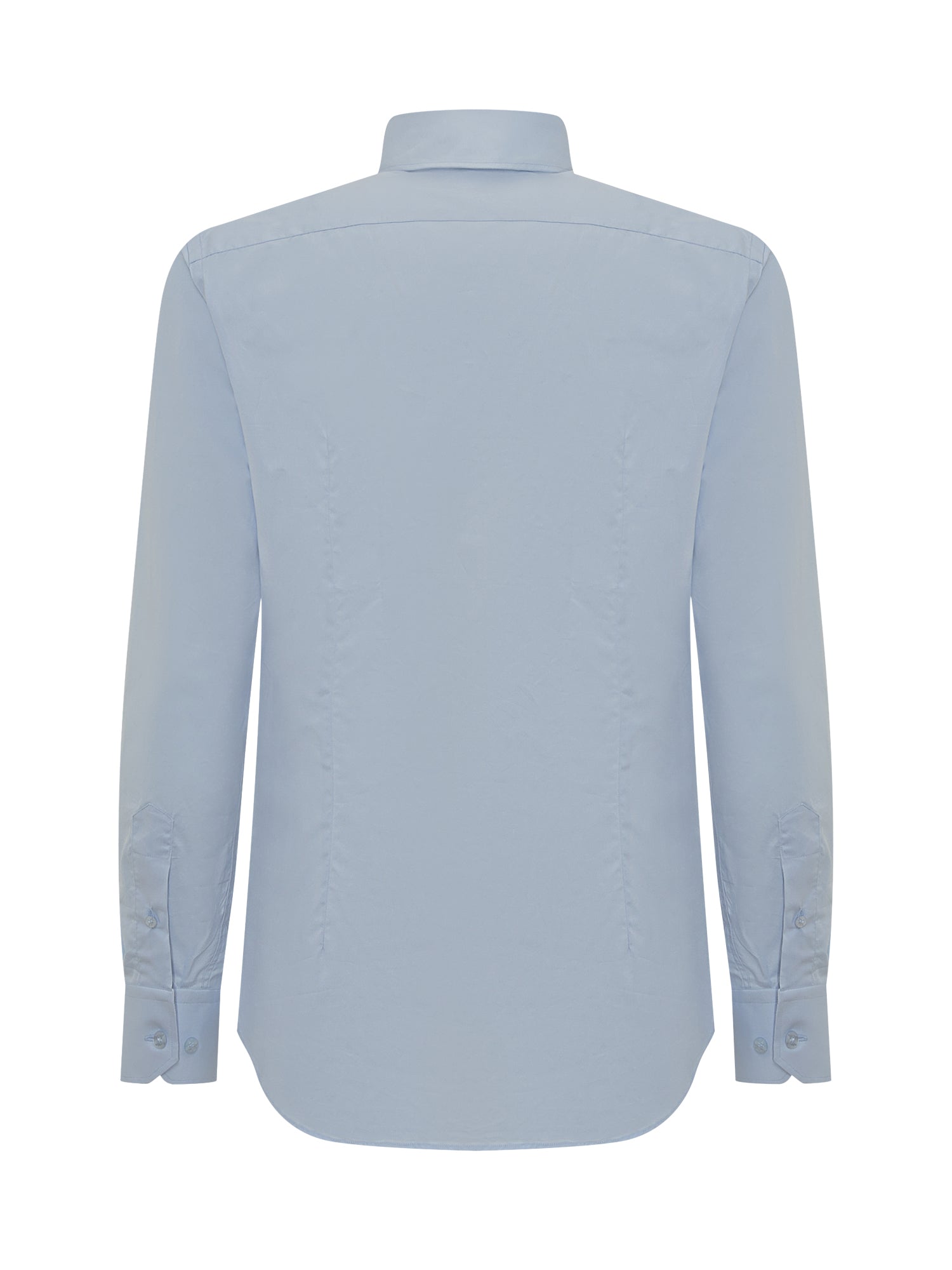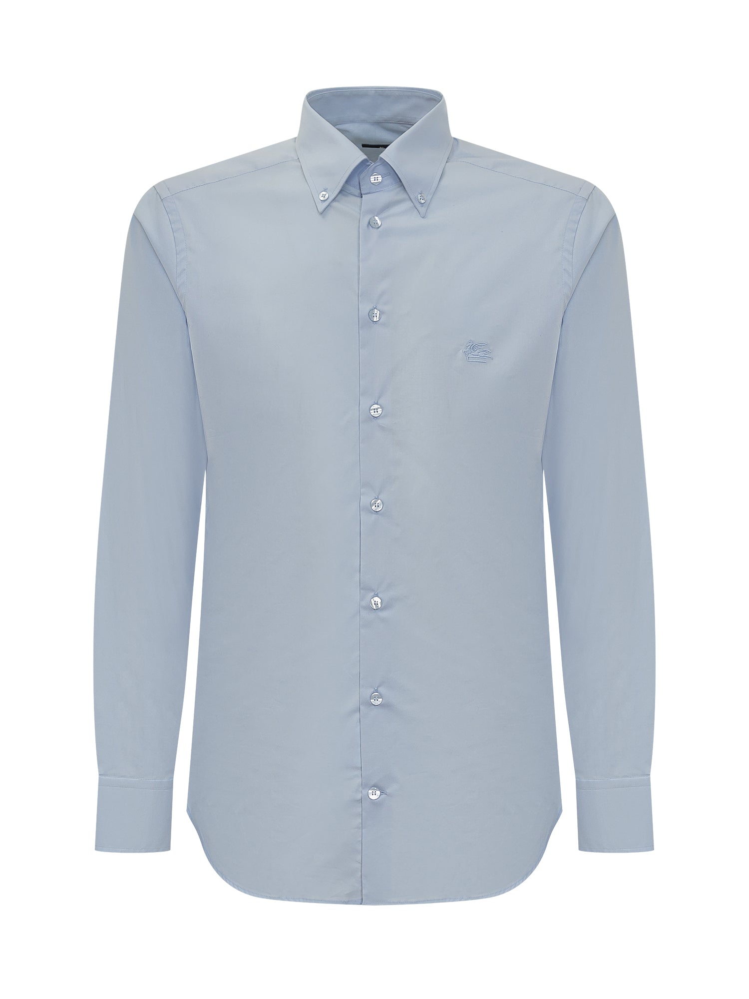 Colletto a punta button down. Chiusura con bottoni. Logo ricamato sul petto. Polsi con doppio bottone.