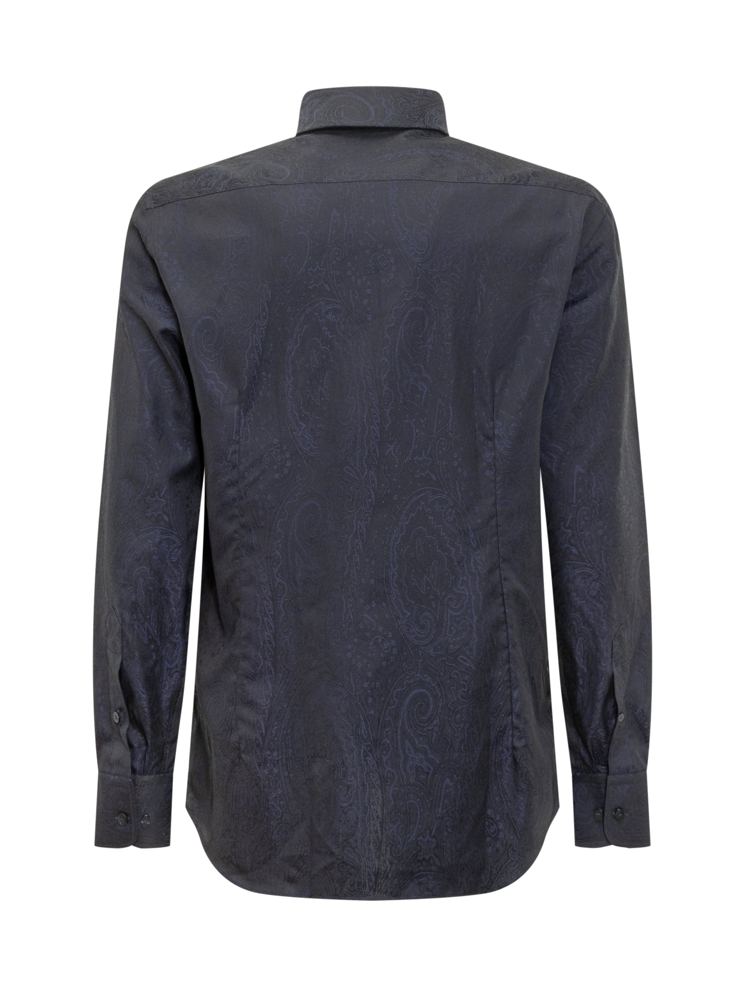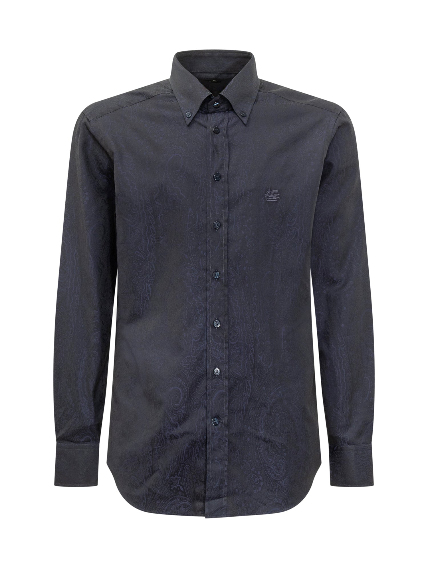 Colletto a punta button down. Chiusura con bottoni. Logo ricamato sul petto. Polsi con doppio bottone. Motivo paisley in jacquard.