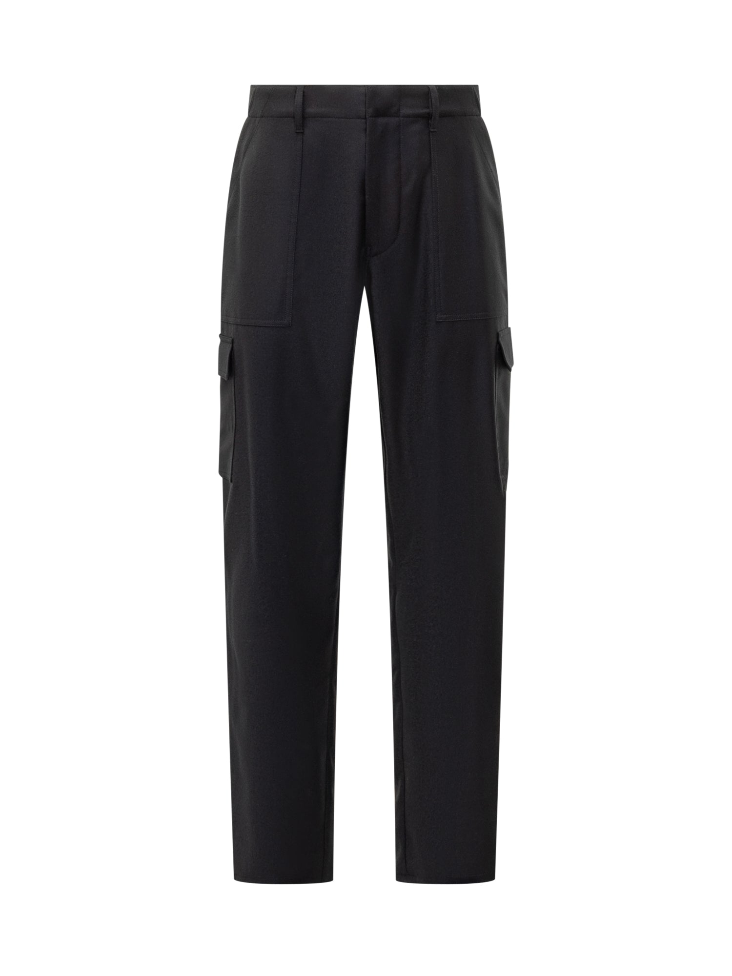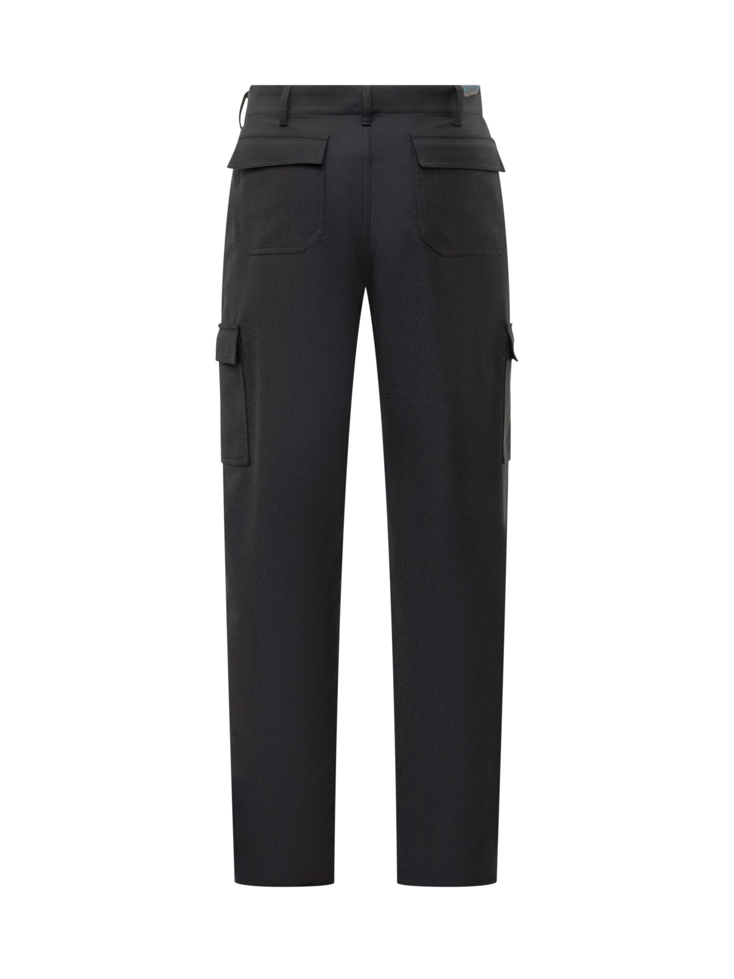 Pantaloni Etro in lana nera, modello cargo con tasche laterali e taglio dritto.