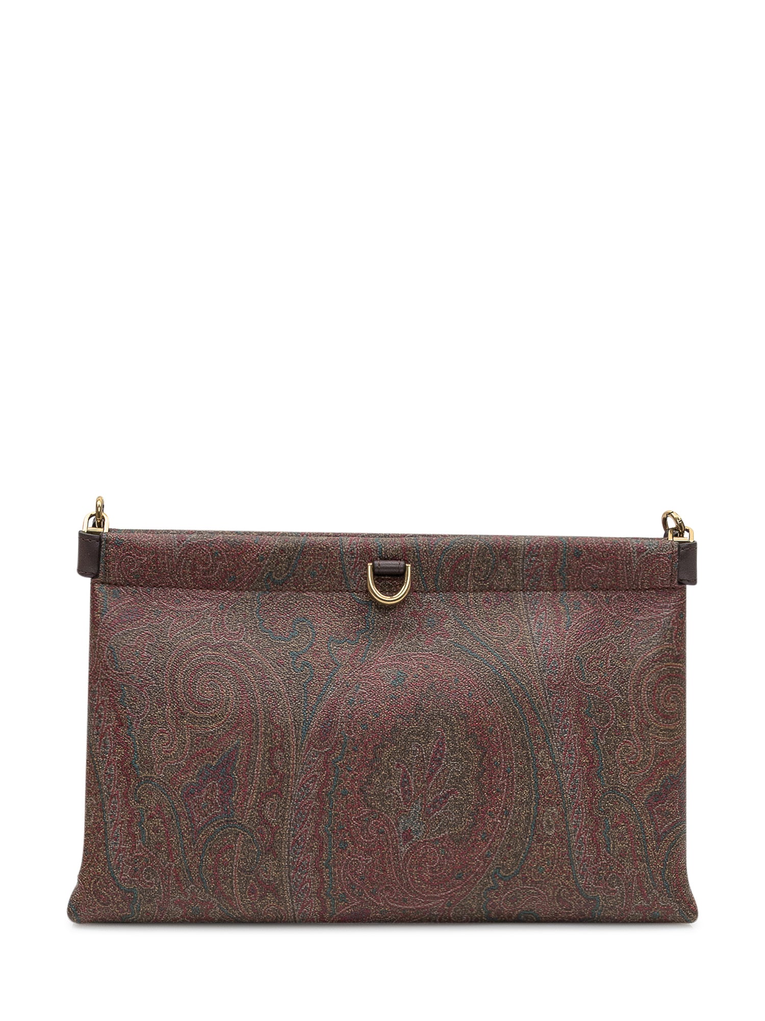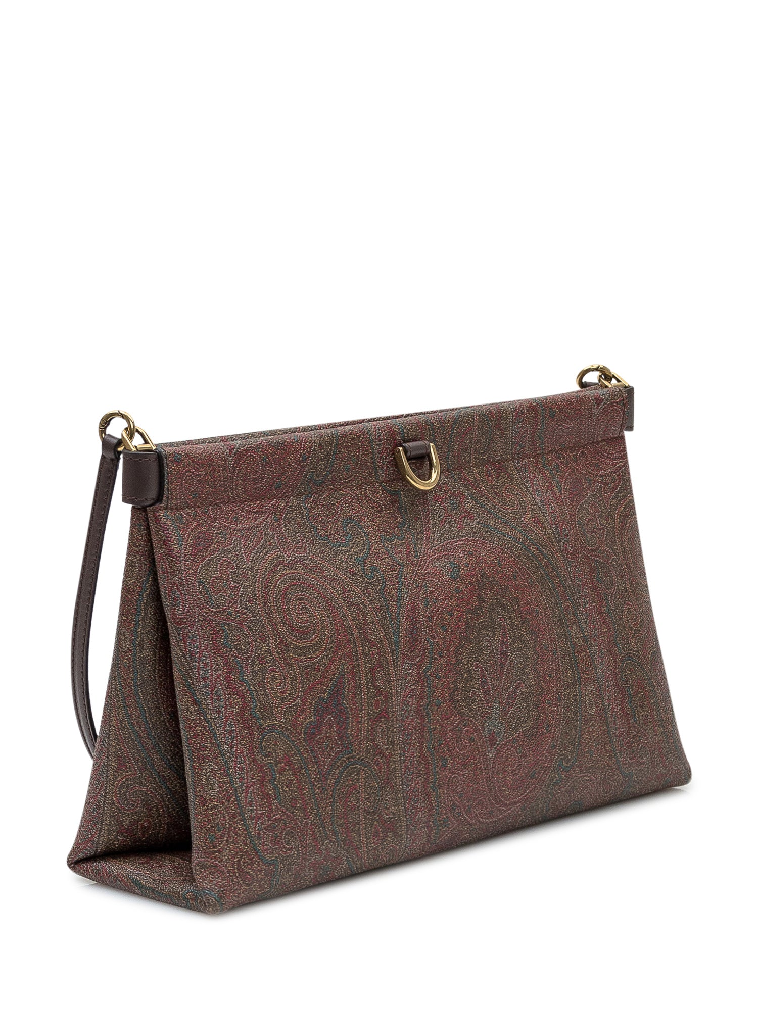 Pochette Etro in tessuto con iconico motivo paisley nei toni caldi e dettagli in pelle.