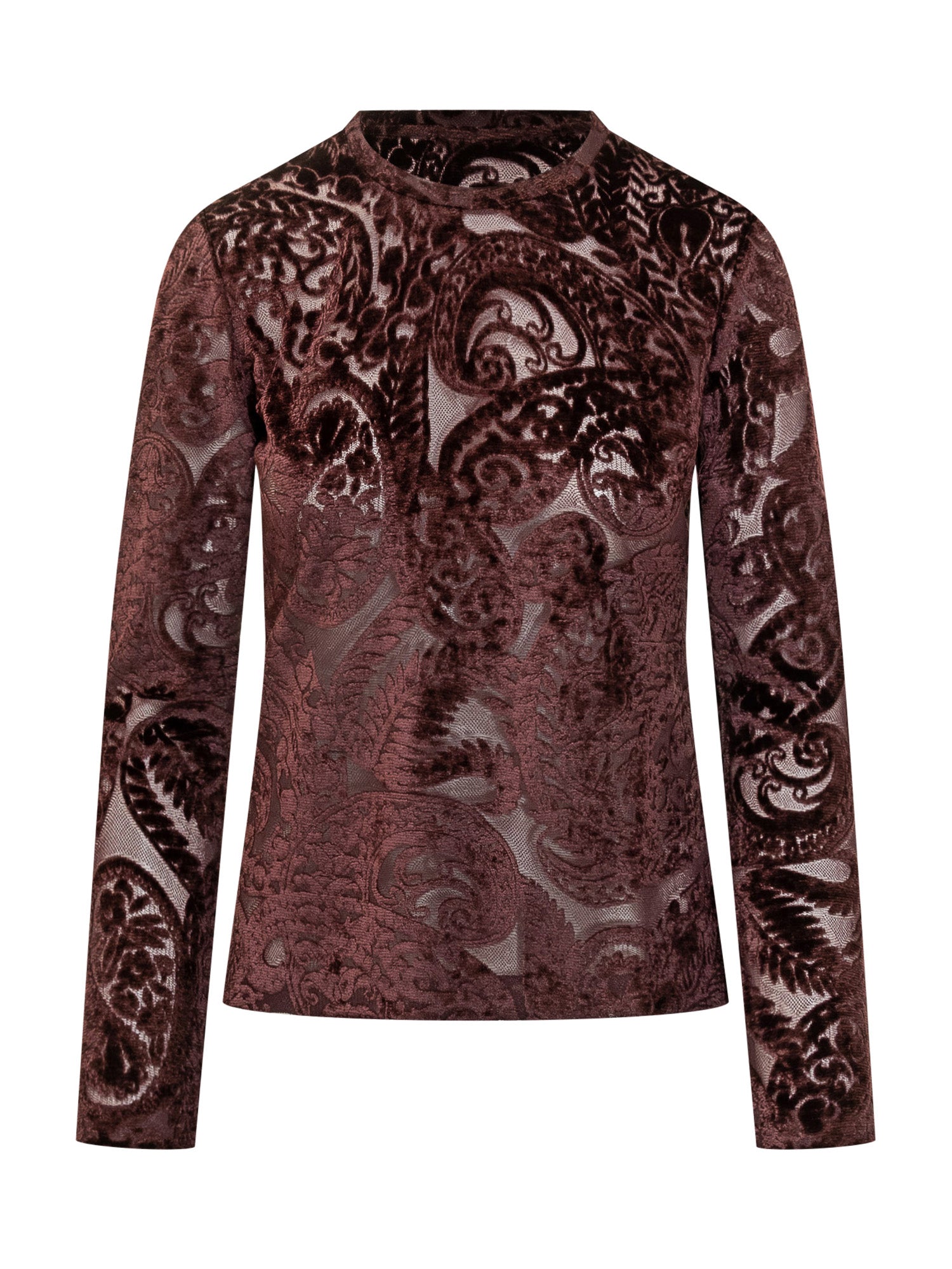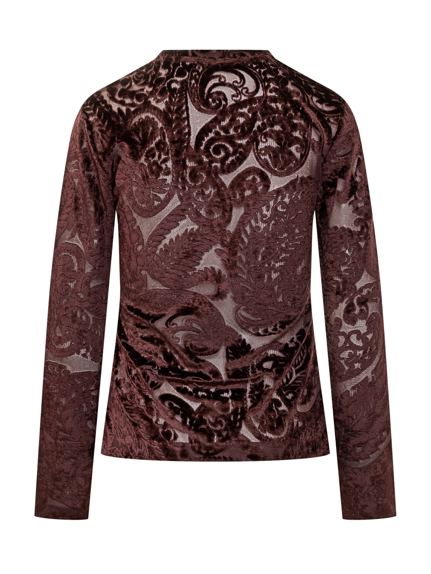 Top Etro in velluto devoré bordeaux con iconico motivo paisley.