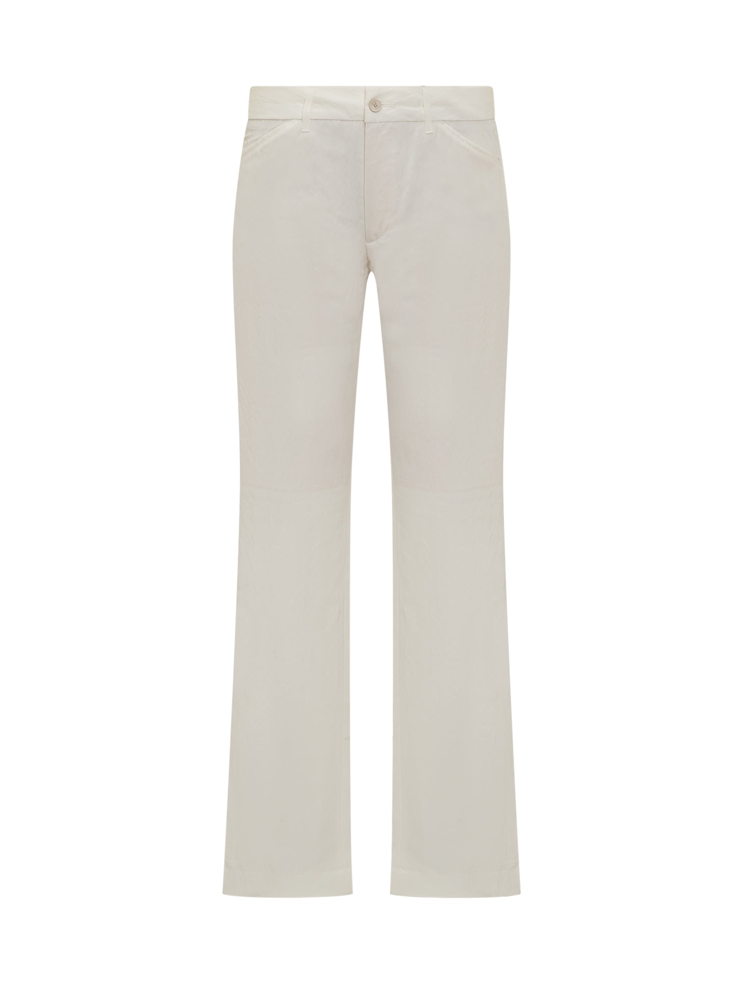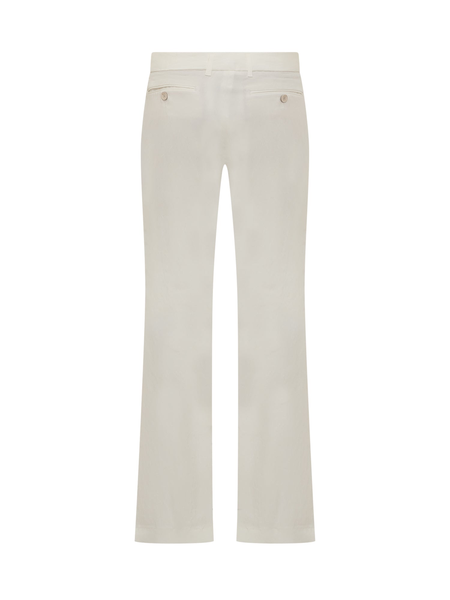 Pantaloni lunghi. Vestibilità morbida. Chiusura con bottone e zip. Quattro tasche. Passanti per cintura.