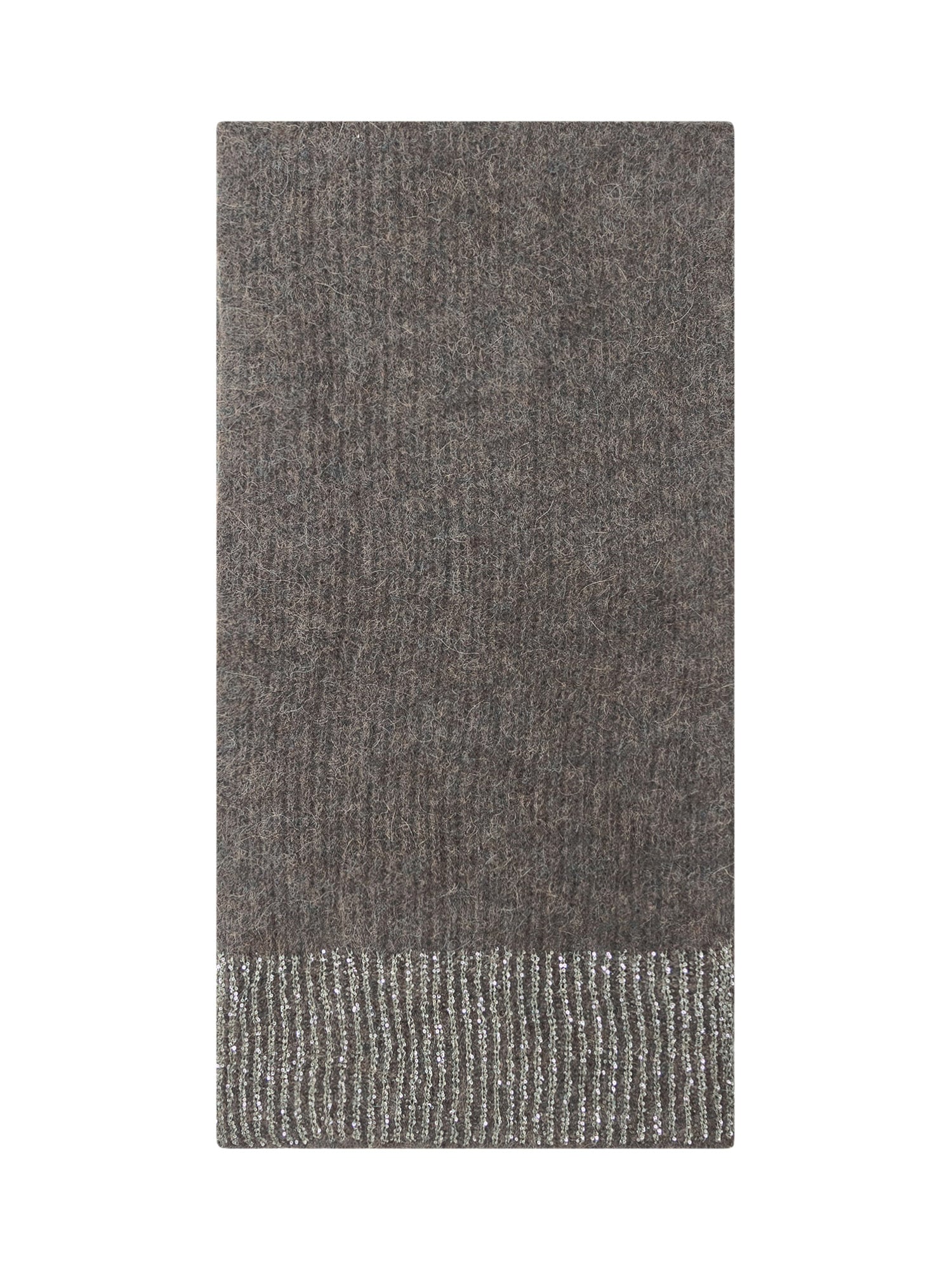 Sciarpa Exterior in morbida lana marrone, rifinita con bordo in lurex argento per un tocco raffinato e luminoso.