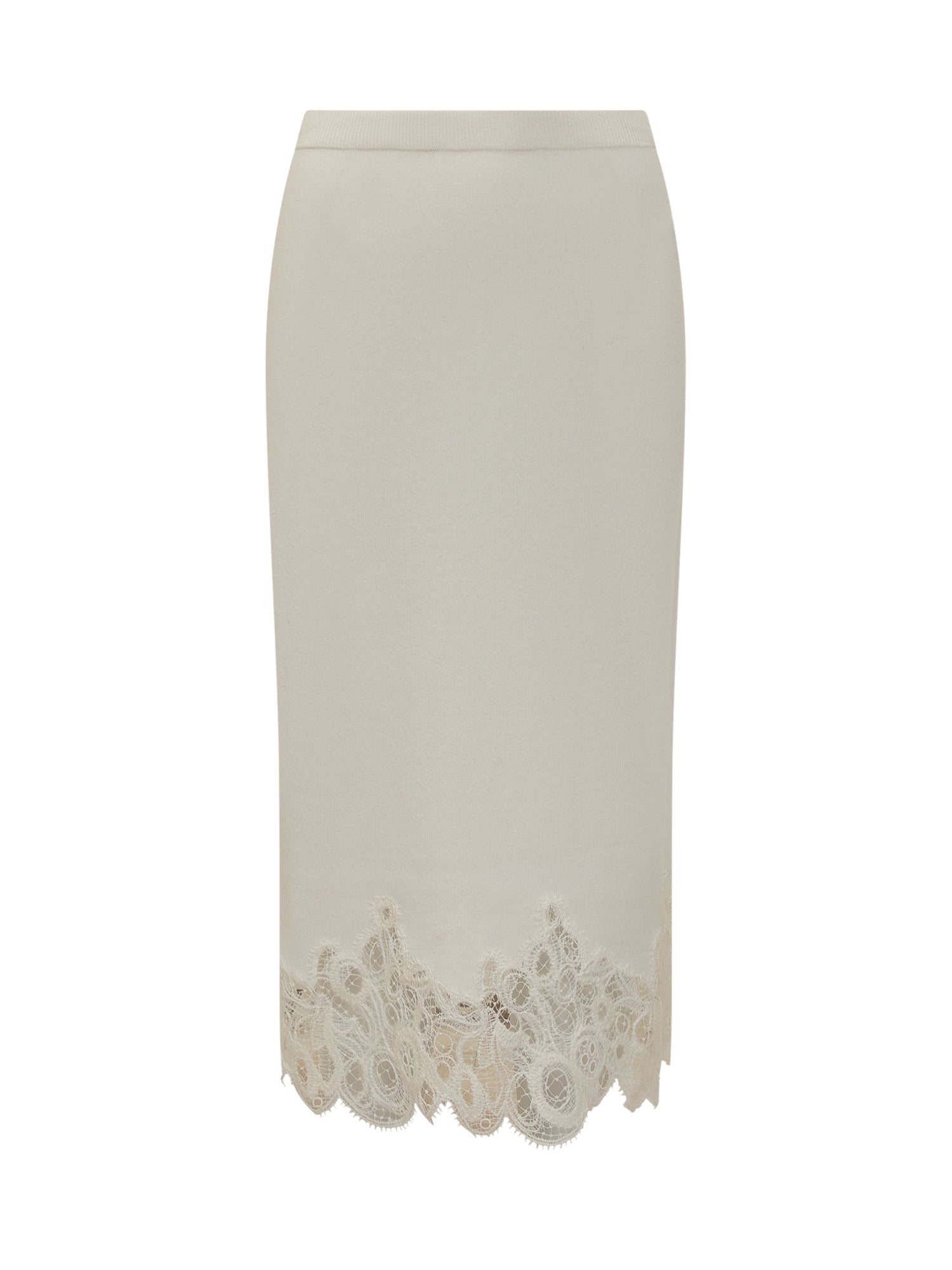 Gonna Fabiana Filippi in maglia avorio con raffinato orlo in pizzo.