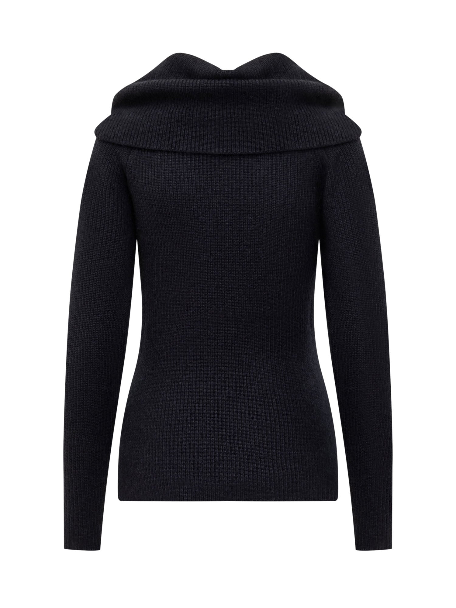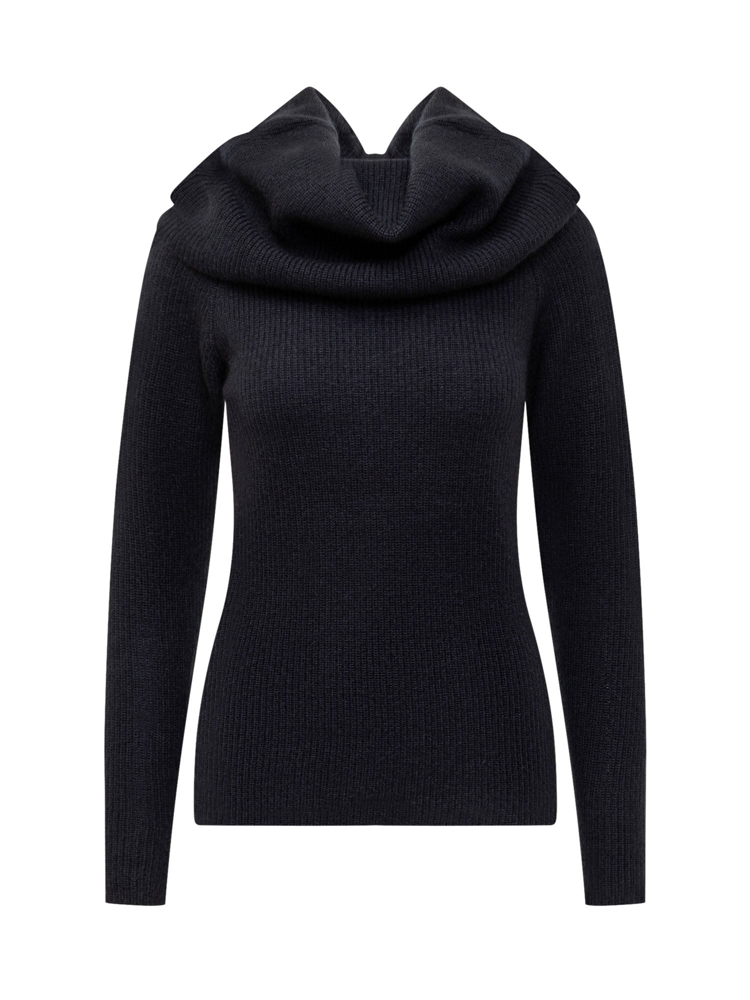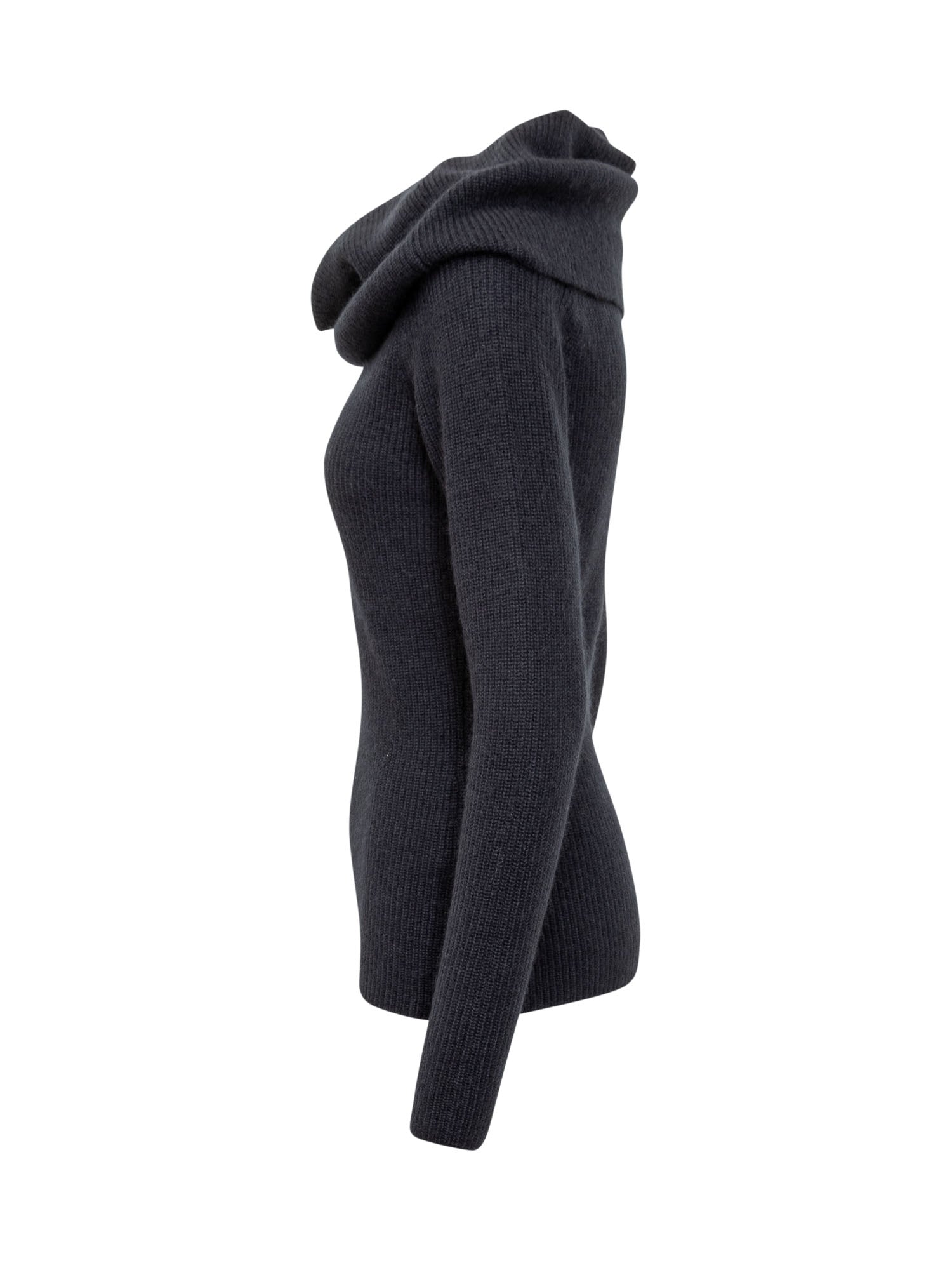 Maglia a maniche lunghe in misto filati seta. Collo alto e morbido. Orli a costine. Lavorazione in maglia a costine.