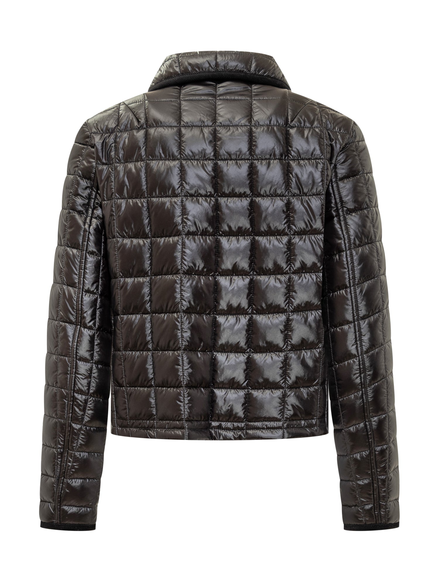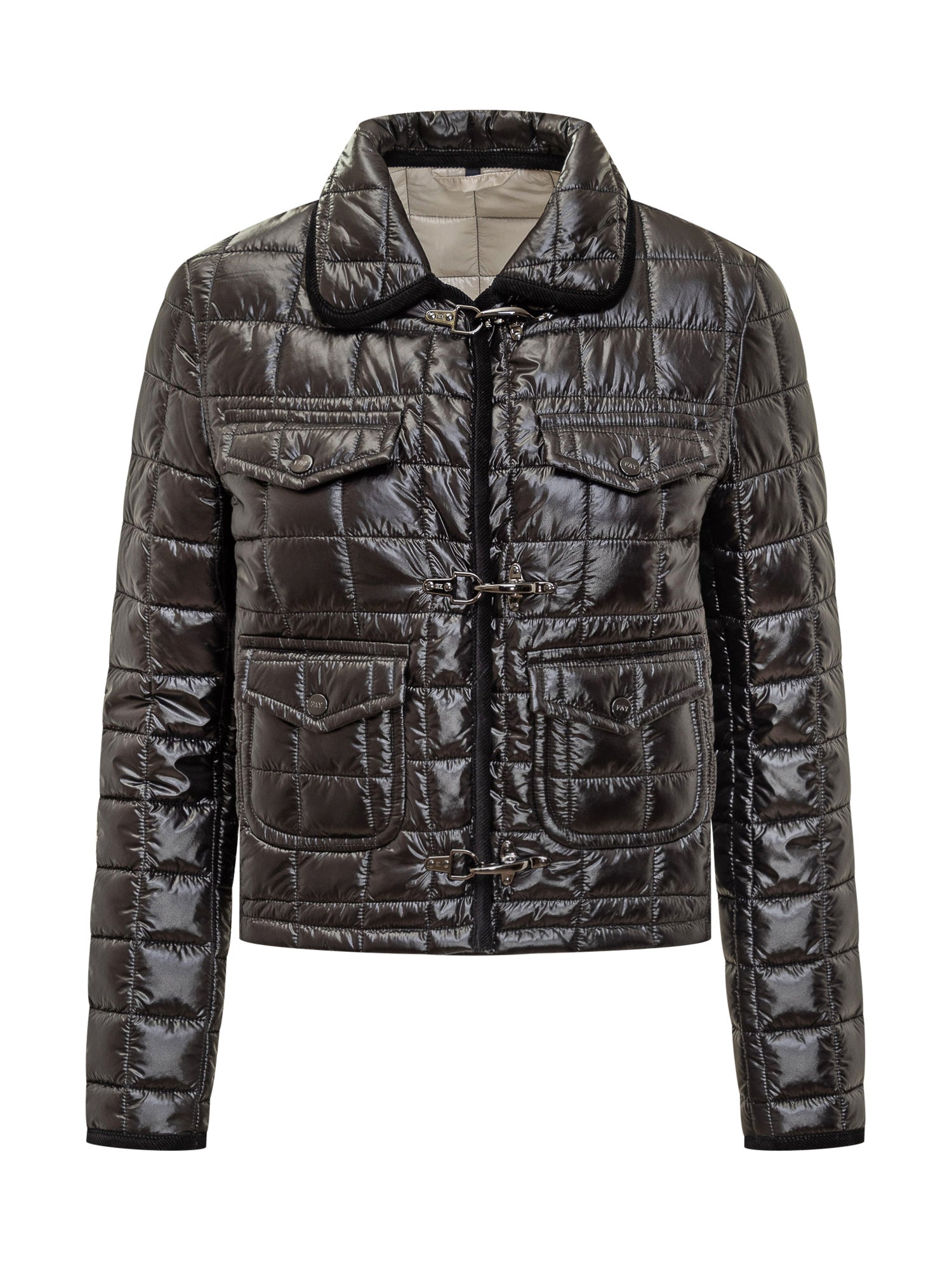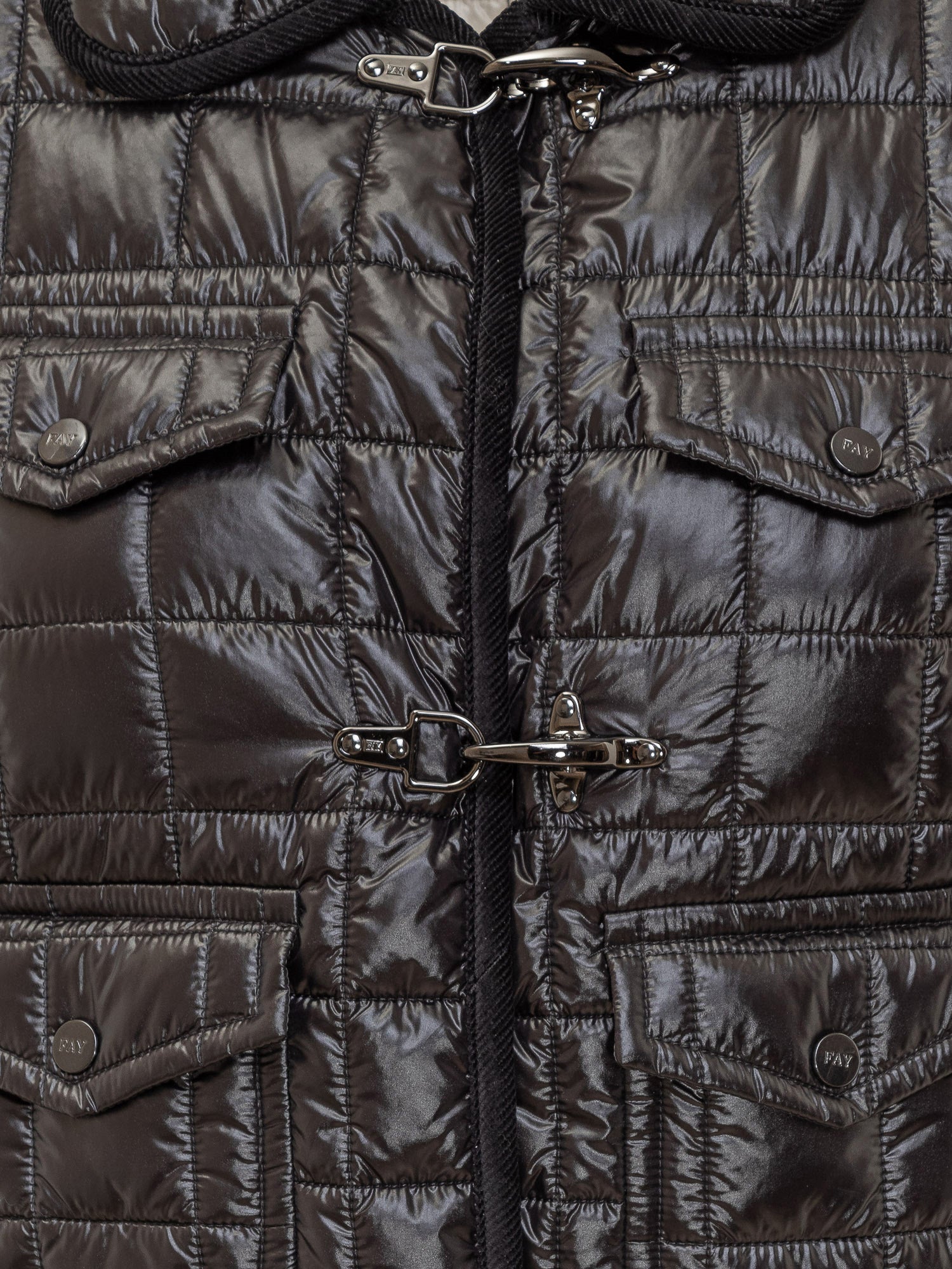 Giacca trapuntata Fay in tessuto lucido nero con ganci iconici e quattro tasche frontali.