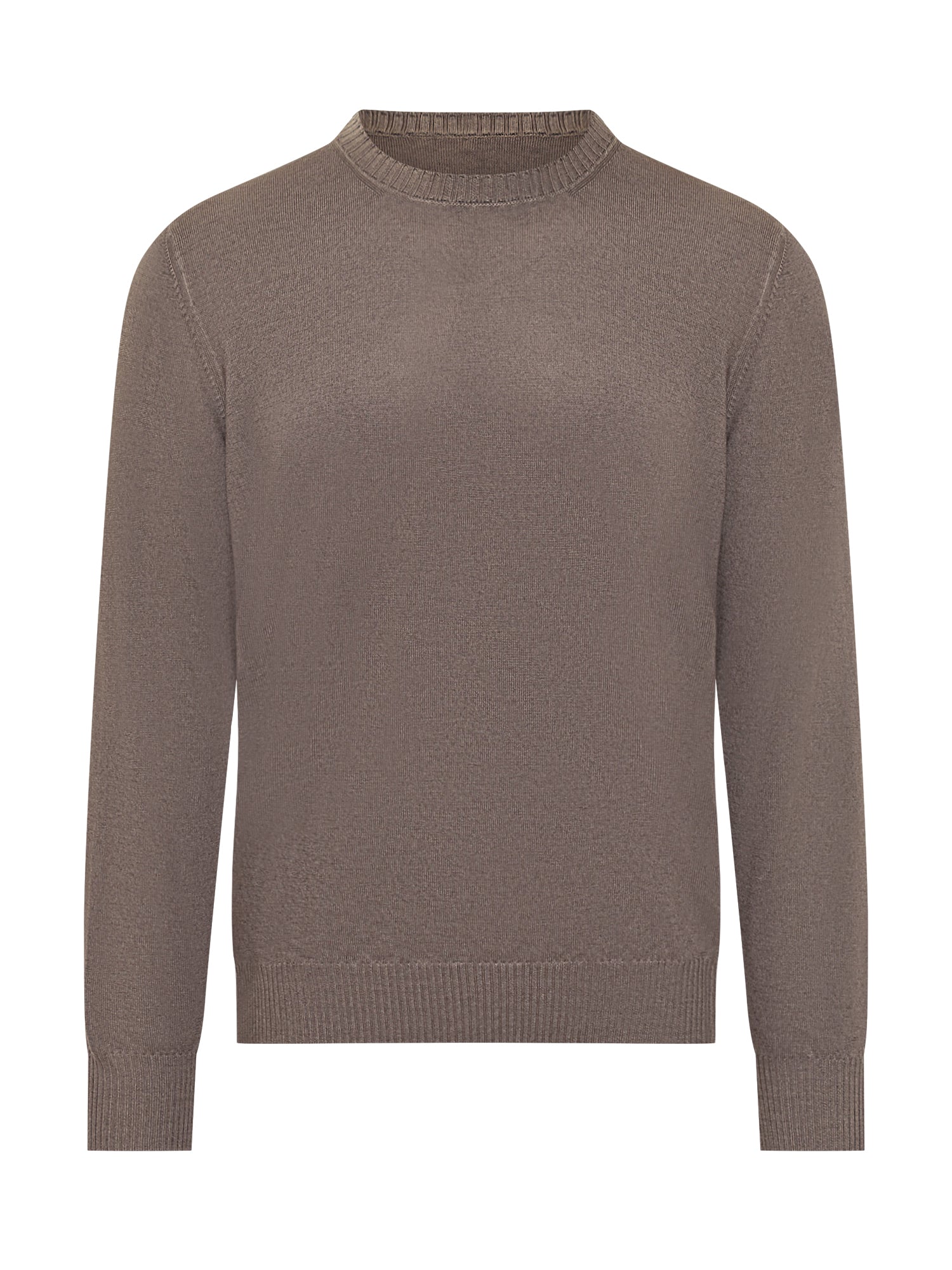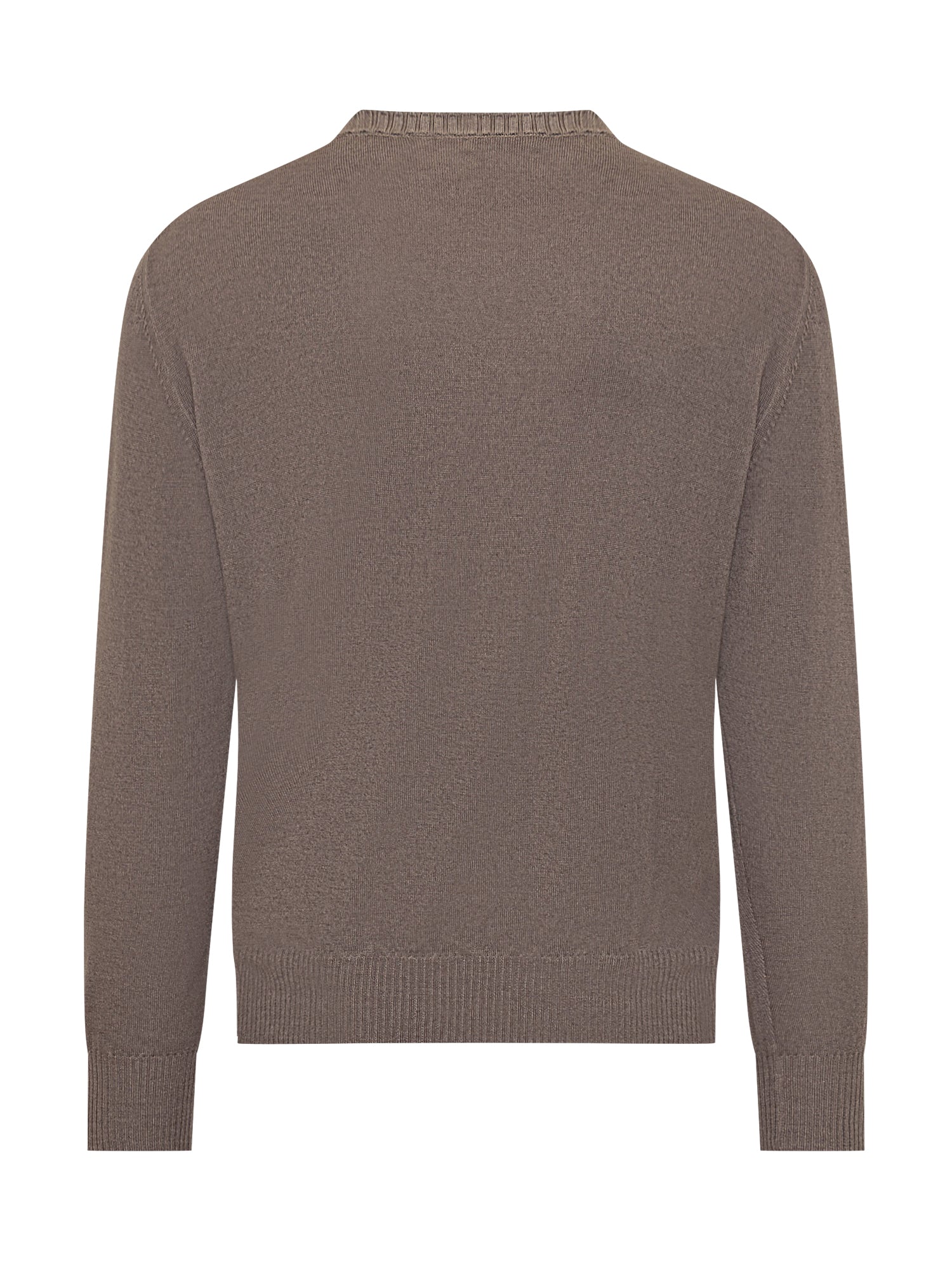 Maglia girocollo Fay in lana e cashmere color marrone talpa. Realizzata con lavorazione rasata e rifinita con bordi a costine su collo, polsi e fondo.