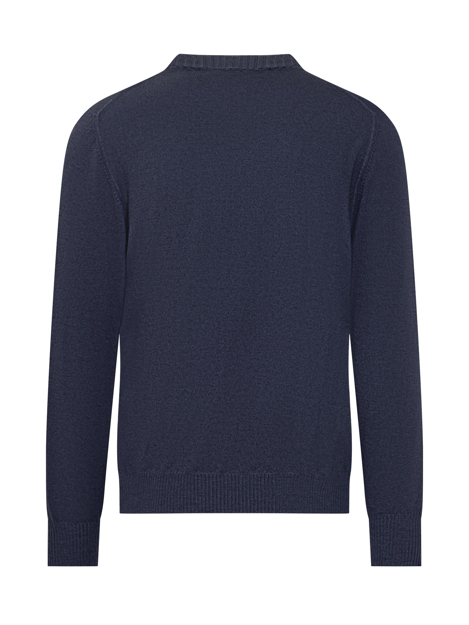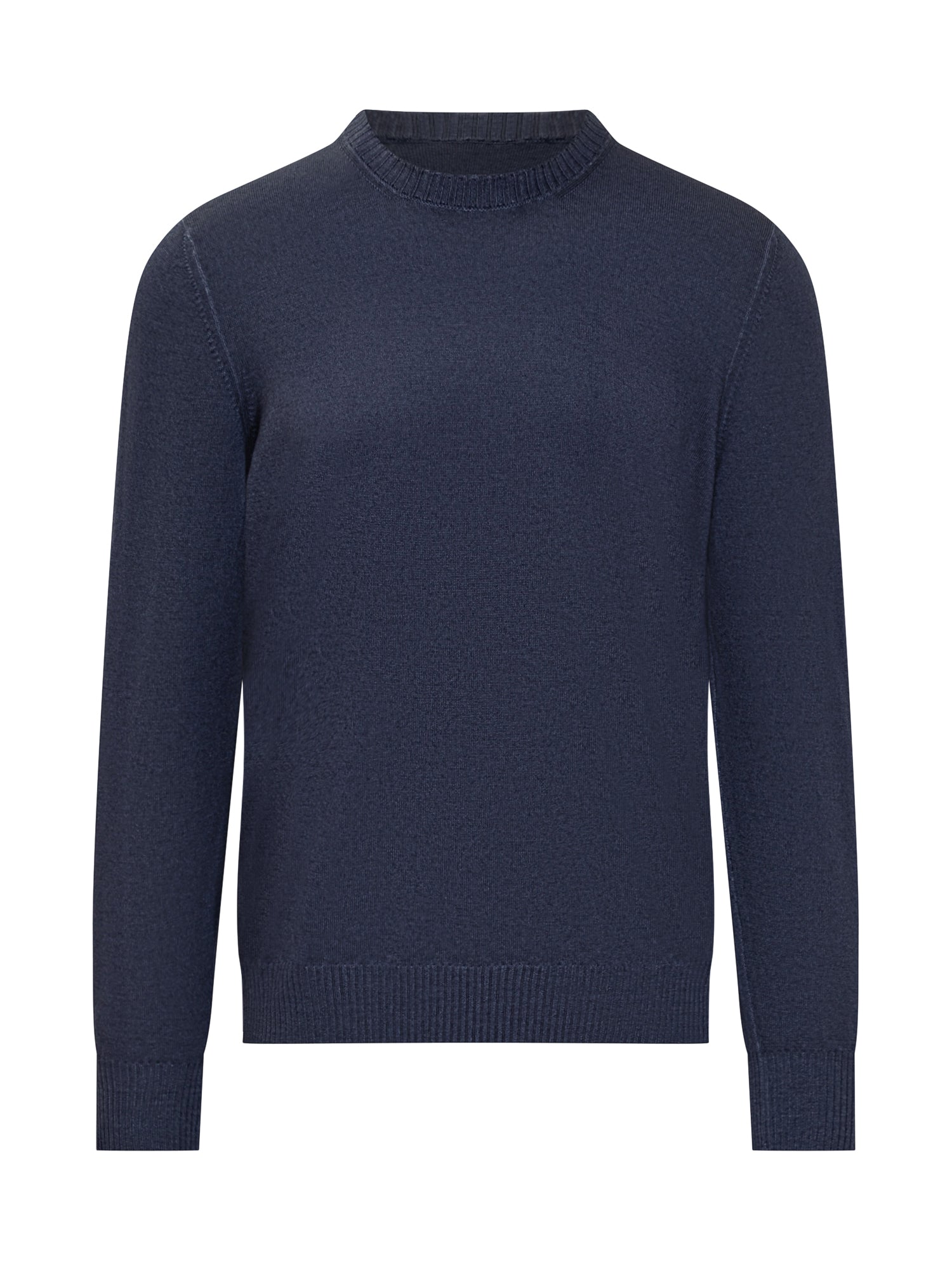 Maglia girocollo Fay in lana e cashmere blu navy. Caratterizzata da una lavorazione rasata e finiture a costine su collo, polsi e fondo.