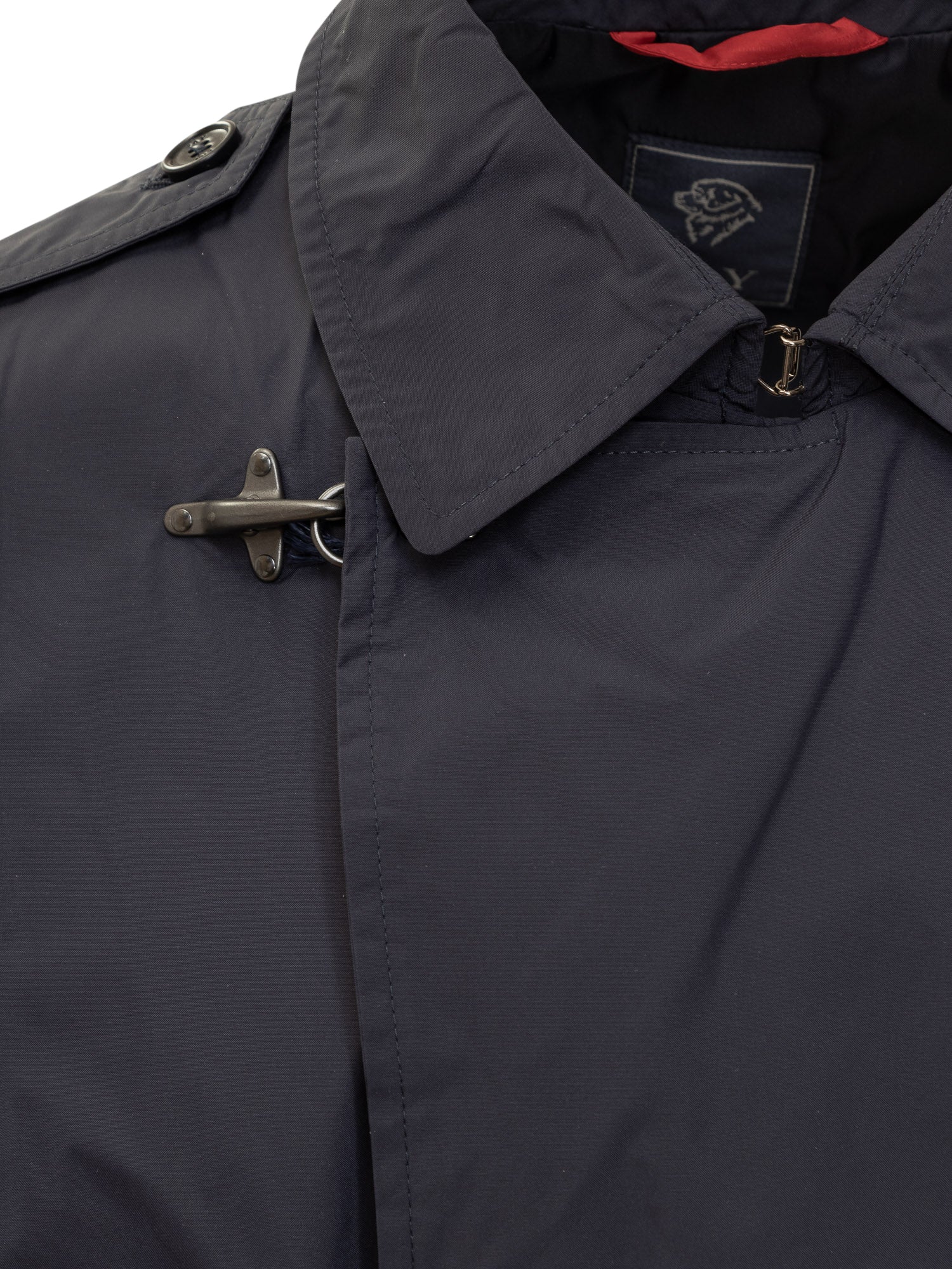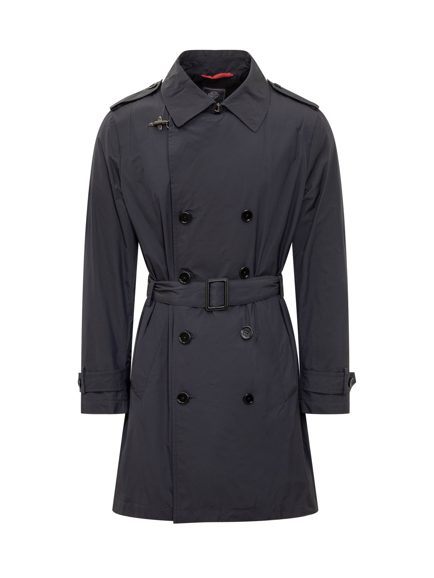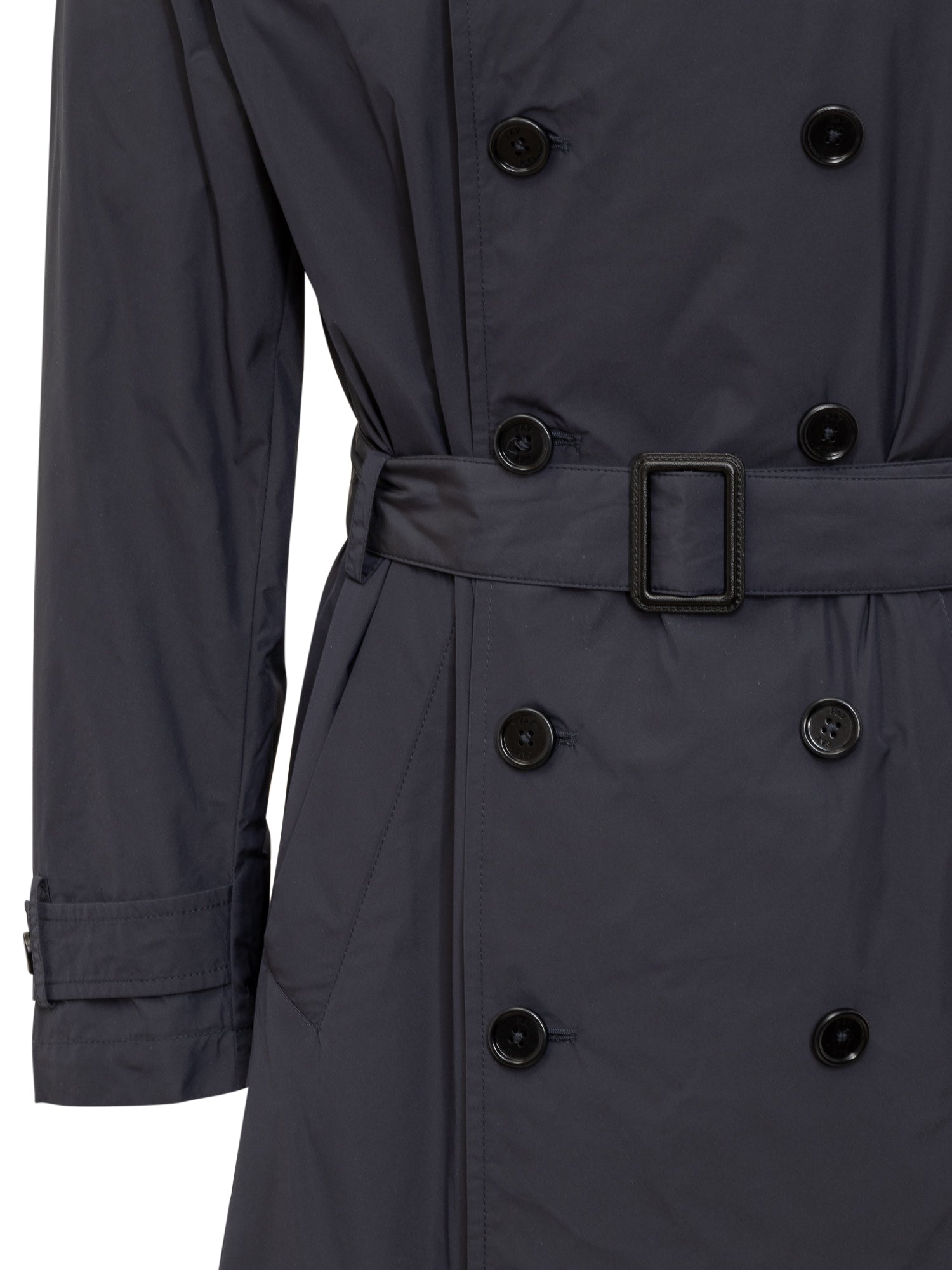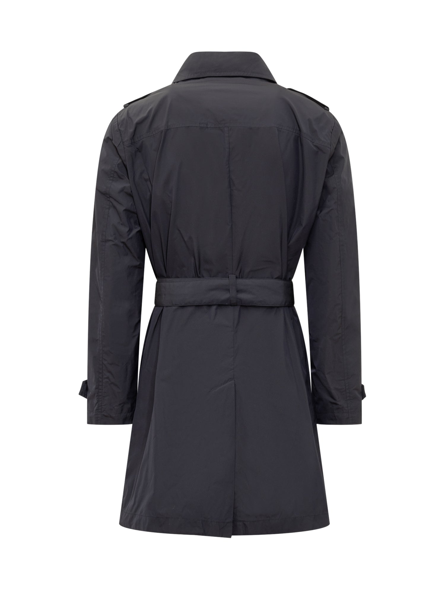 Trench a maniche lunghe. Colletto classico. Chiusura doppiopetto con bottoni. Maxi cintura in vita. Polsi con cinturino. Due tasche sul davanti. Fibbia Gancini sul davanti. Spacco sul retro.