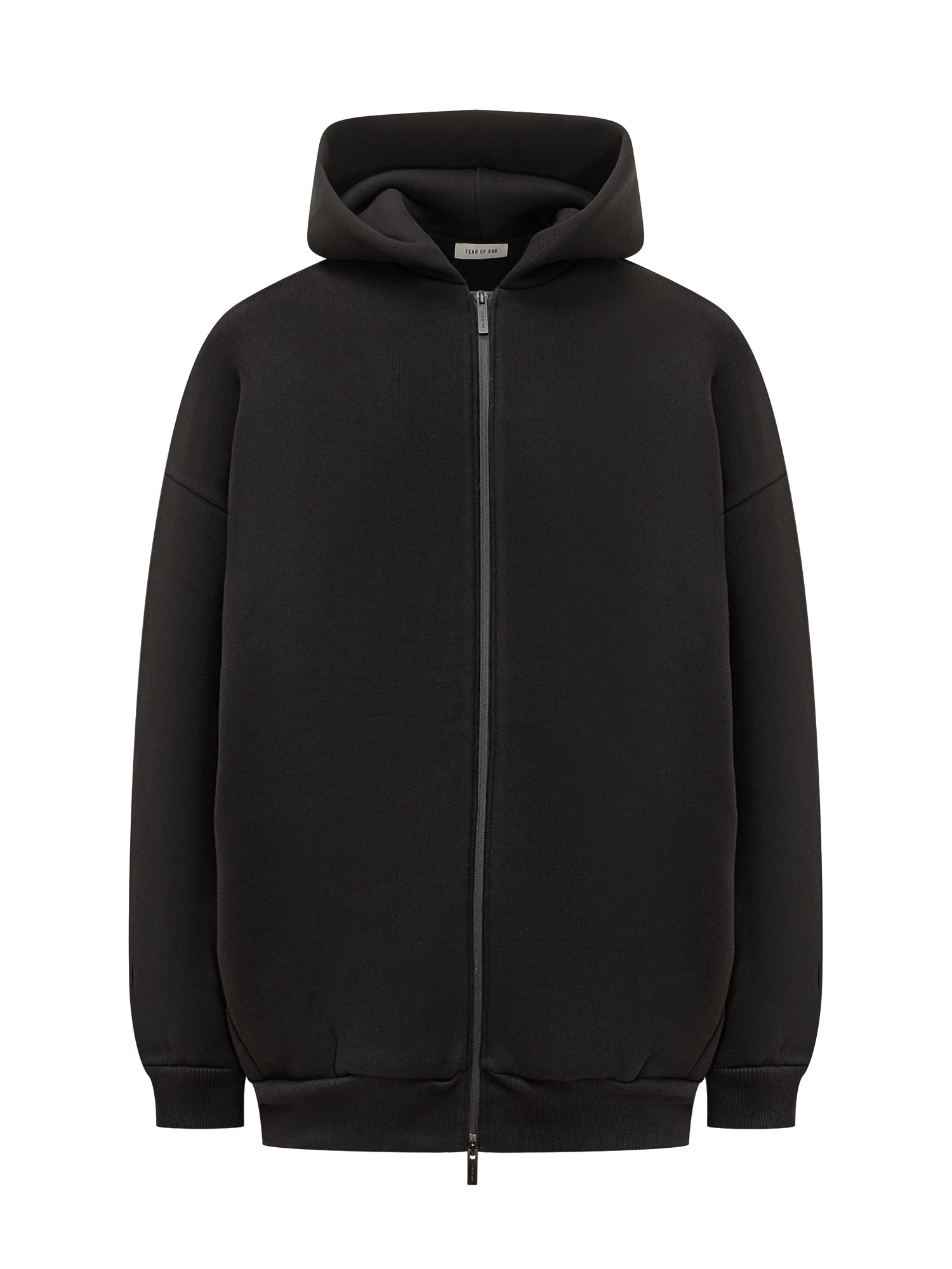 Felpa Fear of God in cotone nero con cappuccio e chiusura full zip.