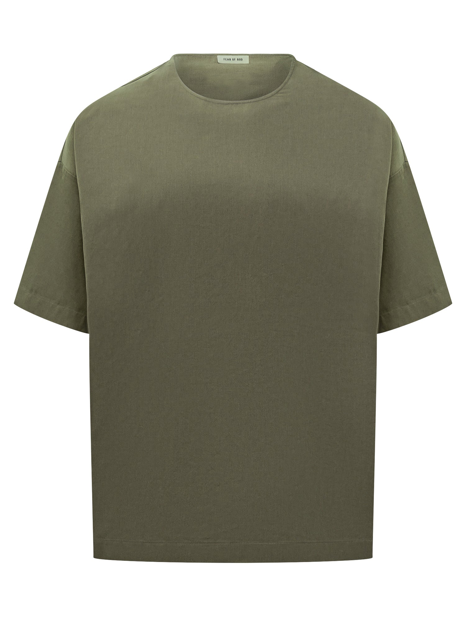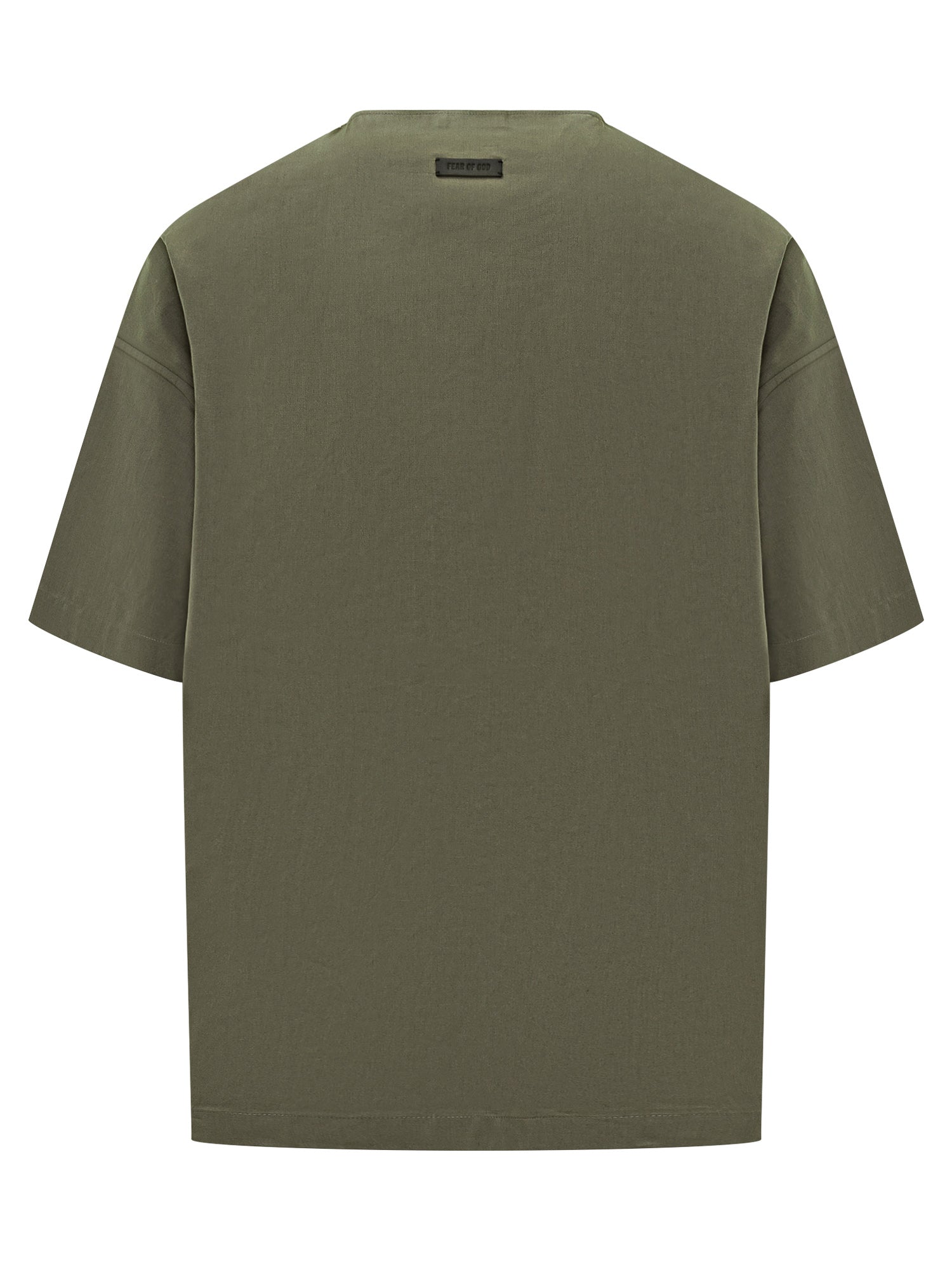 T-shirt Fear of God Woven in cotone verde oliva, dal design essenziale con vestibilità oversize e texture morbida.