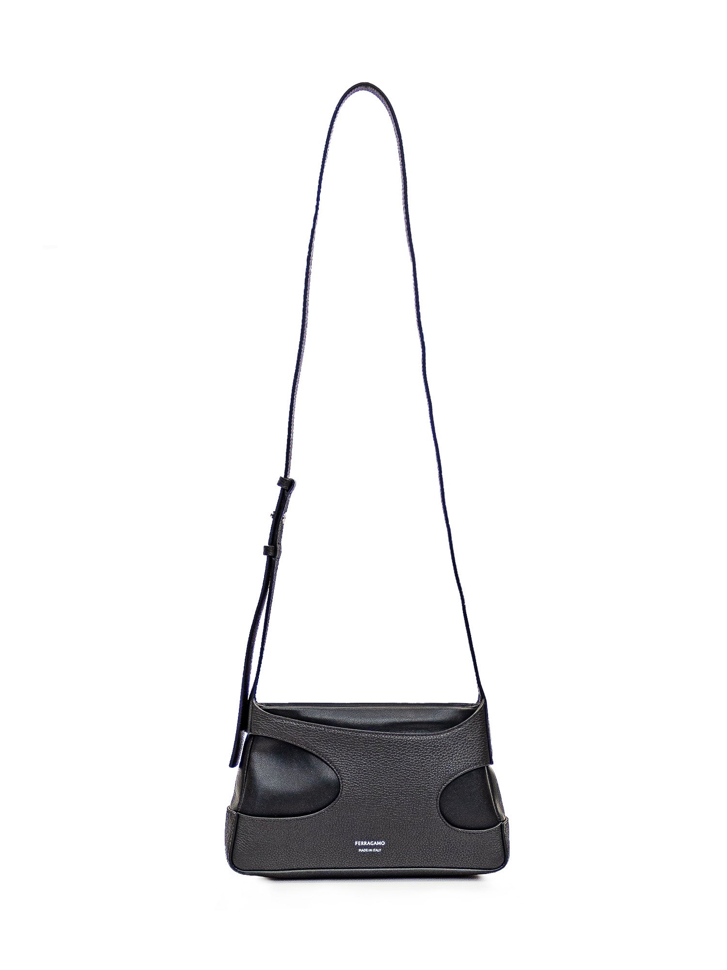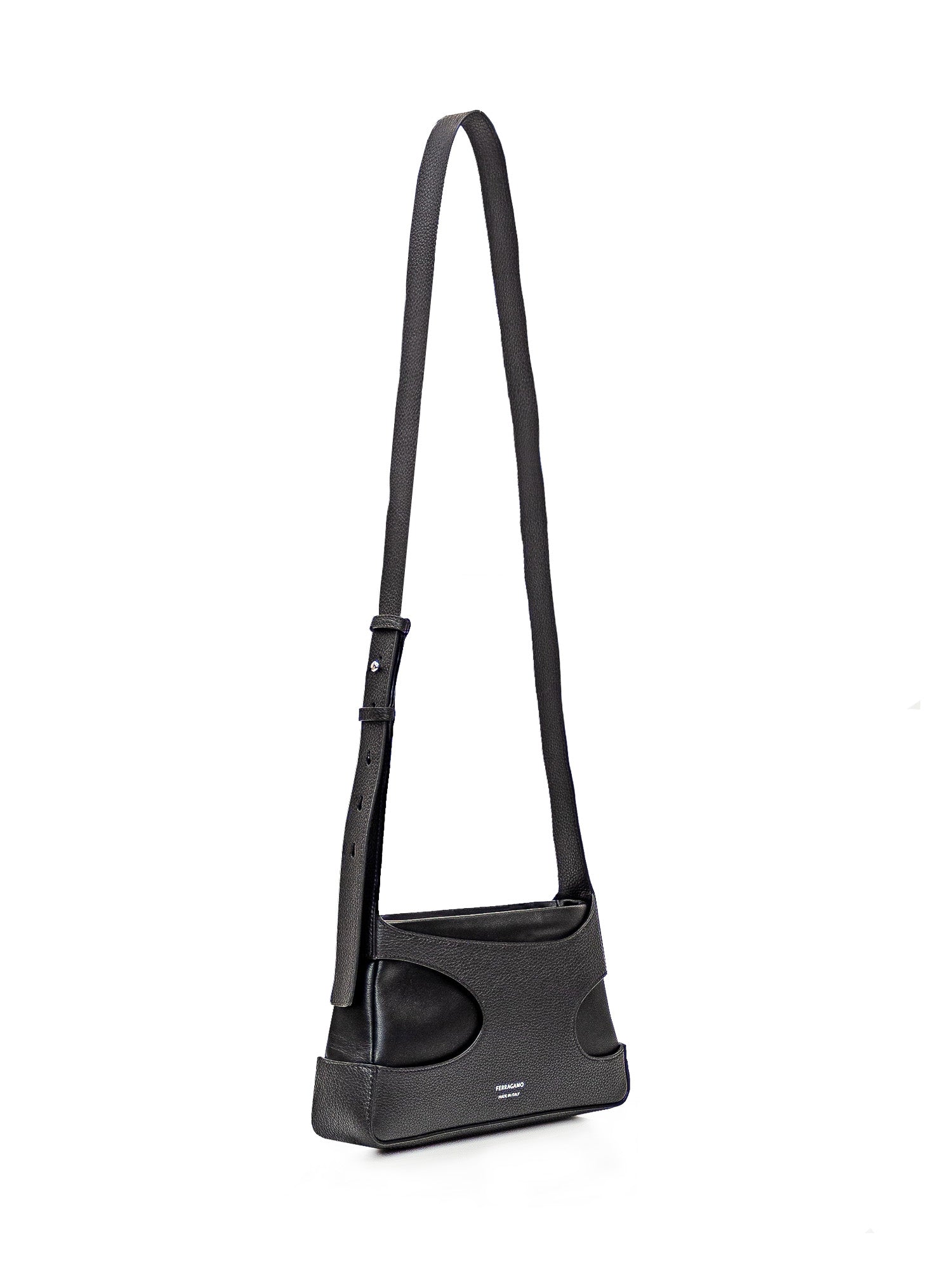 Borsa nera in pelle con effetto cut out. Tracolla regolabile. Chiusura con zip. Logo sul davanti.