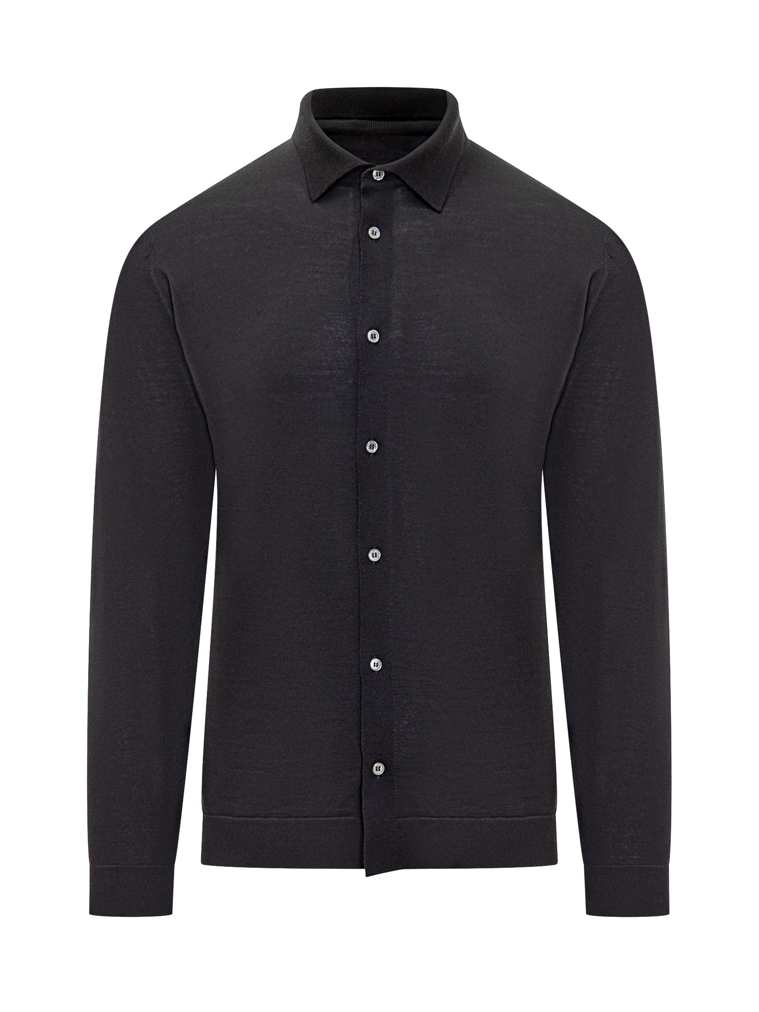 Camicia in maglia Filippo De Laurentiis nera con chiusura a bottoni.