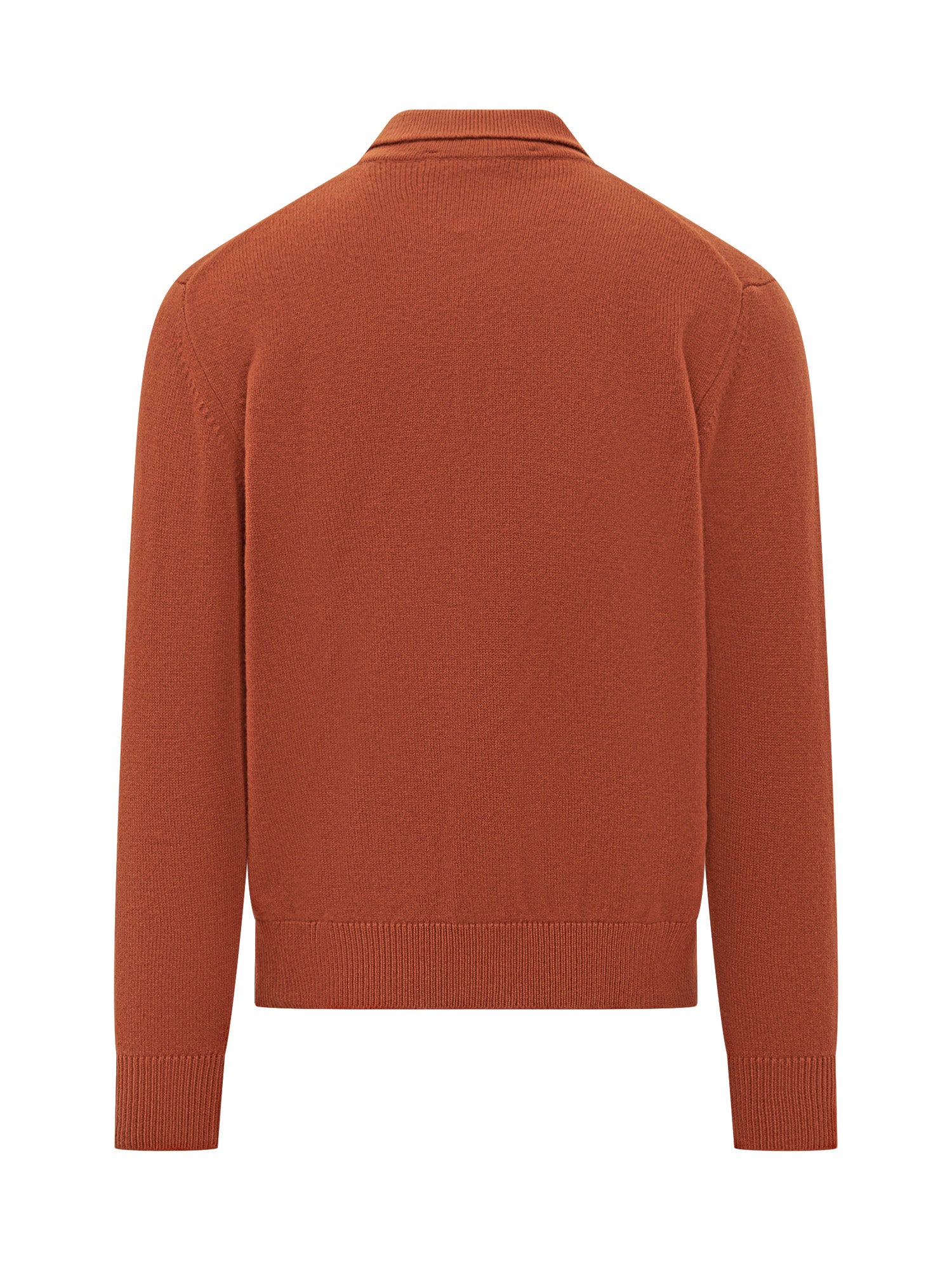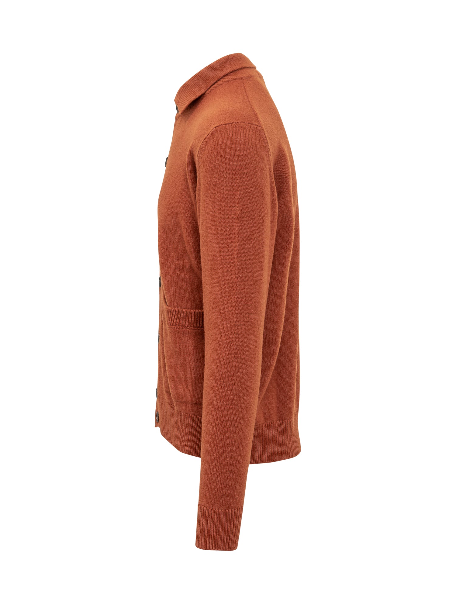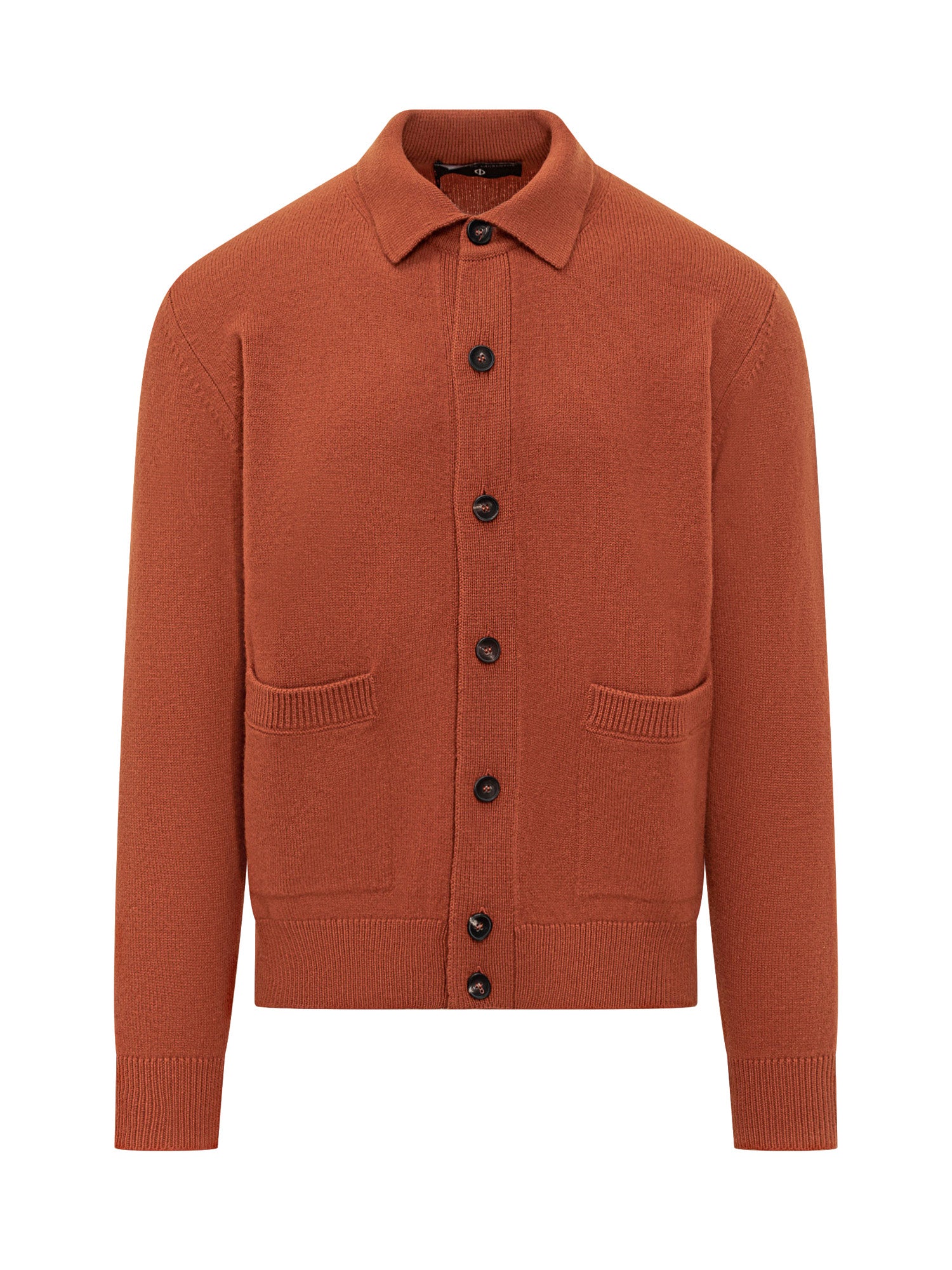 Cardigan Filippo De Laurentiis in lana arancione con chiusura a bottoni e tasche frontali.