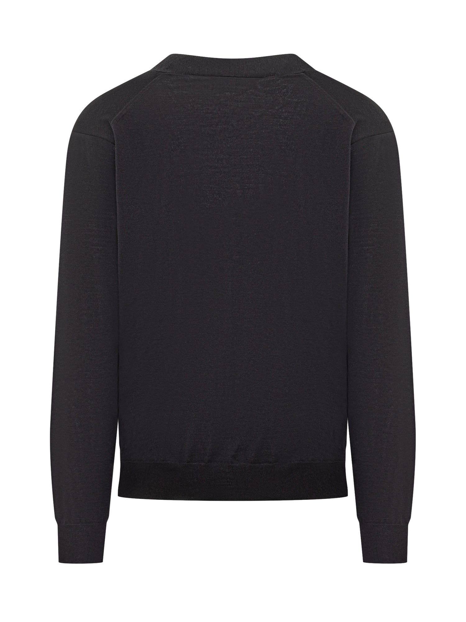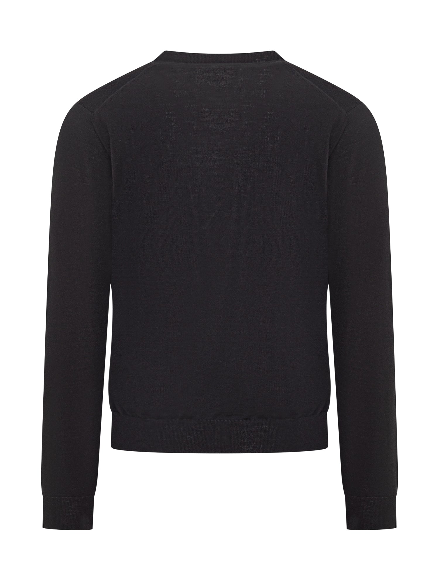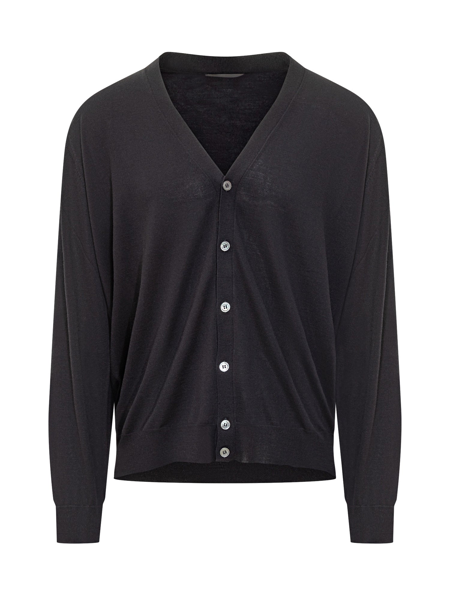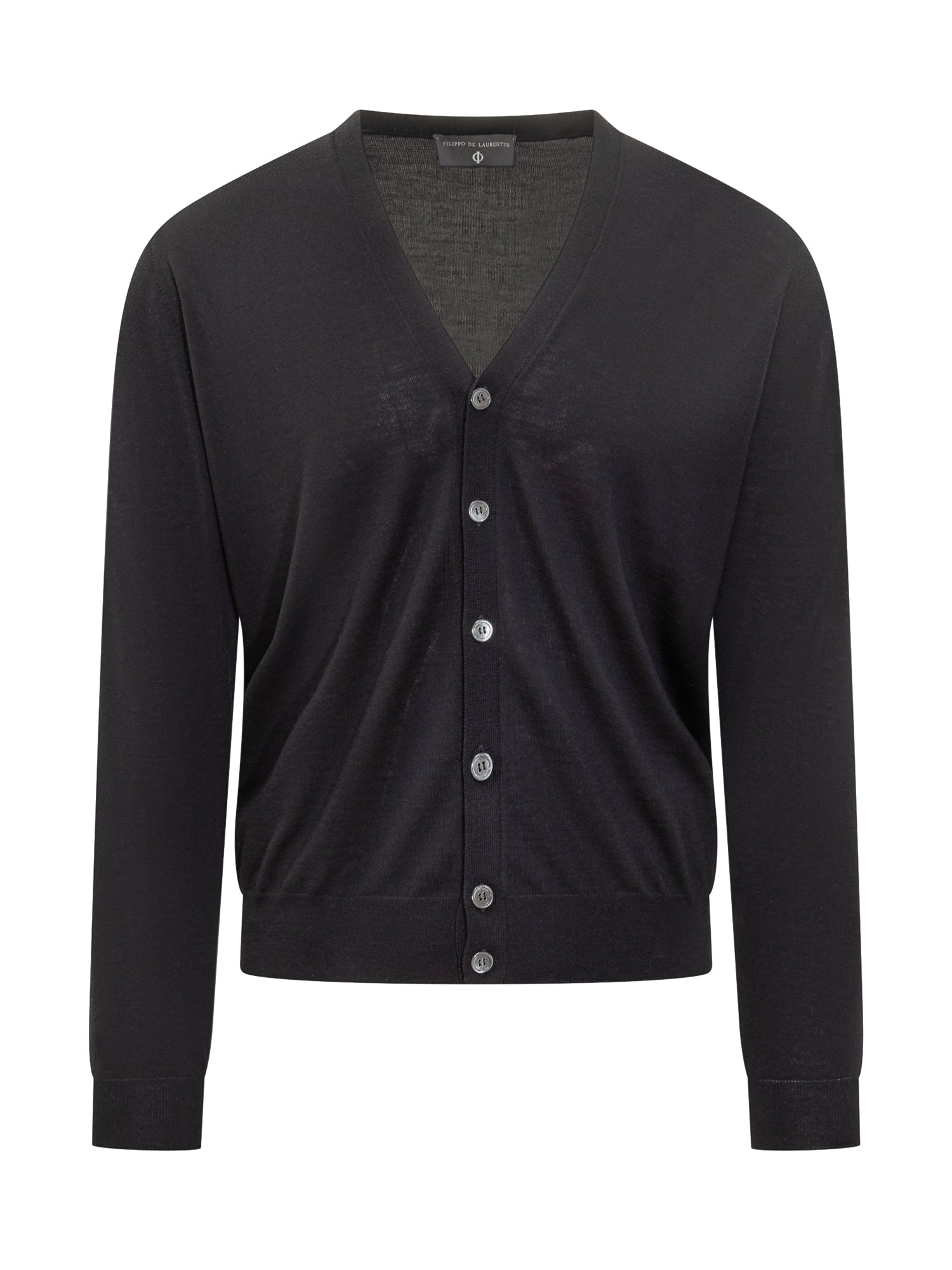 Cardigan Filippo De Laurentiis in morbida lana nera con scollo a V e chiusura a bottoni.