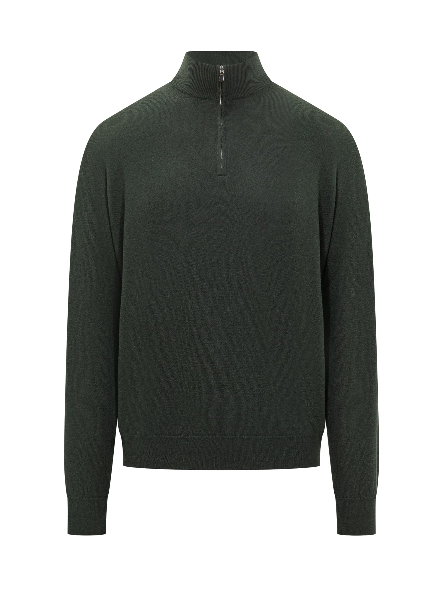 Maglia Filippo De Laurentiis in lana verde con collo alto e mezza zip.