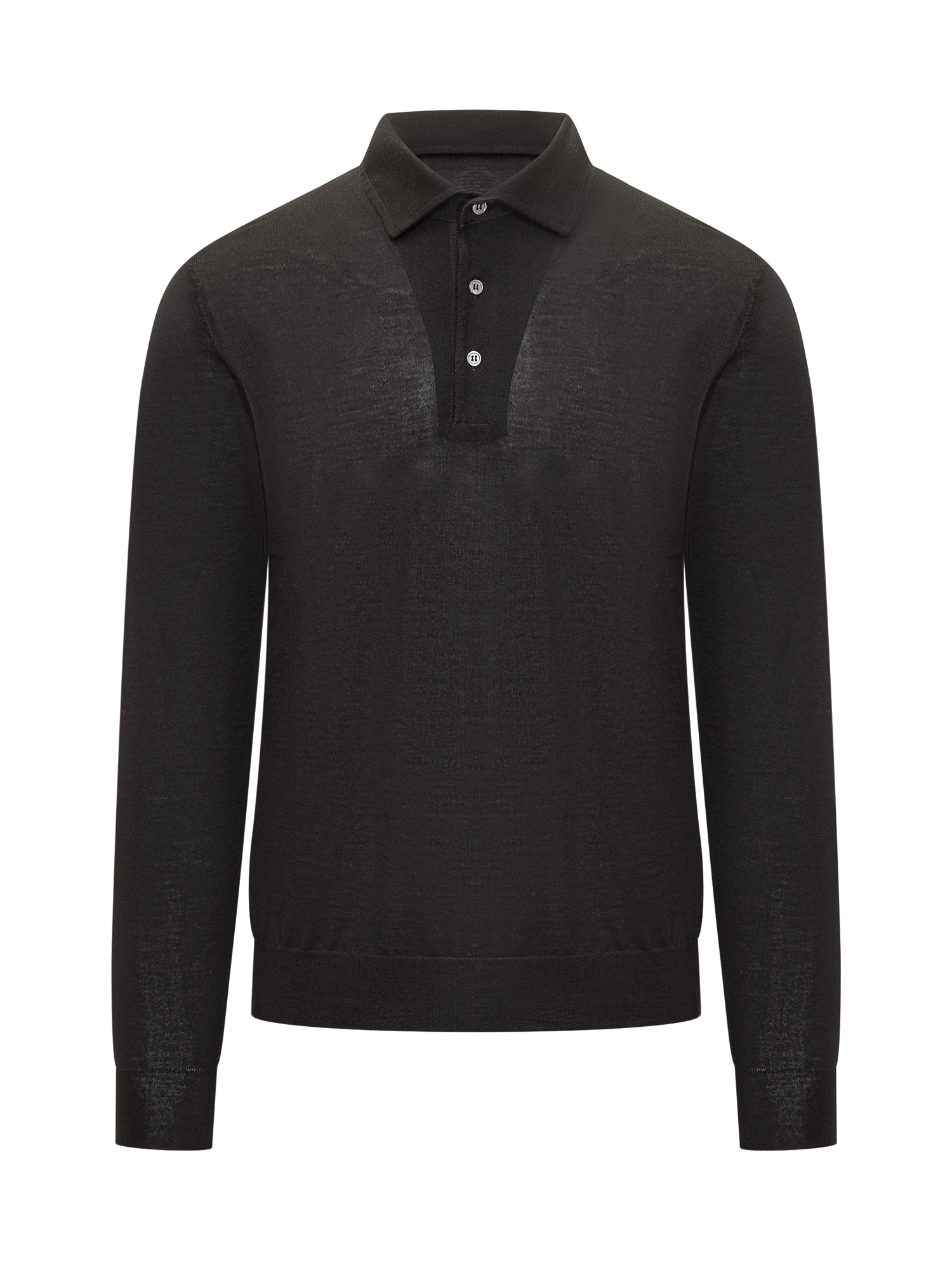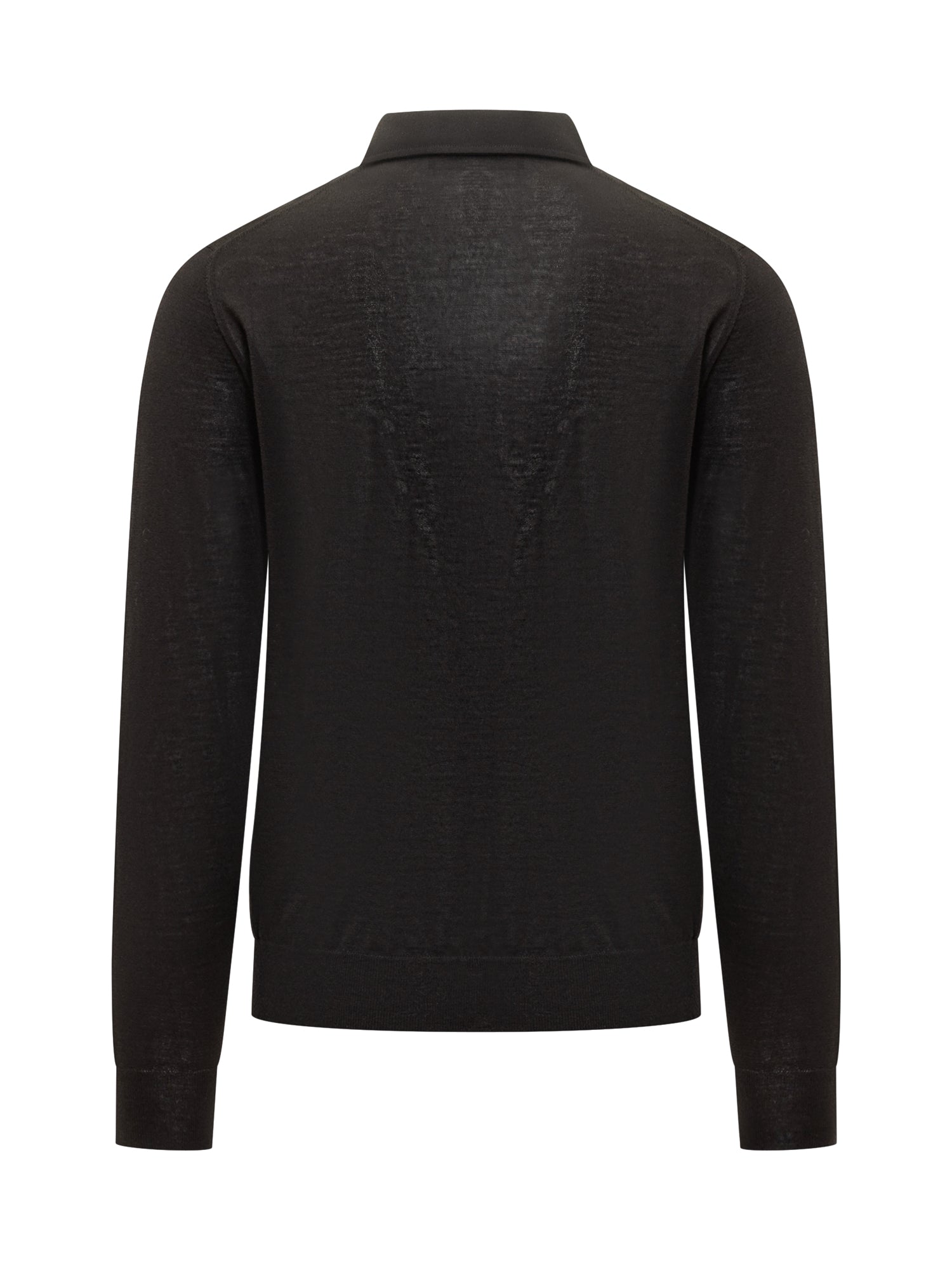 Polo a maniche lunghe Filippo De Laurentiis in lana nera con abbottonatura a tre bottoni.