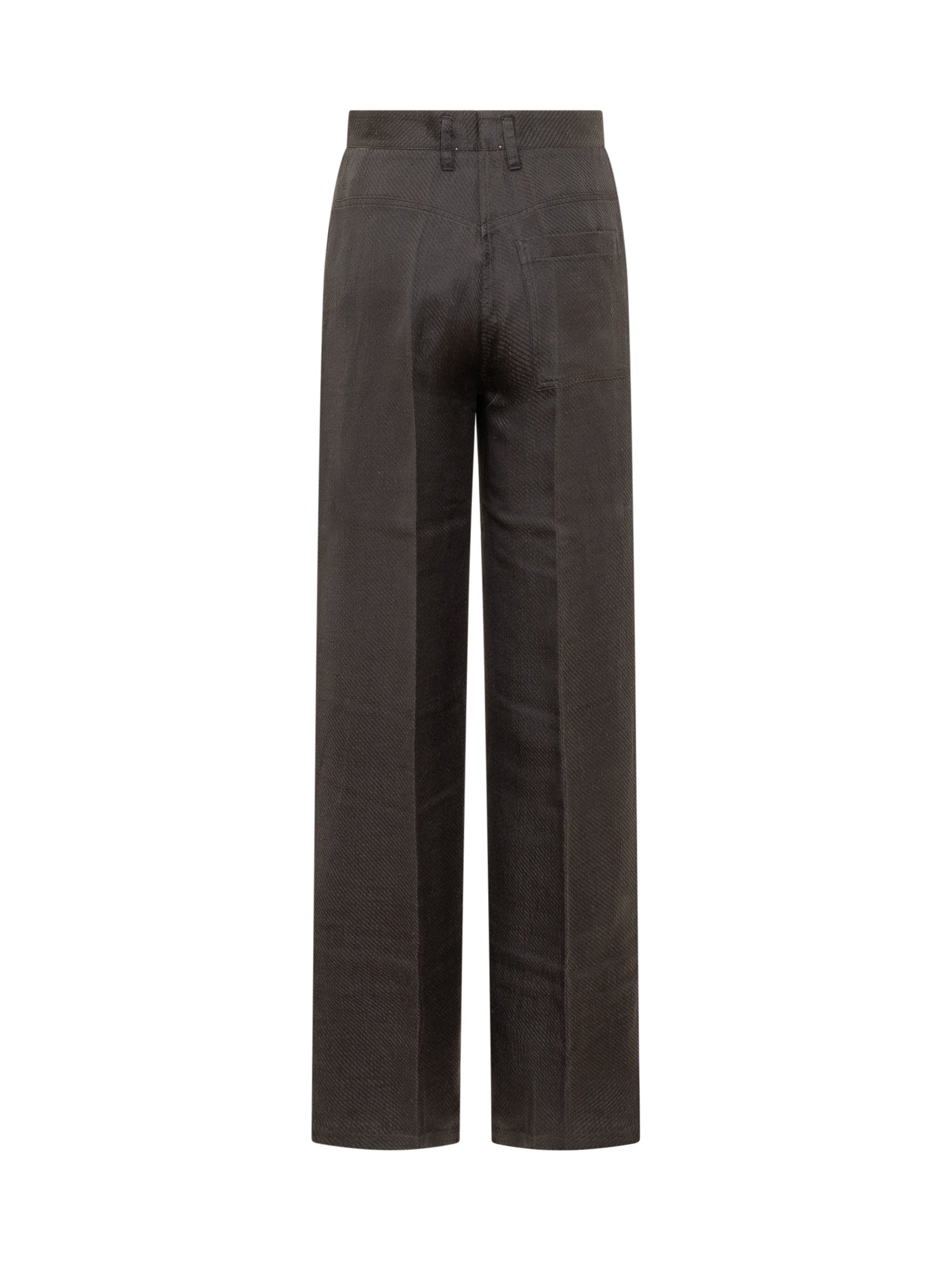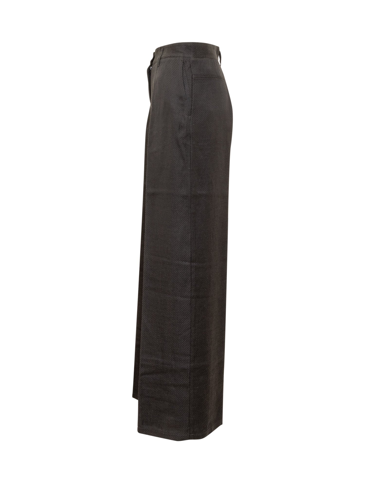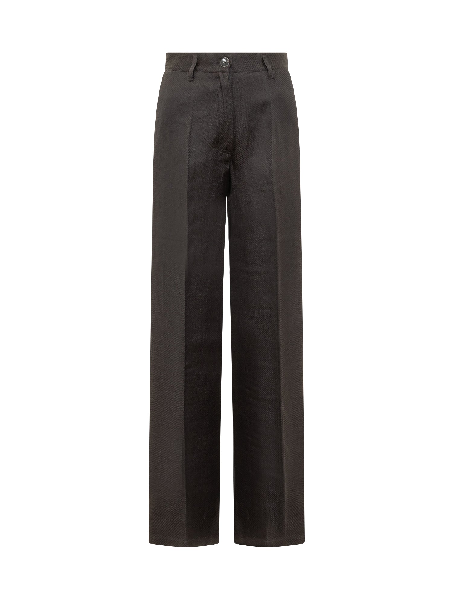 Pantaloni lunghi. Palazzo fit. Chiusura con bottone e zip. Due tasche laterali e due sul retro. Passanti per cintura.