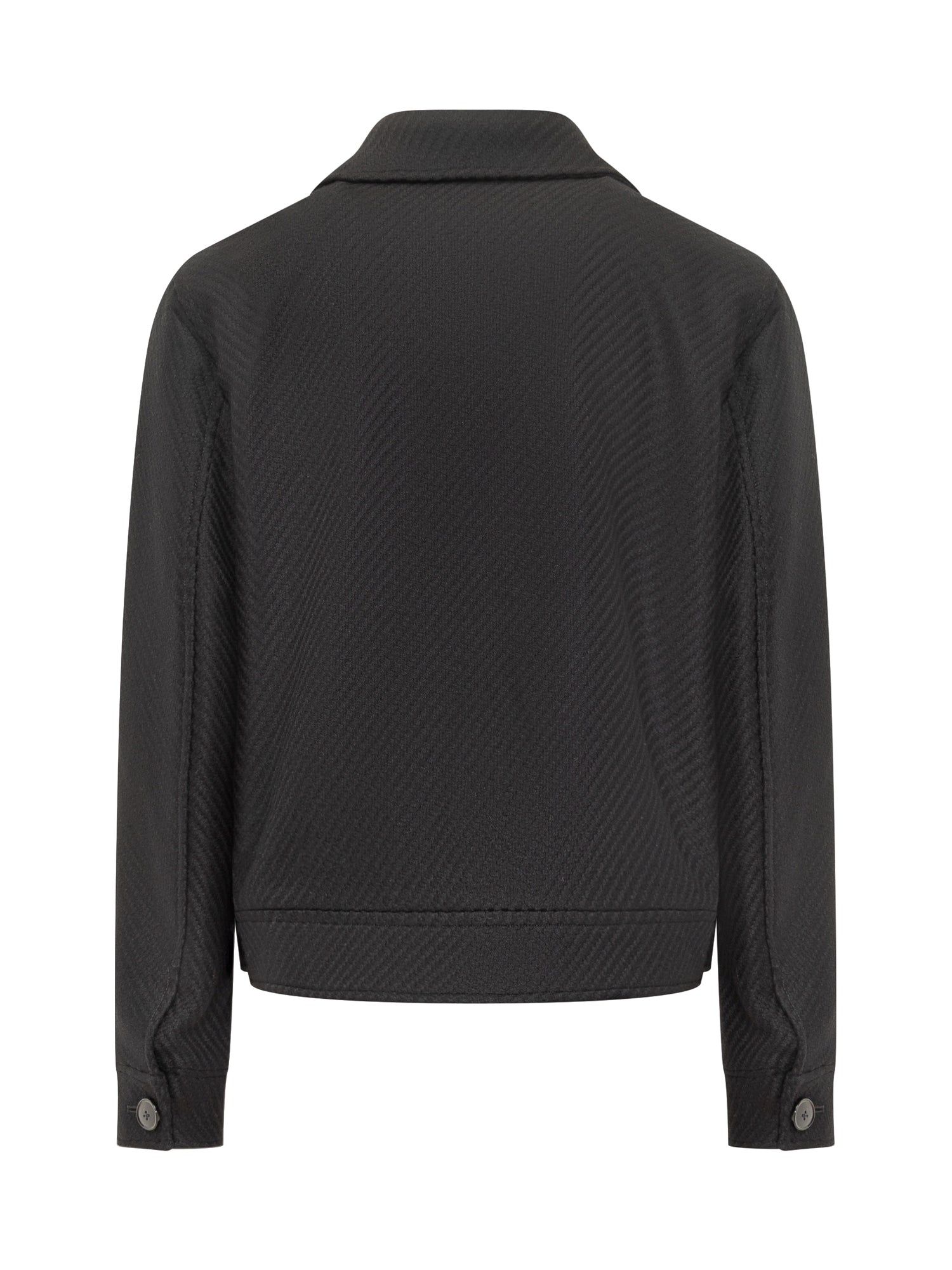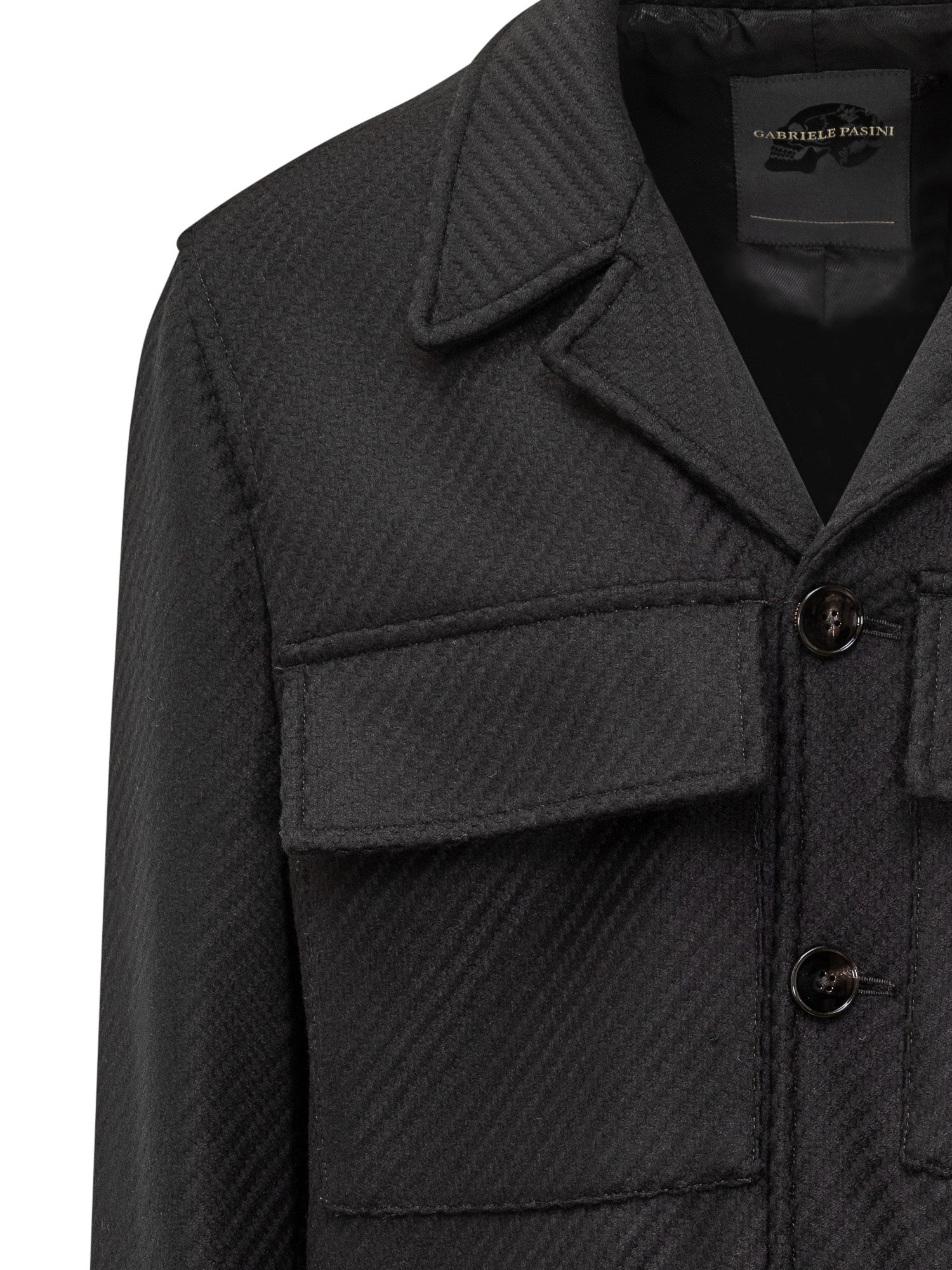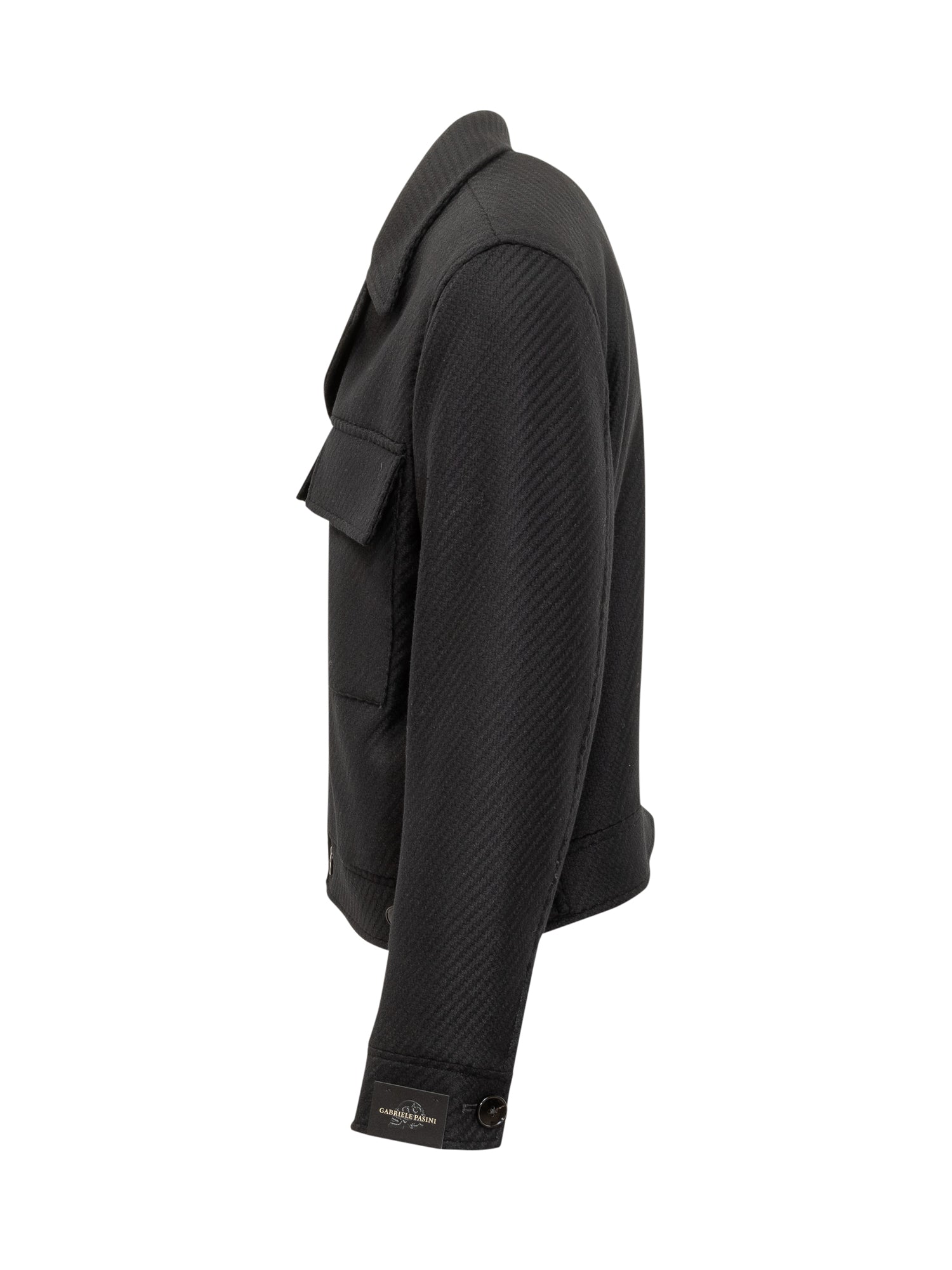 Giacca blu Gabriele Pasini in lana con motivo tono su tono. Presenta chiusura a bottoni, colletto classico e ampie tasche frontali.