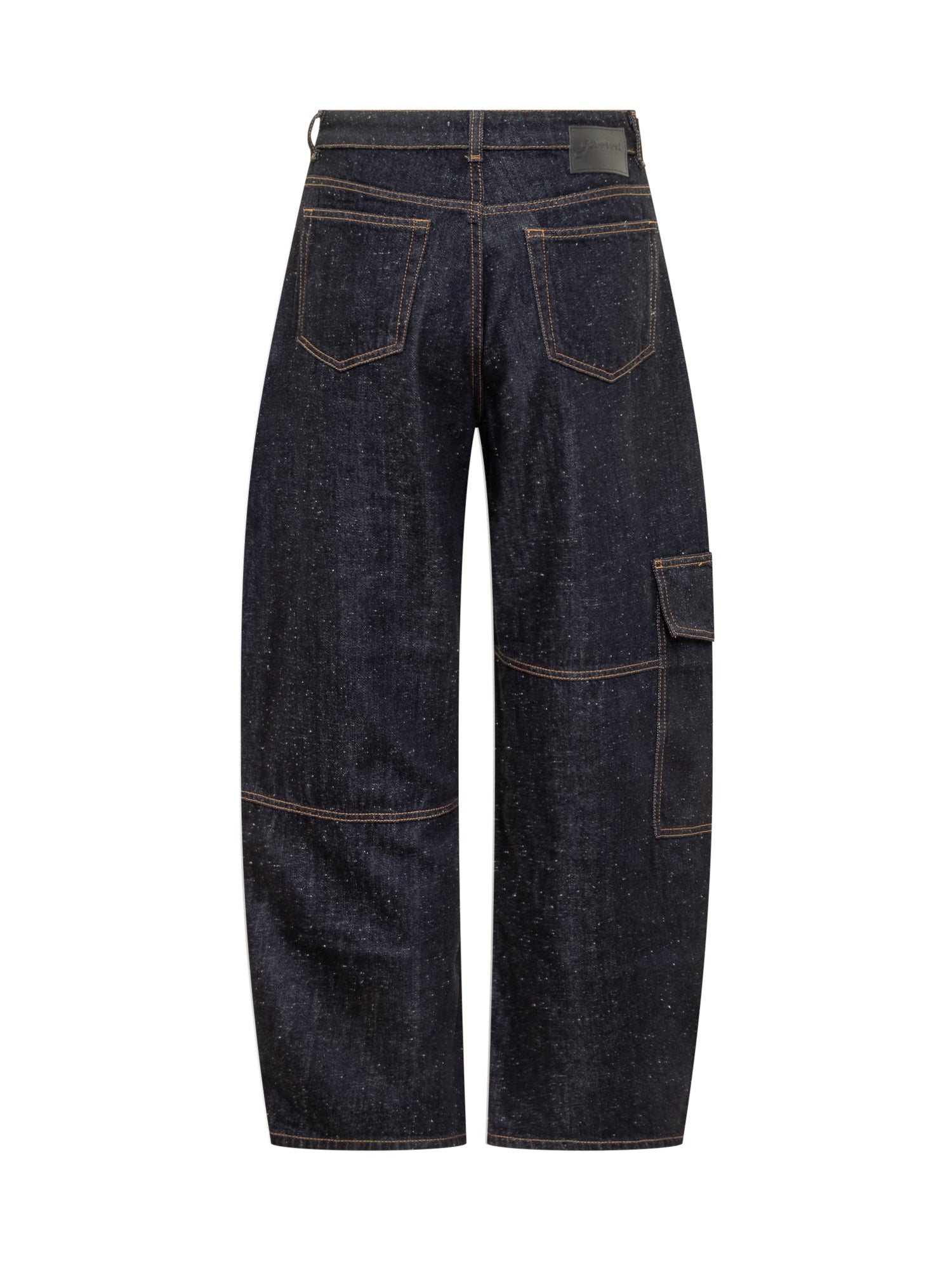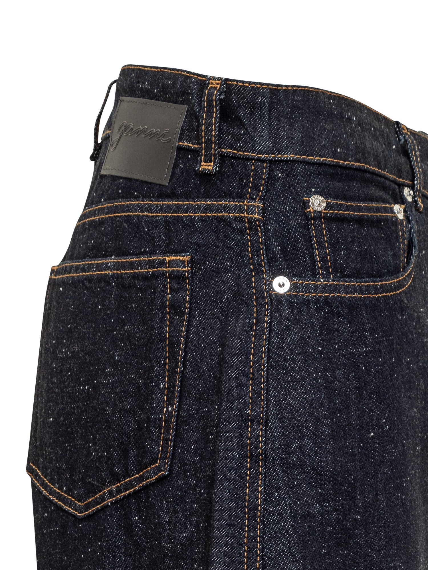 Jeans carpenter Ganni in denim scuro con inserti a contrasto in tessuto check.