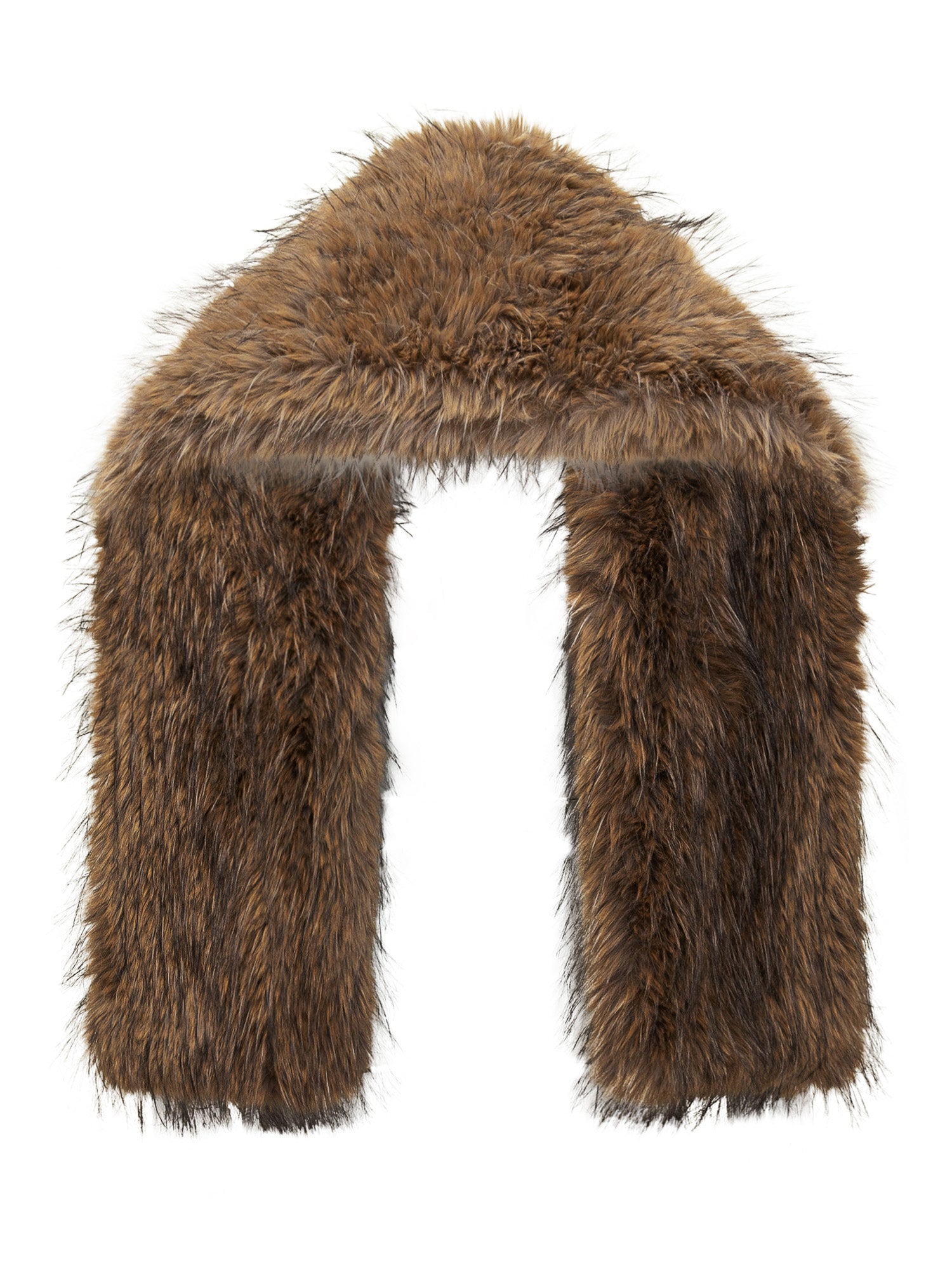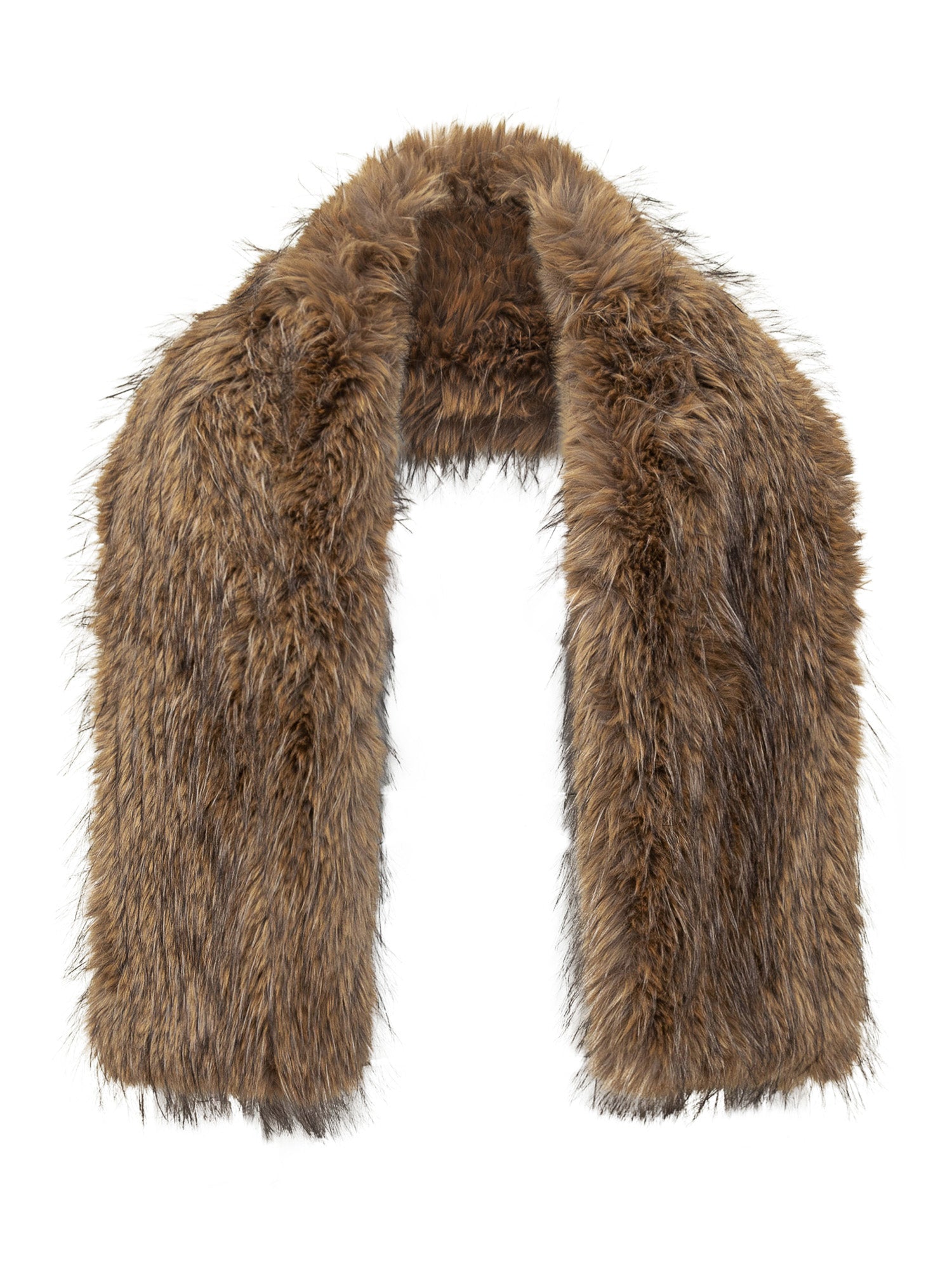 Sciarpa Ganni in morbida eco pelliccia marrone, dal design voluminoso e texture soffice.