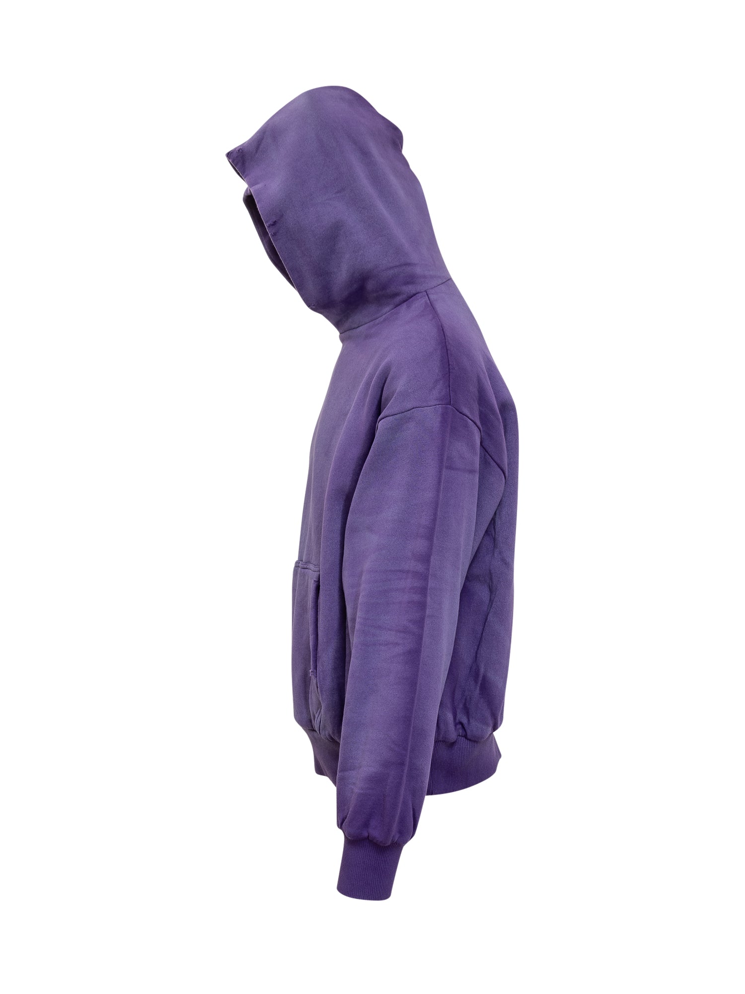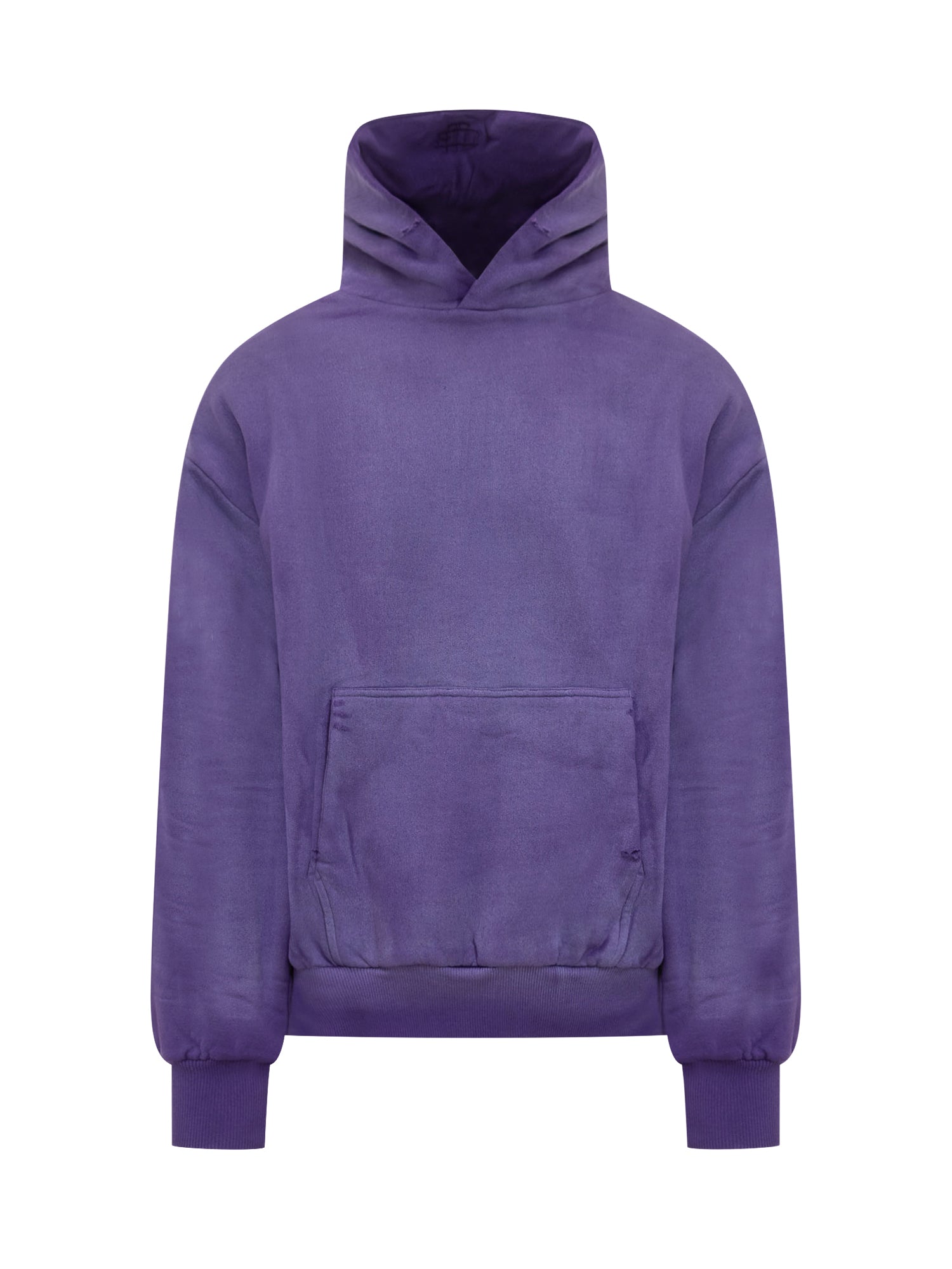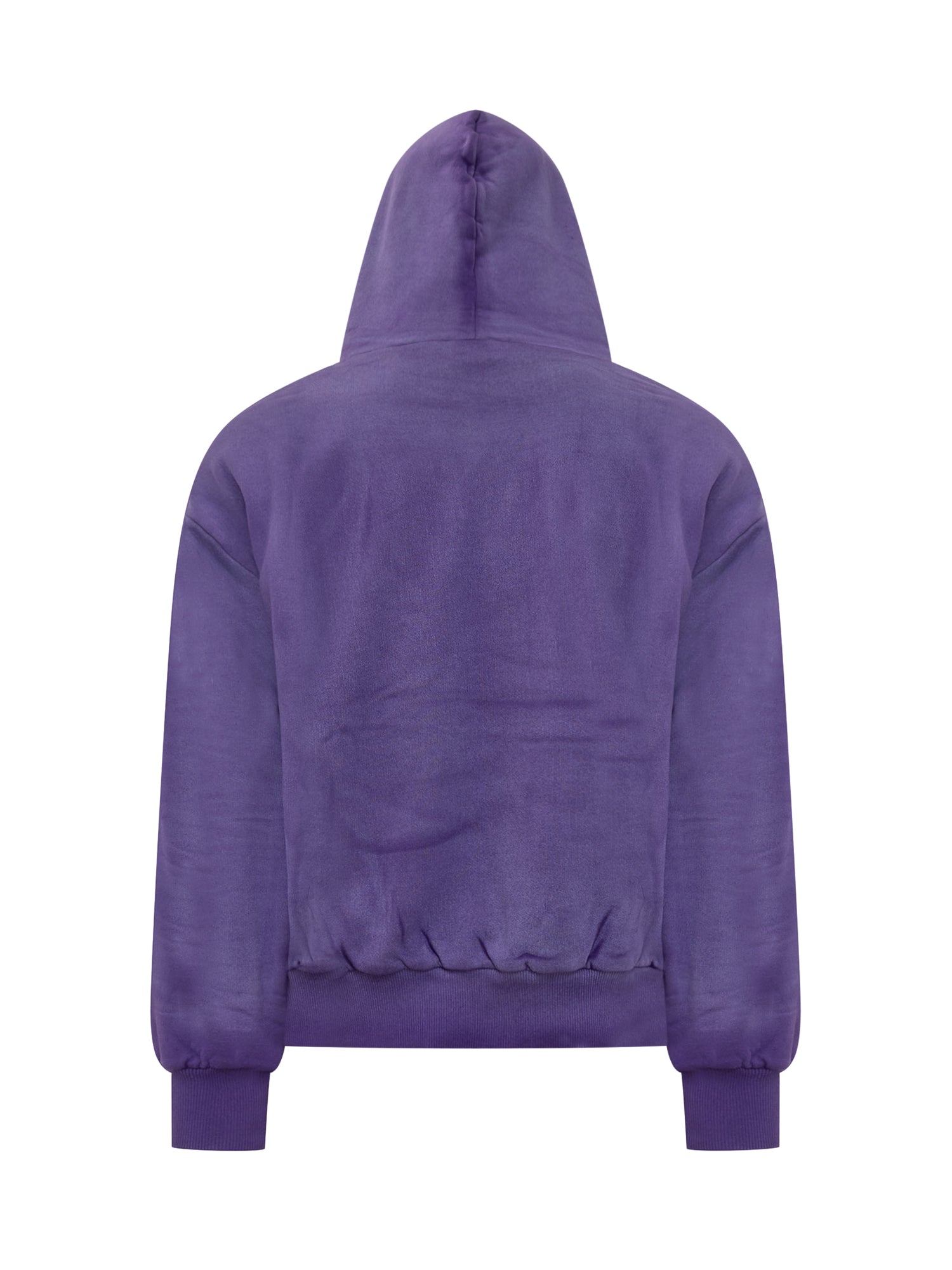 Felpa viola in cotone. Cappuccio. Maxi tasca frontale. Effetto candeggiato.