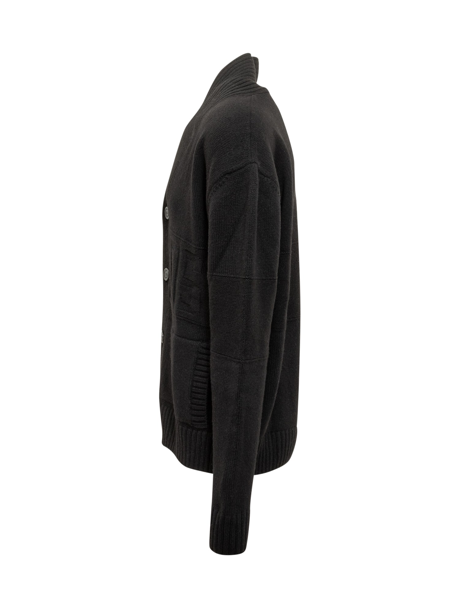 Cardigan GCDS in lana nera con lavorazione a coste e logo tono su tono in rilievo. Modello con bottoni frontali e tasche laterali, per un look elegante e contemporaneo.