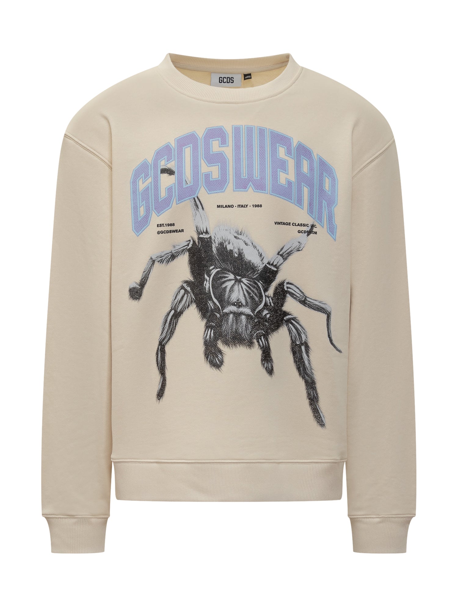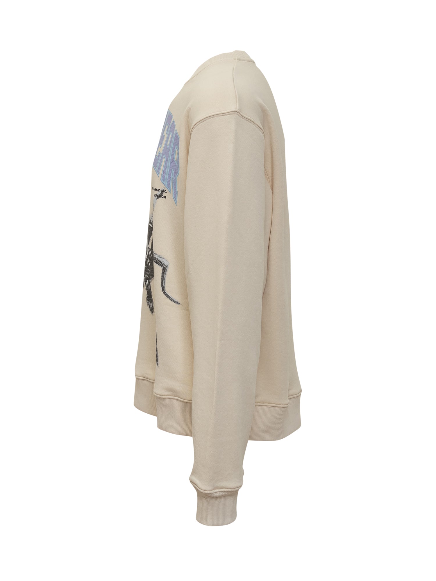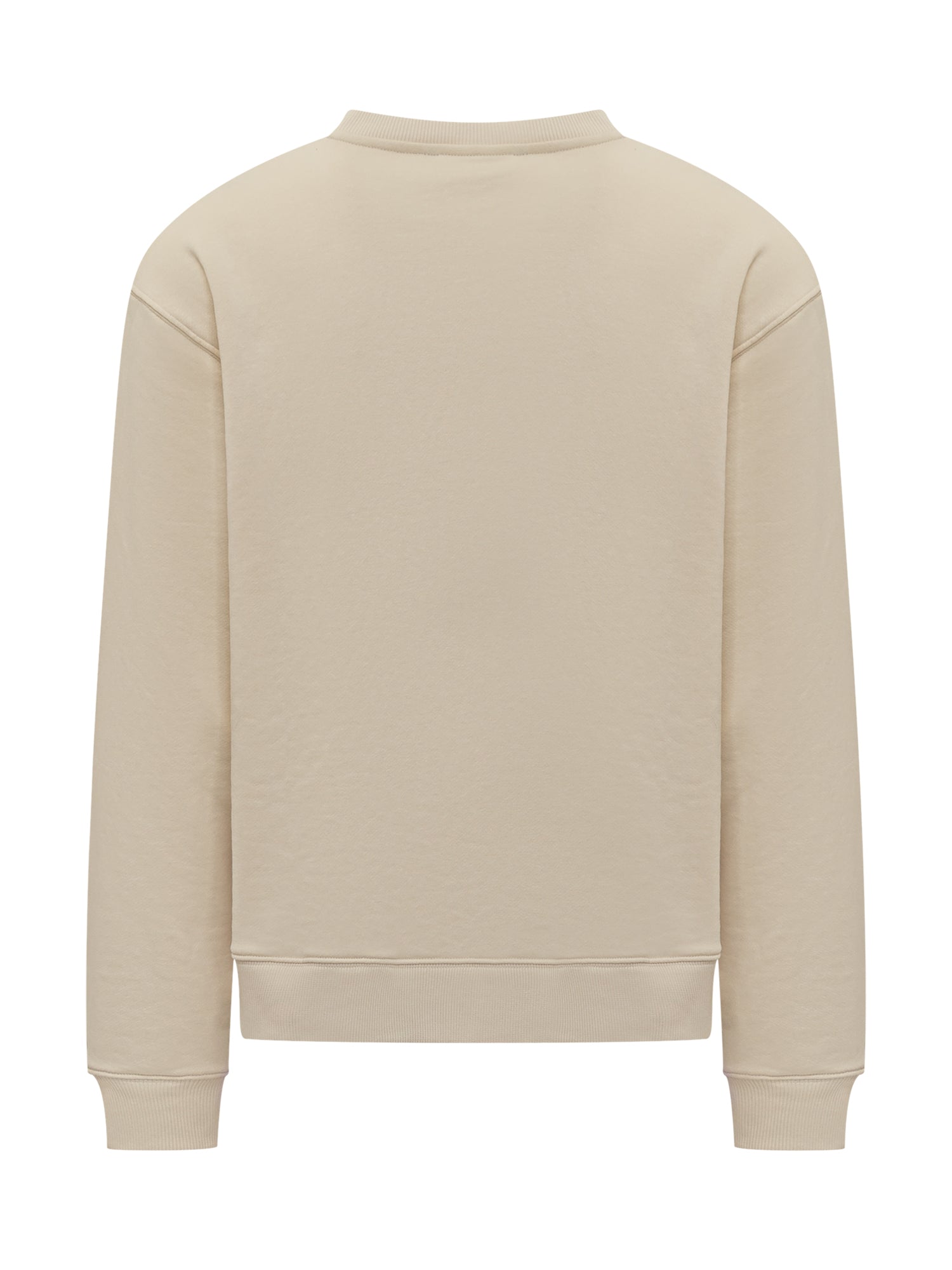 Felpa beige. Girocollo. Collo, orlo e polsi a costine.