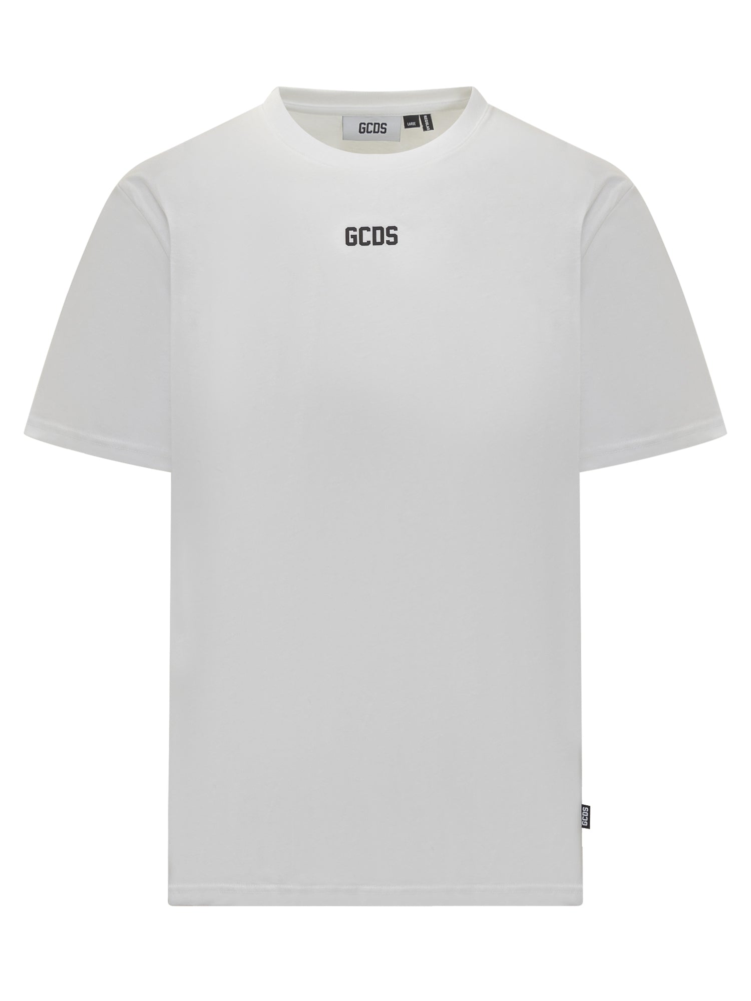 T-shirt GCDS in cotone bianco con vestibilità regular e logo ricamato sul petto.