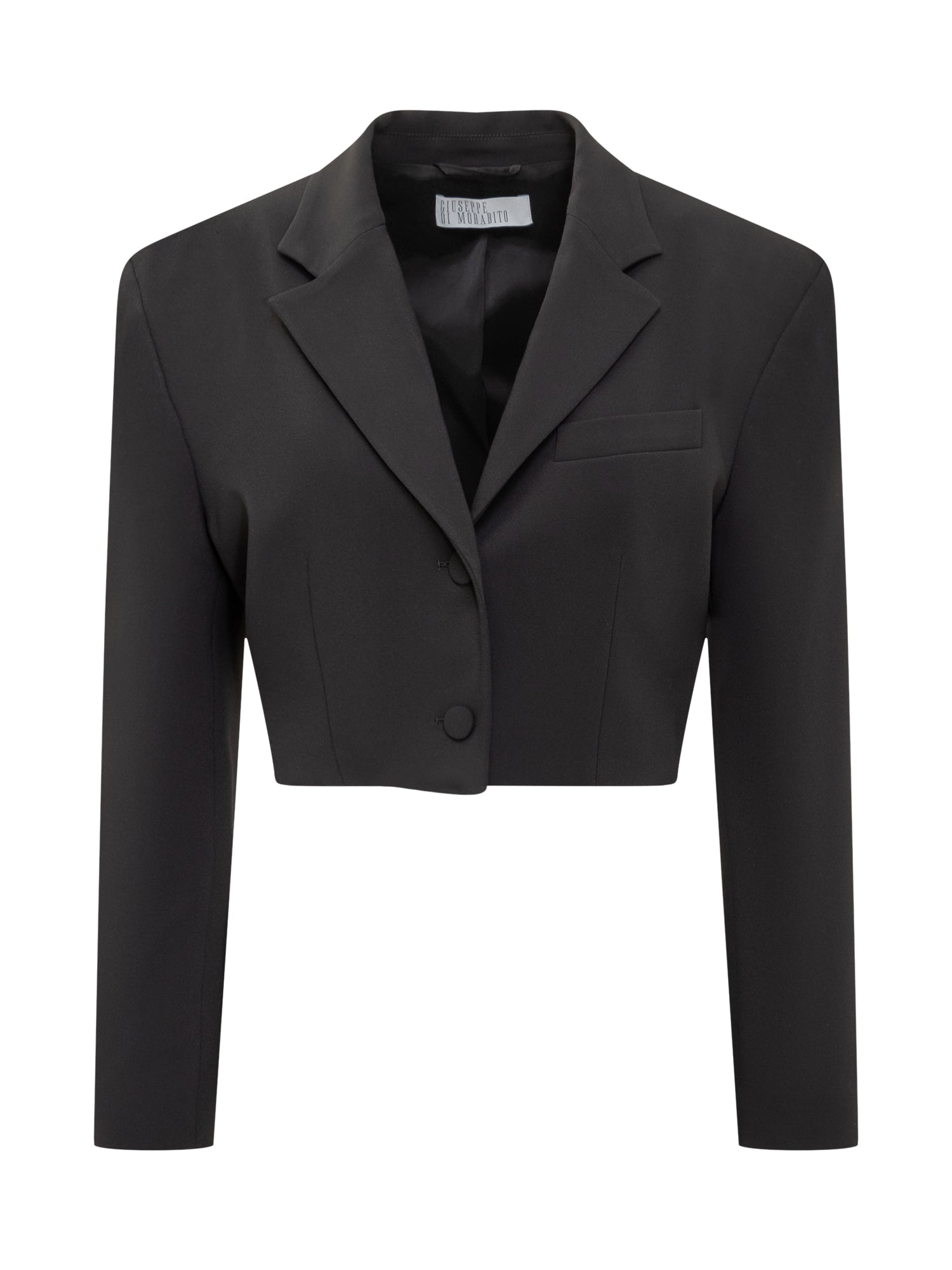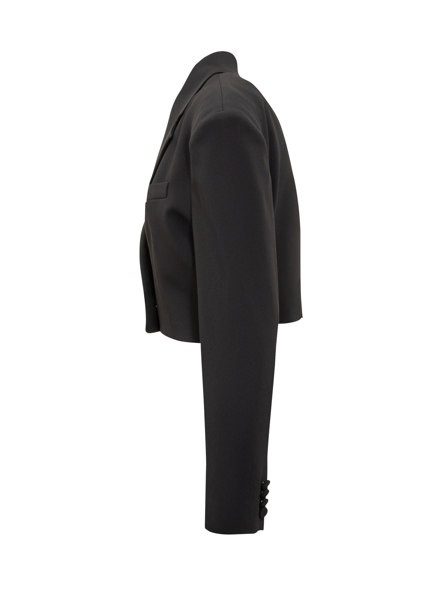 Maniche lunghe. Cropped. Chiusura con bottoni. Revers classico. Colore nero.